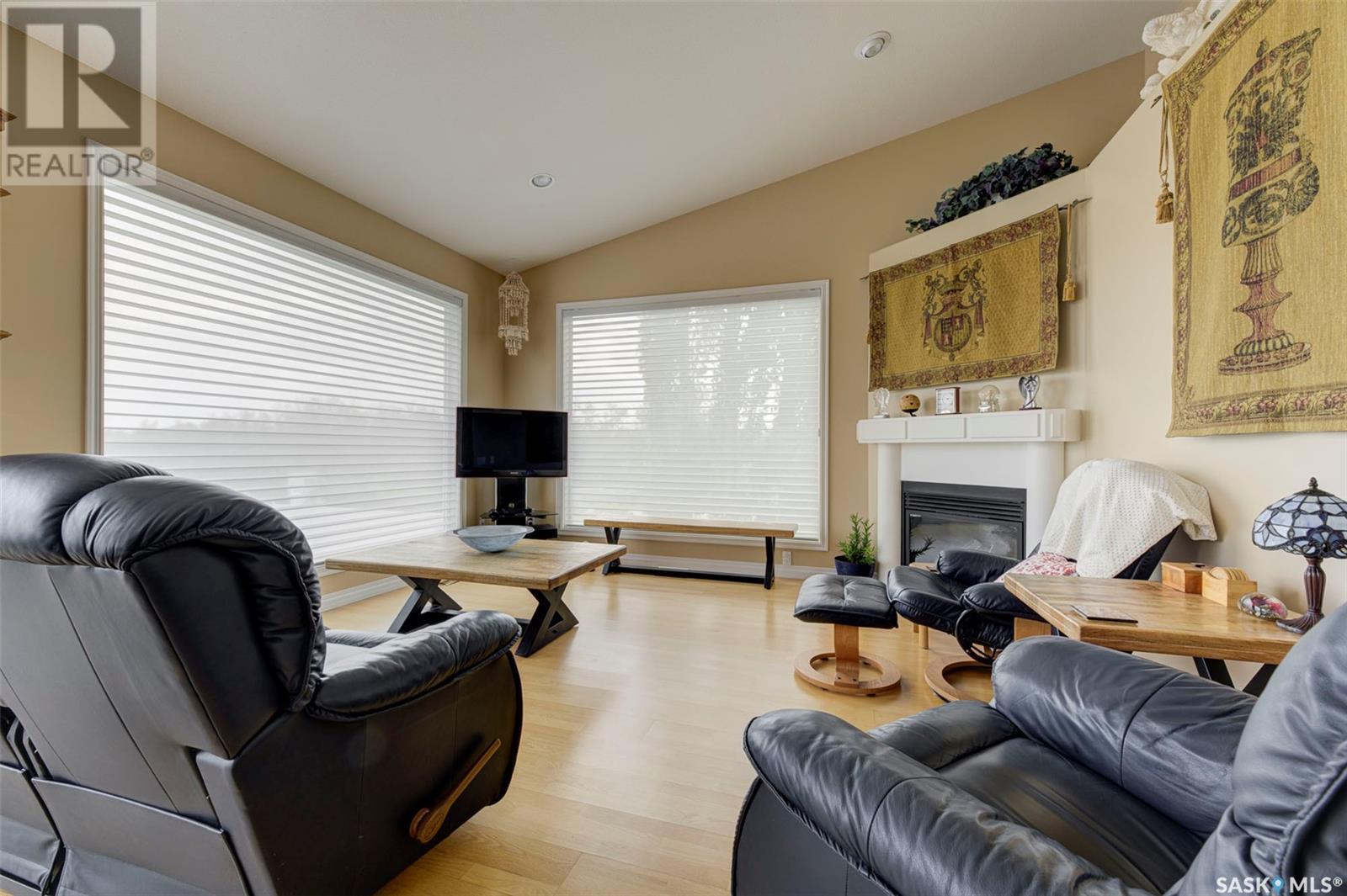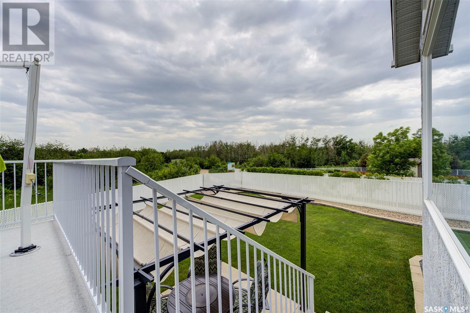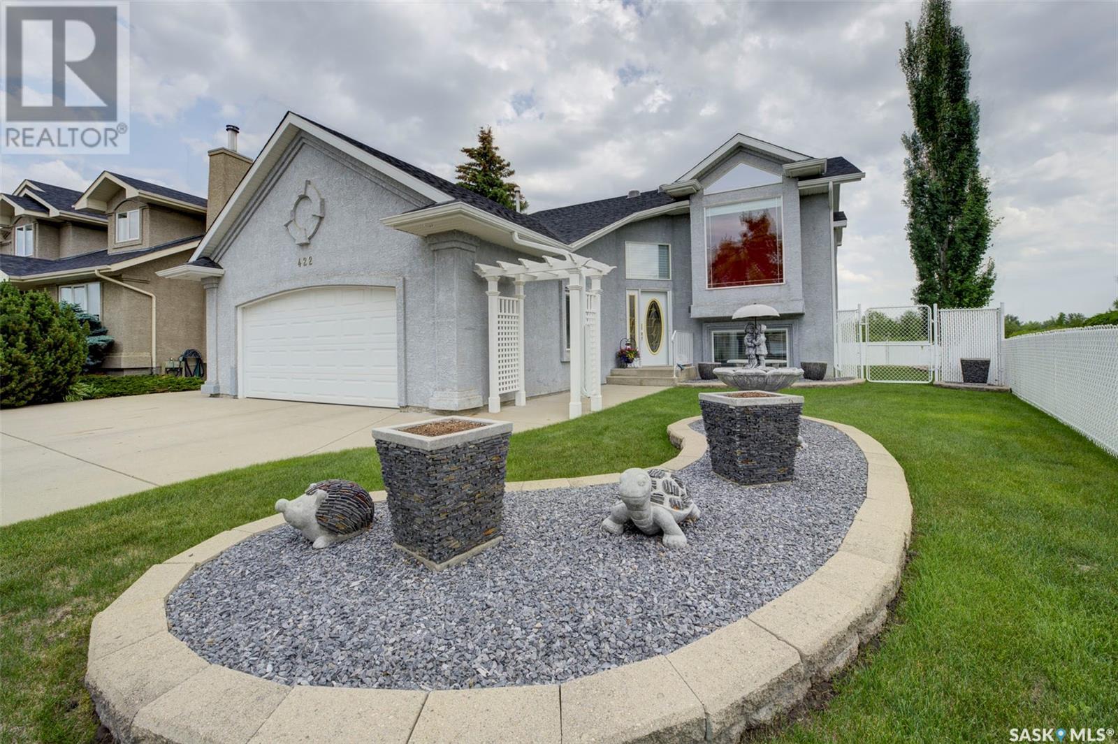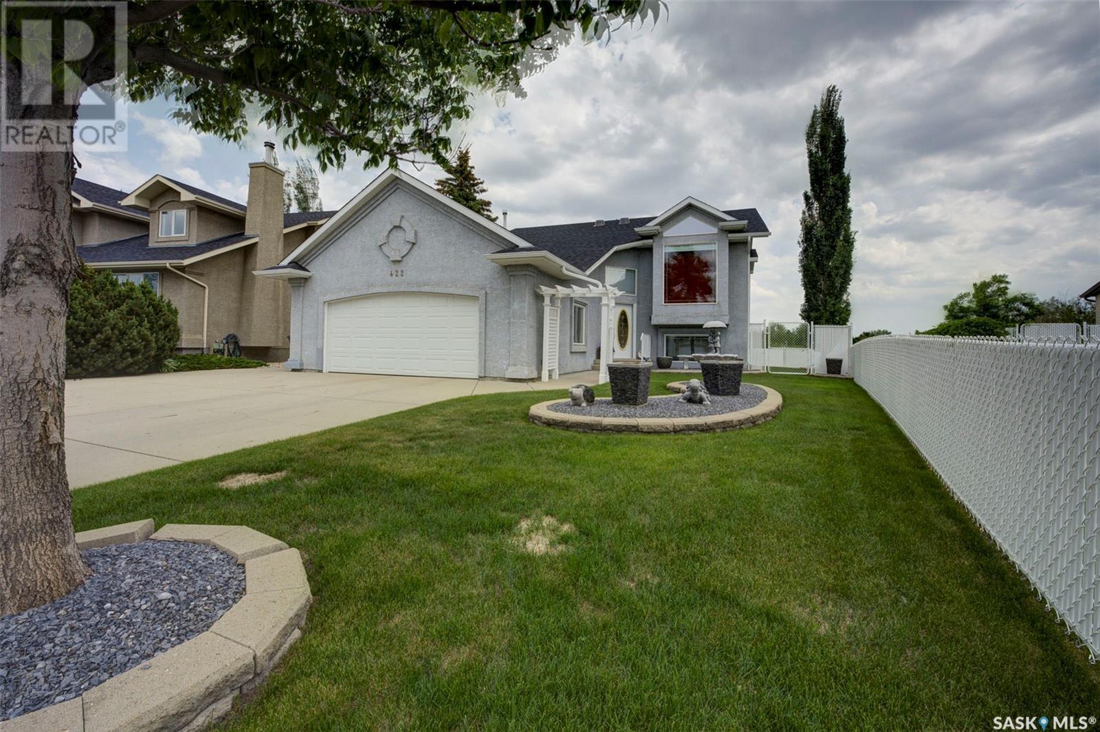 Allow me to introduce 422 LeMay Crescent, a gorgeous home situated on an extremely desirable & sought-after lot which backs onto the Saskatoon Natural Grasslands. This 1504 Sq.Ft. bi-level home simply exudes pride of ownership right from the moment you pull up out front. The huge windows throughout absolutely flood the residence in natural light helping to highlight features such as the granite kitchen countertops, vaulted main floor ceilings, gas fireplaces, engineered hardwood floors, and they of course also provide unobstructed views of the natural environment beyond the fully fenced back yard. In addition to 3 bedrooms and 2 bathrooms on the main floor, the fully developed basement comes complete with another bedroom and bathroom as well as an enormous rec room including a projector and drop-down screen, a games area, home office space, and a convenient wet bar all kept comfortably warm with in-slab hot water heating. Additionally, you will be sure to enjoy the built-in speakers including in the attached 2-car garage which is also equipped with an in-slab hot water heated floor. Venturing outside into the immaculately landscaped yard you are sure to feel at peace on the 20 x 20 vinyl-covered deck boasting an amazing secure storage area below or down on your gazebo-covered private patio area. This property also includes an oversized driveway for ample vehicle parking, RV parking, privacy fencing, large side yards, and of course the real show stopper…the unbelievable one-of-a-kind view! This may very well be the home you have been patiently waiting for, book your showing today! (id:22211)
