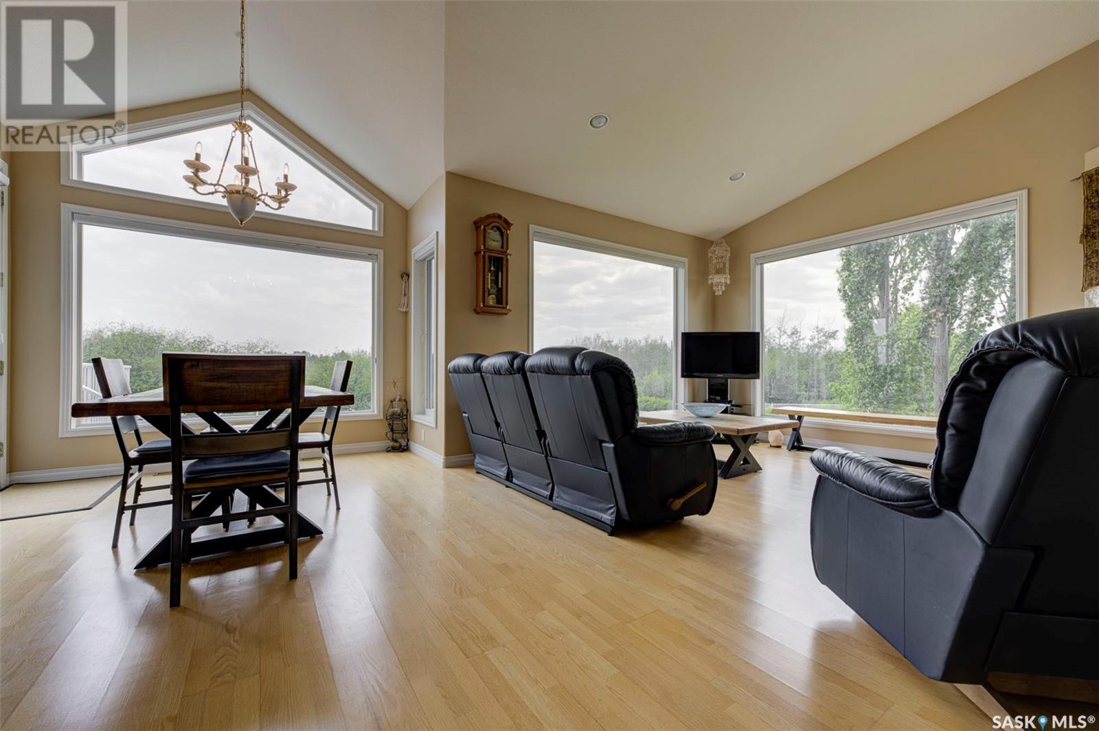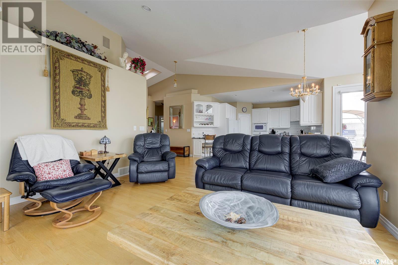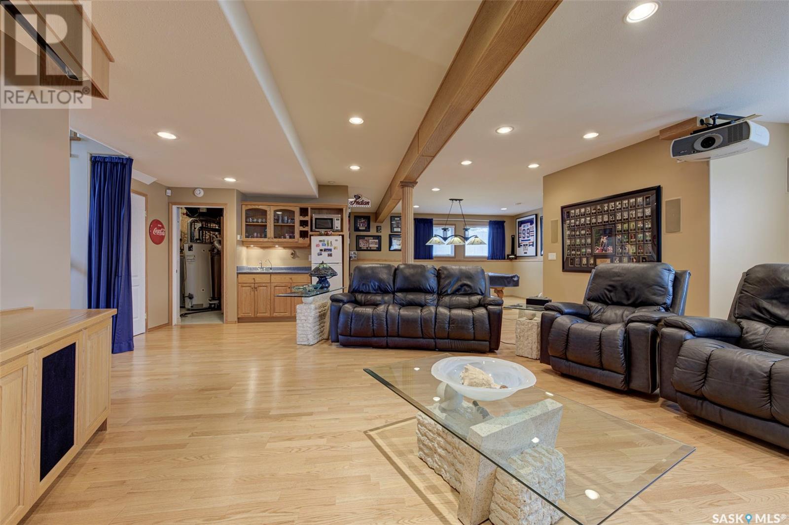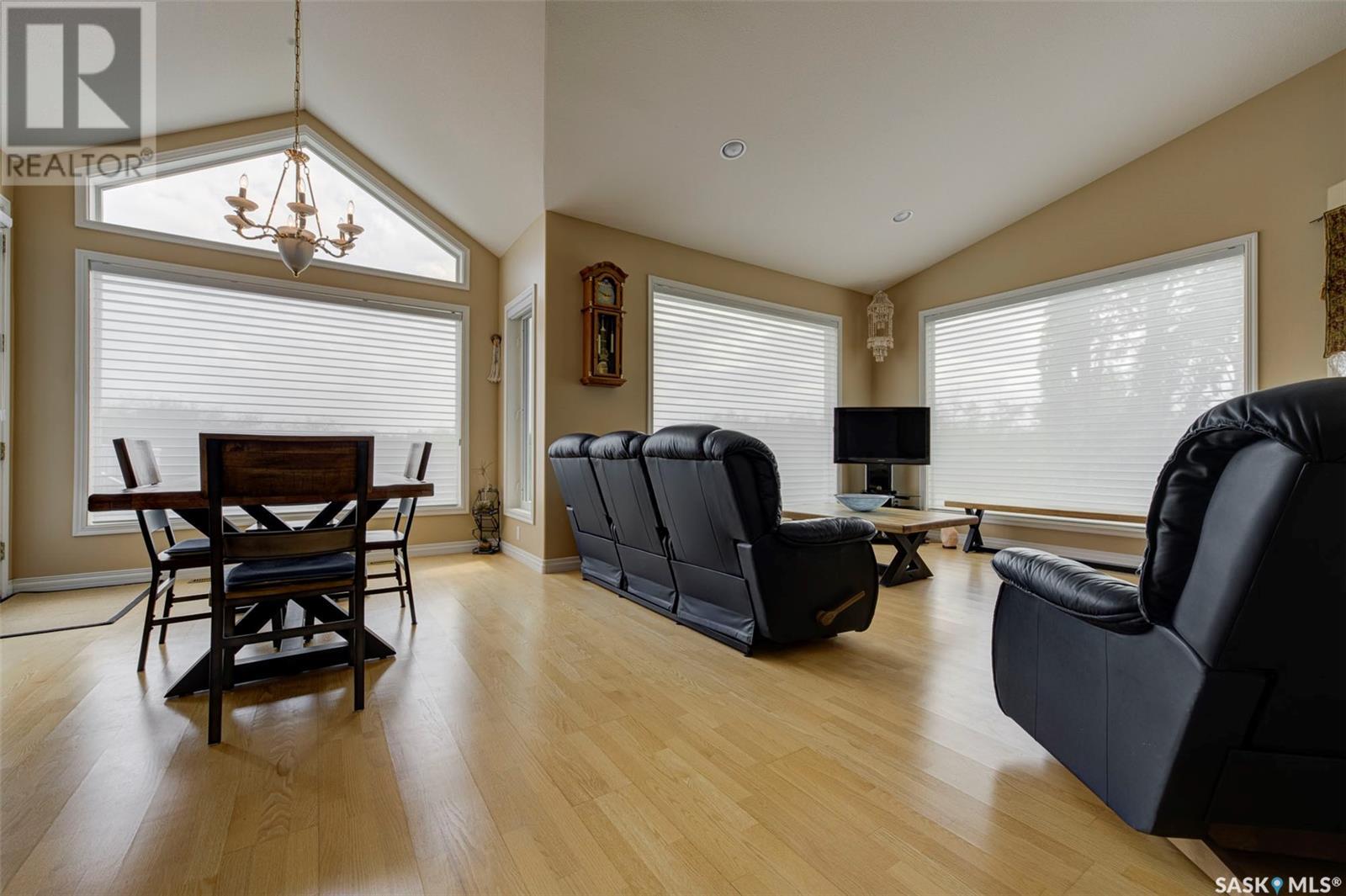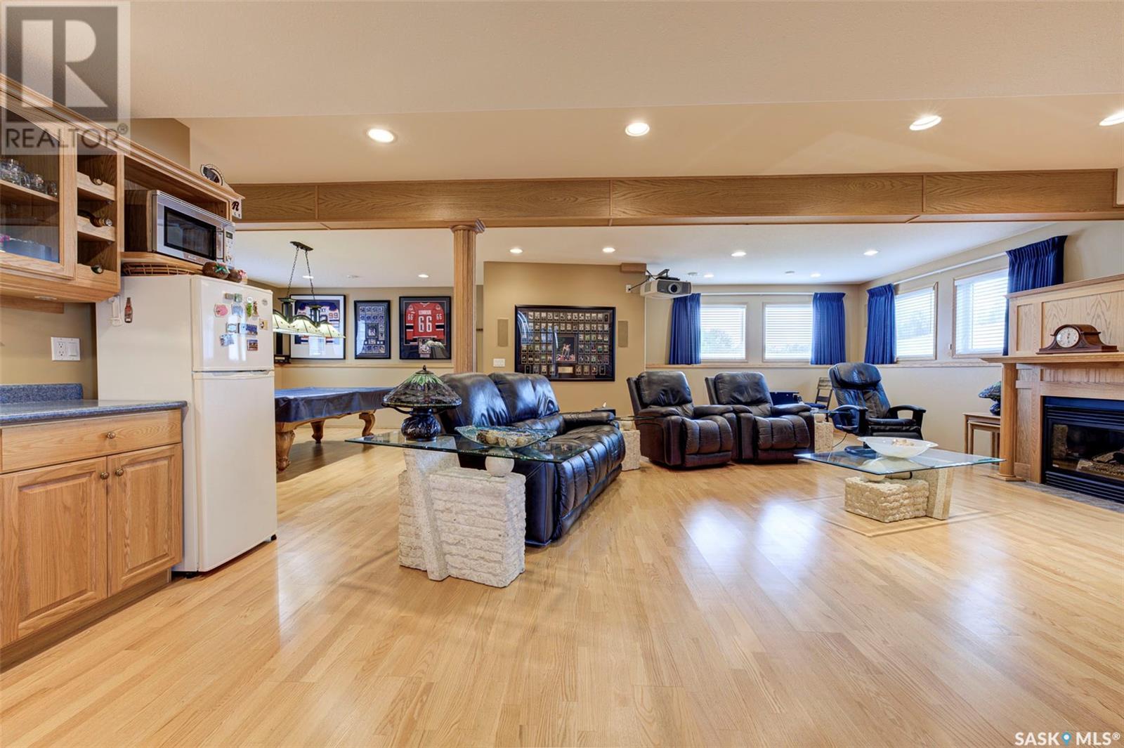 Allow me to introduce 422 LeMay Crescent, a gorgeous home situated on an extremely desirable & sought-after lot which backs onto the Saskatoon Natural Grasslands. This 1504 Sq.Ft. bi-level home simply exudes pride of ownership right from the moment you pull up out front. The huge windows throughout absolutely flood the residence in natural light helping to highlight features such as the granite kitchen countertops, vaulted main floor ceilings, gas fireplaces, engineered hardwood floors, and they of course also provide unobstructed views of the natural environment beyond the fully fenced back yard. In addition to 3 bedrooms and 2 bathrooms on the main floor, the fully developed basement comes complete with another bedroom and bathroom as well as an enormous rec room including a projector and drop-down screen, a games area, home office space, and a convenient wet bar all kept comfortably warm with in-slab hot water heating. Additionally, you will be sure to enjoy the built-in speakers including in the attached 2-car garage which is also equipped with an in-slab hot water heated floor. Venturing outside into the immaculately landscaped yard you are sure to feel at peace on the 20 x 20 vinyl-covered deck boasting an amazing secure storage area below or down on your gazebo-covered private patio area. This property also includes an oversized driveway for ample vehicle parking, RV parking, privacy fencing, large side yards, and of course the real show stopper…the unbelievable one-of-a-kind view! This may very well be the home you have been patiently waiting for, book your showing today! (id:22211)