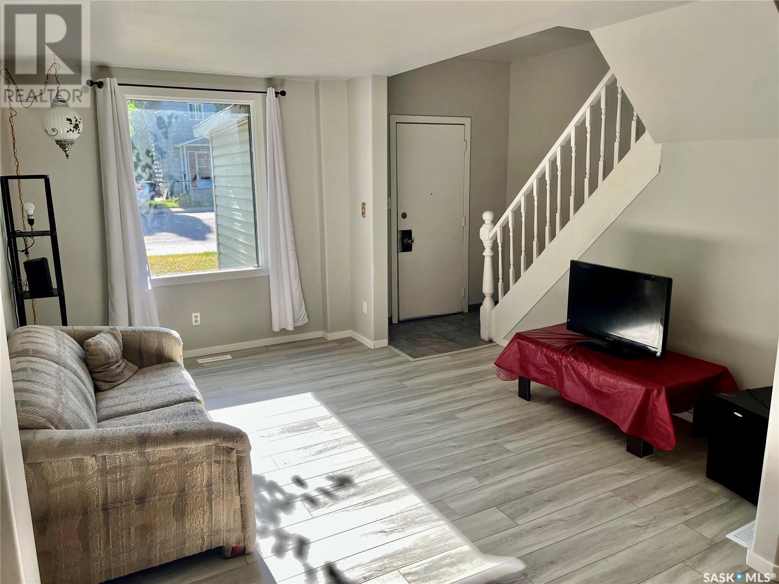 Great opportunity to own a move-in ready home in Riversdale! A thriving neighbourhood, in close proximity to the Saskatchewan River, River Landing, downtown core, Remai Modern, walking paths, & Victoria Park just steps away. Main floor offers a large living space with ample natural light, a kitchen with maple cabinets and newer countertops, a spacious dining area, and laundry. Three rooms upstairs and an updated 4-piece bathroom. Primary bedroom has a walk-in closet and a bonus second window. The house features mostly new laminate flooring, new baseboards, fresh paint, newer high-efficient hot water heater, and foyer for storage. The backyard has alley access, 2 parking spots, fenced, with a new storage shed. Enjoy the proximity to some of the city's best restaurants and shops. Primal Pasta, Fable Ice Cream, Pop Winebar, Pig & Pantry, Jin Jin Dumplings, Darkside Donuts, The Roxy Theatre, just to name a few! (id:22211)
