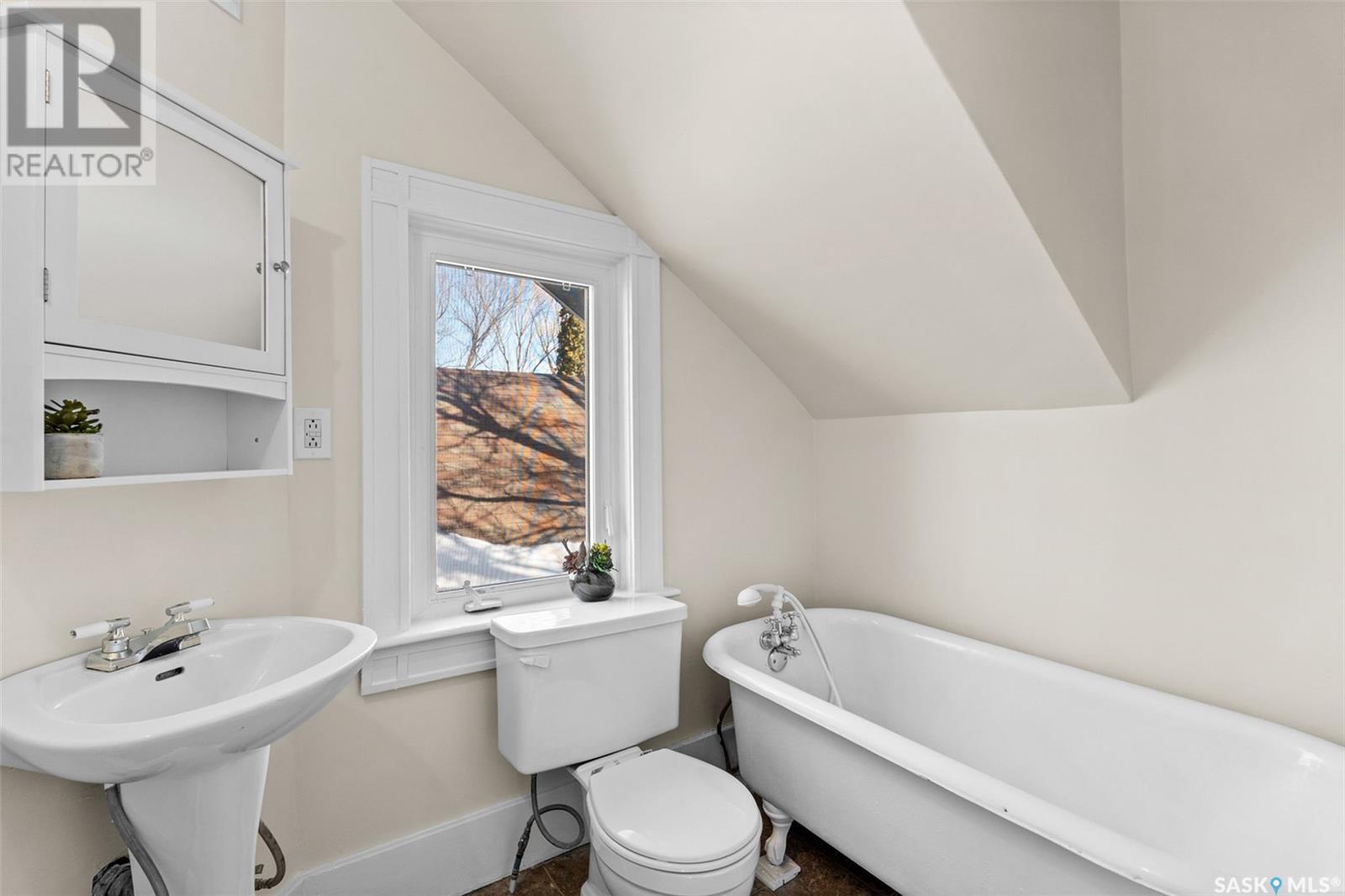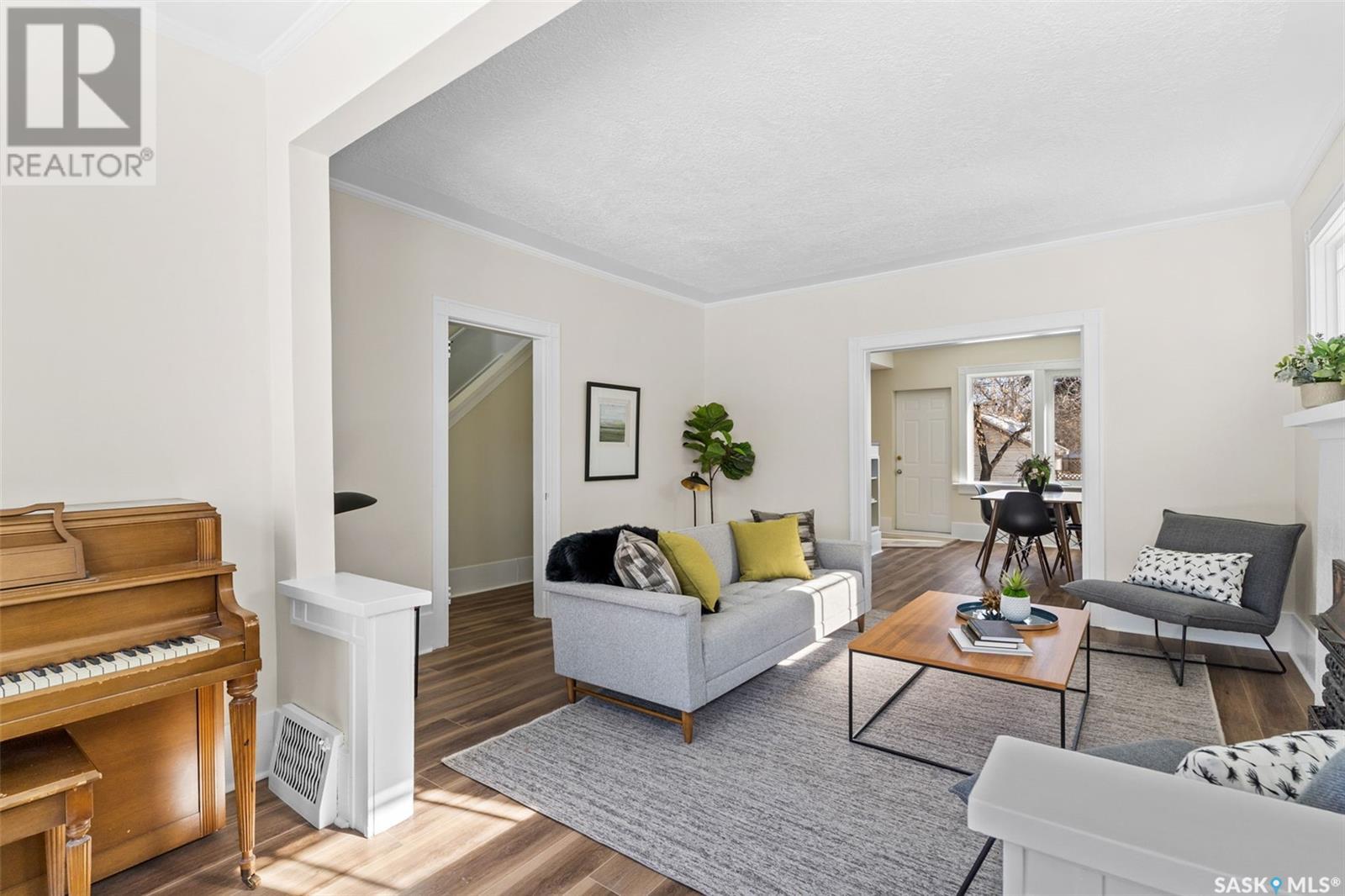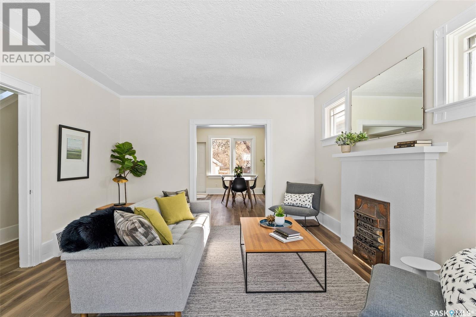 A cute 2-storey in a great City Park location, 824 4th Avenue N features a semi-open concept 4-bed, 2-bath plan, complete with a sunroom, formal entry, and generous entertaining areas - perfect for hosting friends and family. The home location offers easy access to the Meewasin river valley and Saskatoon’s downtown, and is within just a 5 minute walk of so many wonderful neighbourhood destinations, including City Perks Coffeehouse, Earl’s Kitchen + Bar, Sparrow Coffee, Ryde Cycle Studio, the Nutrien Wonderhub, Kinsmen Park, City Park School (incl. its Montessori program), and more! This adorable floor plan features incredible light with oversized window designs, a large living room with a fireplace feature, open views from its updated kitchen into the dining space, a signature post and spindle stairwell in the entry, and a cozy sunroom for winding down in the evenings or for your morning ‘sips’. The main level has seen interior updates that include luxury vinyl plank floor coverings, and an updated kitchen with pot lighting, double sink, breakfast bar, and newer appliances. Upstairs, original Oak floors and millwork have been maintained in the upper hall and each of the 3 bedrooms. The basement level is finished with a second full bath, a guest room, and storage area. Other notable home updates include those to most windows, hi-efficiency furnace & hot water heater, electrical & plumbing systems, and insulation (attic & exterior walls). Outside, the 30’x132’ lot provides wonderful space to further shape one’s dream back yard. A great option for those seeking a first-time or family home in a walkable setting, or as an investment. You are invited to contact your local realtor to schedule your personal tour today. (id:22211)