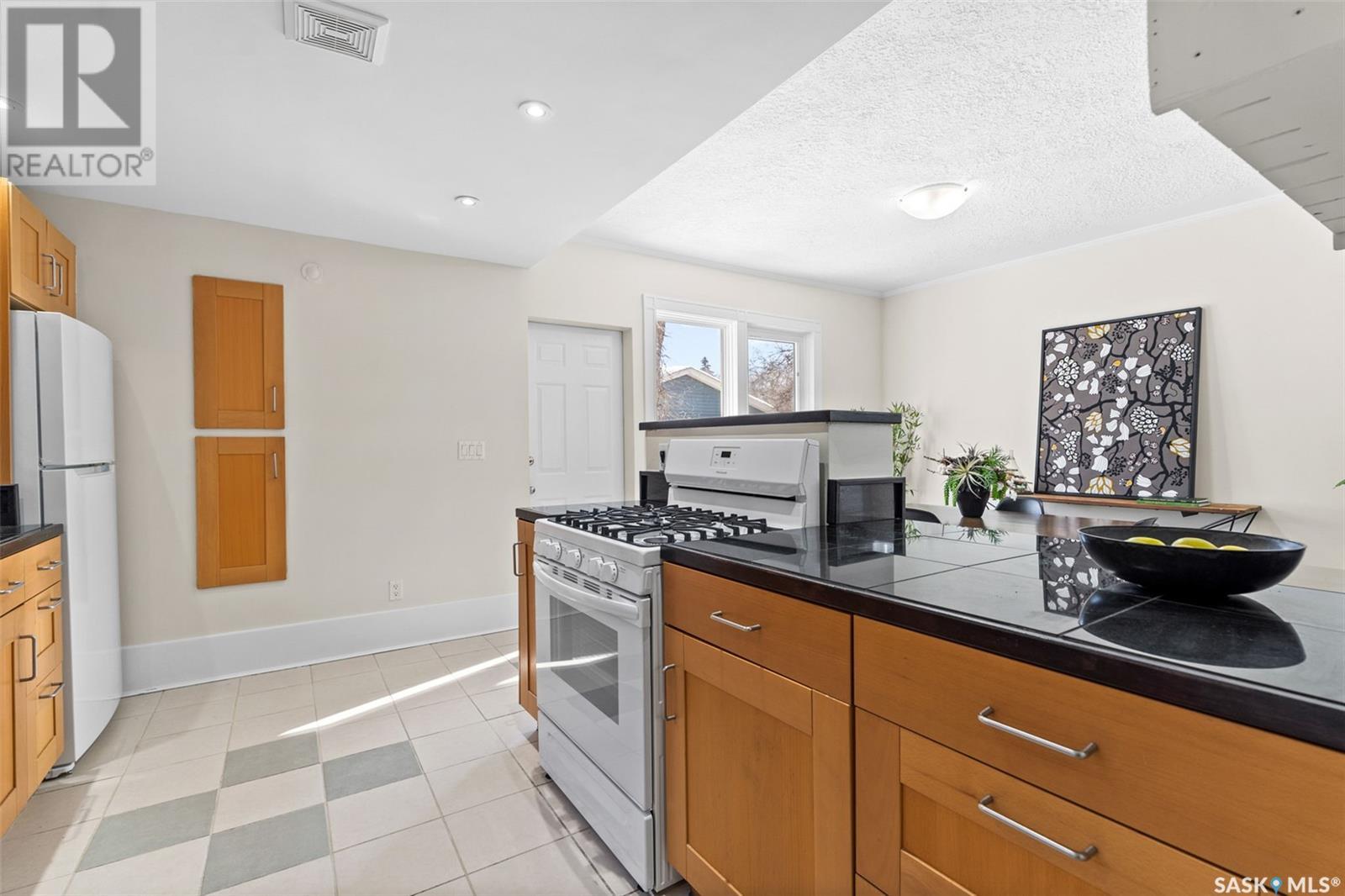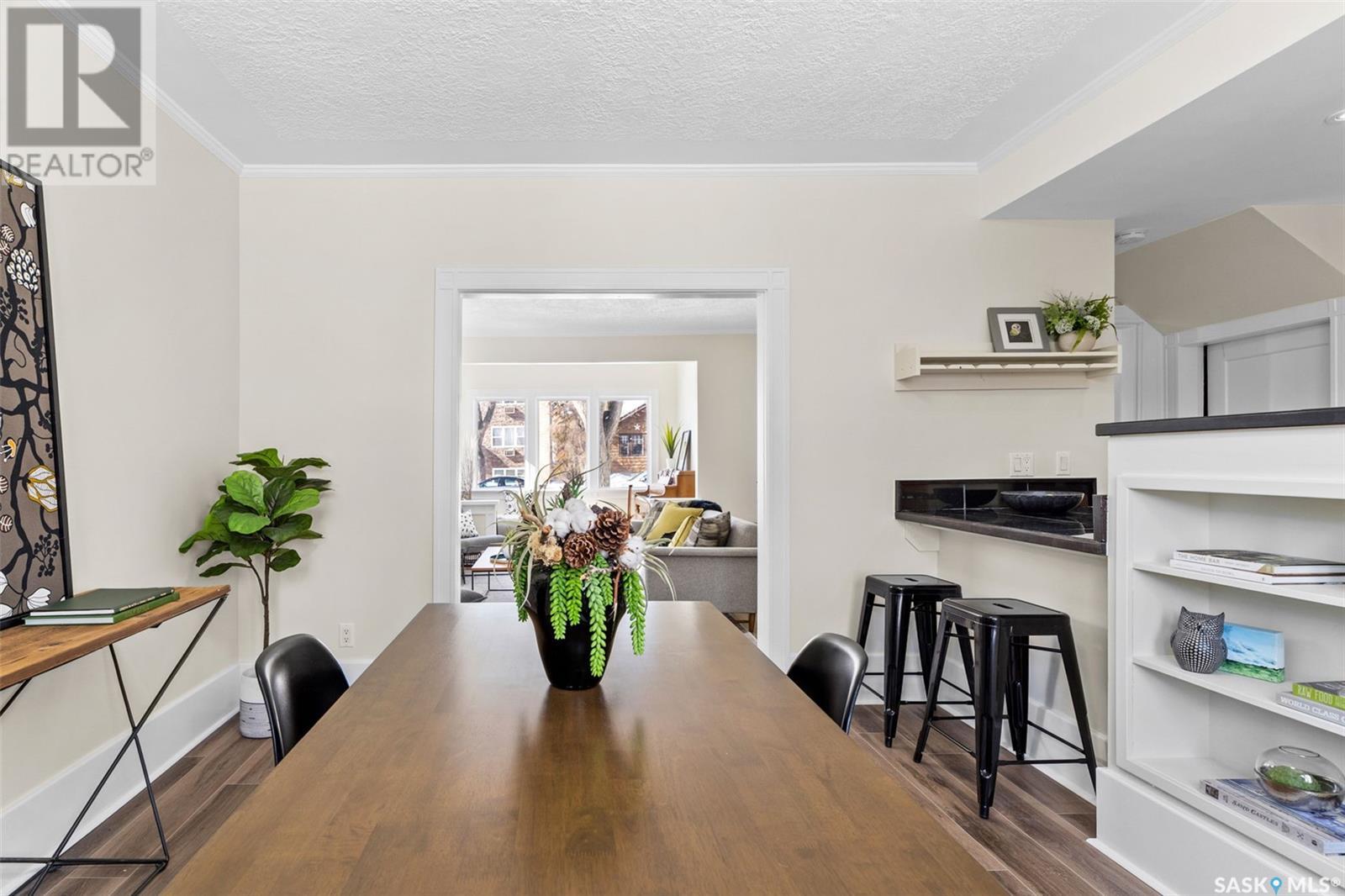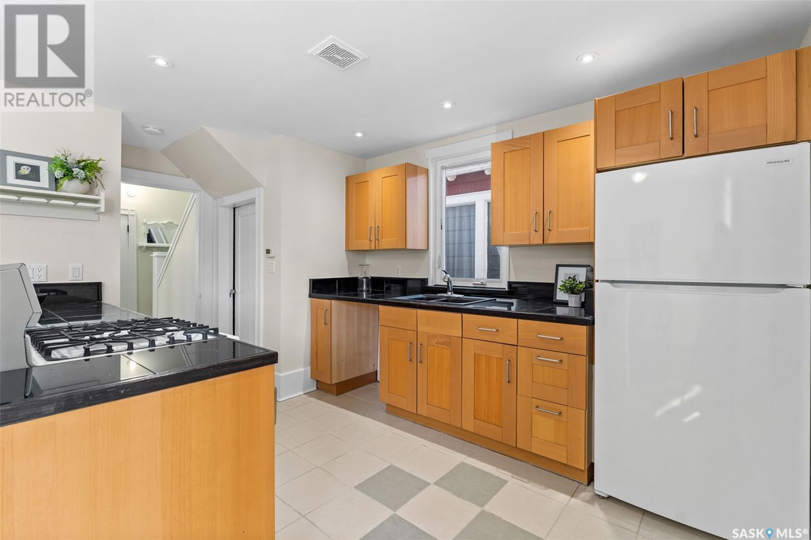 A cute 2-storey in a great City Park location, 824 4th Avenue N features a semi-open concept 4-bed, 2-bath plan, complete with a sunroom, formal entry, and generous entertaining areas - perfect for hosting friends and family. The home location offers easy access to the Meewasin river valley and Saskatoon’s downtown, and is within just a 5 minute walk of so many wonderful neighbourhood destinations, including City Perks Coffeehouse, Earl’s Kitchen + Bar, Sparrow Coffee, Ryde Cycle Studio, the Nutrien Wonderhub, Kinsmen Park, City Park School (incl. its Montessori program), and more! This adorable floor plan features incredible light with oversized window designs, a large living room with a fireplace feature, open views from its updated kitchen into the dining space, a signature post and spindle stairwell in the entry, and a cozy sunroom for winding down in the evenings or for your morning ‘sips’. The main level has seen interior updates that include luxury vinyl plank floor coverings, and an updated kitchen with pot lighting, double sink, breakfast bar, and newer appliances. Upstairs, original Oak floors and millwork have been maintained in the upper hall and each of the 3 bedrooms. The basement level is finished with a second full bath, a guest room, and storage area. Other notable home updates include those to most windows, hi-efficiency furnace & hot water heater, electrical & plumbing systems, and insulation (attic & exterior walls). Outside, the 30’x132’ lot provides wonderful space to further shape one’s dream back yard. A great option for those seeking a first-time or family home in a walkable setting, or as an investment. You are invited to contact your local realtor to schedule your personal tour today. (id:22211)