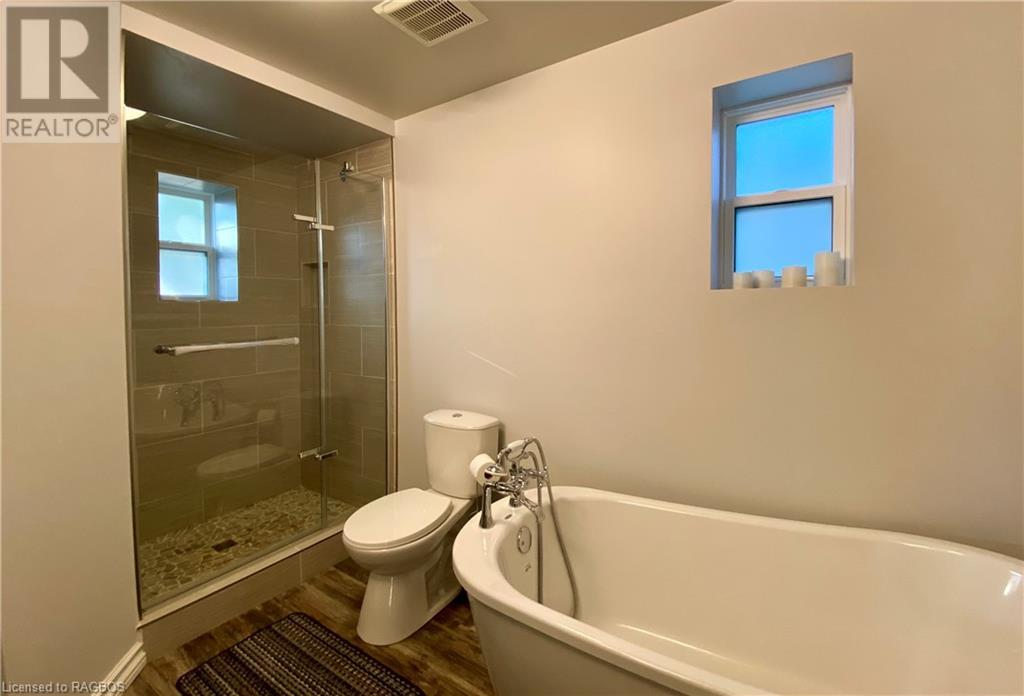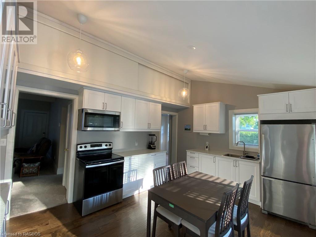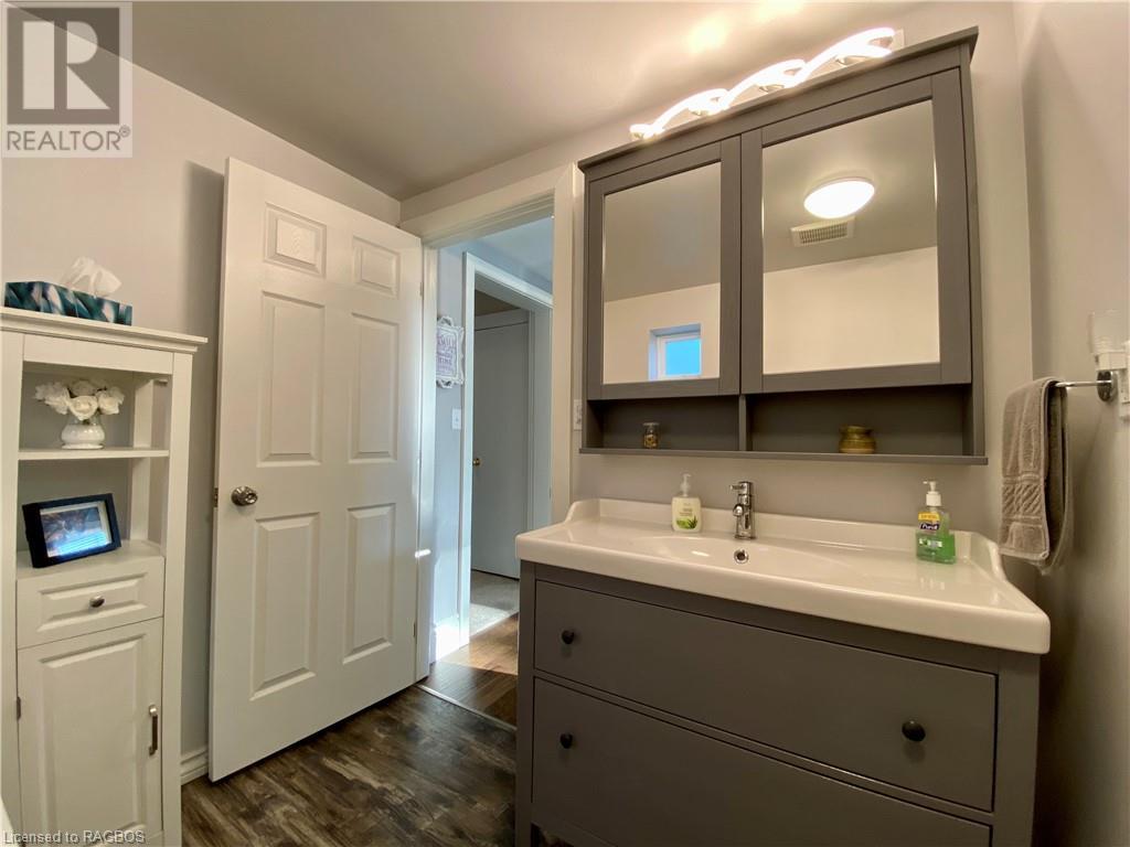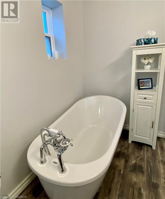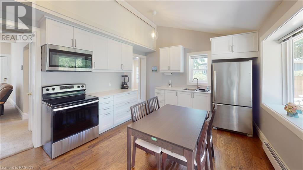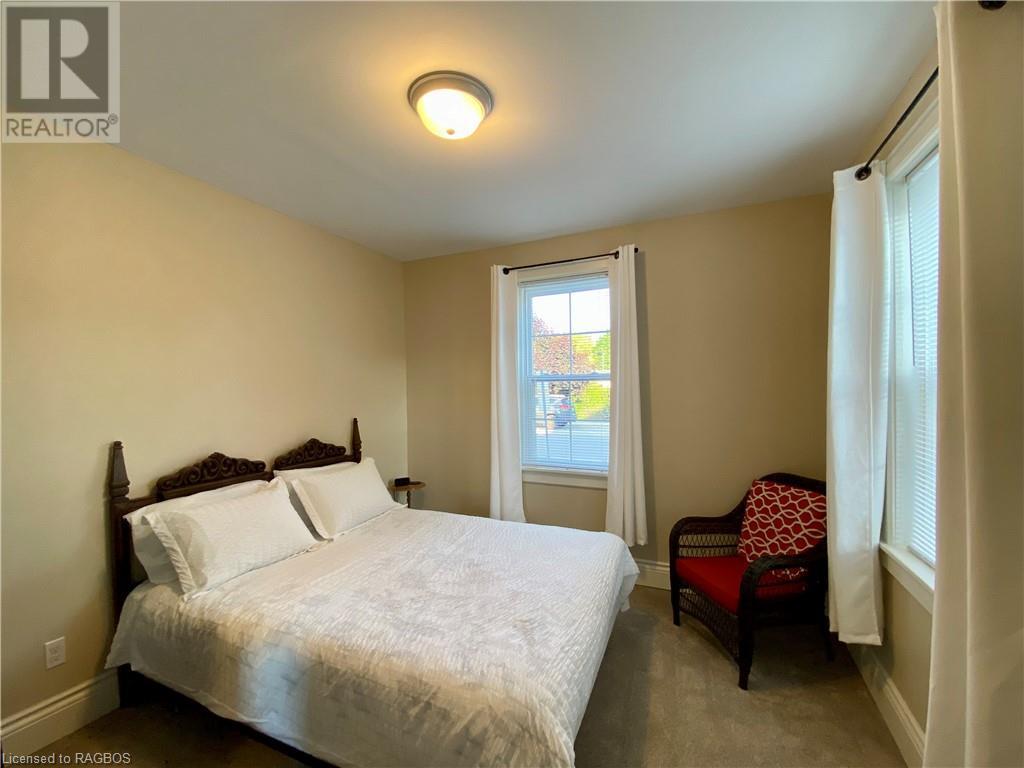 Pretty as a picture! This 1 1/2 story home is simply charming. Situated less than 2 blocks away from the desirable sand beach area of Southampton. The bustling downtown is just steps away, with shopping, restaurants and cafes. This property is ideal for year round home, vacation property or retirement home. The main level features an eat-in kitchen with walk out to the backyard, living room with natural gas fireplace, primary bedroom, sunroom, laundry closet, and a gorgeous bathroom with soaker tub and tile shower. The second level has 3 more bedrooms and a 2 piece washroom. The completely fenced backyard is nicely landscaped with lush grass and mature trees. Large patio, perfect for entertaining. Lots of parking on the exposed aggregate driveway. The town lane on the south side provides additional privacy. Renovated and upgraded over the last few years; insulation, electrical, drywall, flooring, kitchen, bathrooms, windows (except sunroom), patio doors and more. Nothing left to do, just move-in and enjoy. (id:22211)