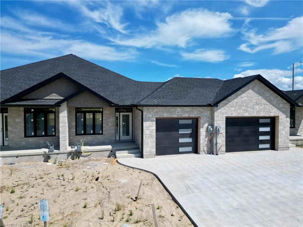 This 1228 sqft freehold townhome at 463 Ivings Drive in Port Elgin is just about complete; the kitchen will be going in shortly. The main floor features an open concept living room, dining room and kitchen, with hardwood floors, Quartz kitchen counters, & 9ft patio doors leading to a 10'11 x 10 covered deck, primary bedroom with a 4pc ensuite bath and walk-in closet, laundry room off the garage and a 2pc powder room. The basement is finished including 2 bedrooms, 4pc bath, family room with gas fireplace and utility room with plenty of storage. This unit is heated with a gas forced air furnace and gas fireplace; cooled with central air. HST is included in the asking price provided that the Buyer qualifies for the rebate and assigns it to the Builder on closing. Exterior includes a brick exterior, concrete drive, and sodded yard. No condo fee, you do your own exterior maintenance.