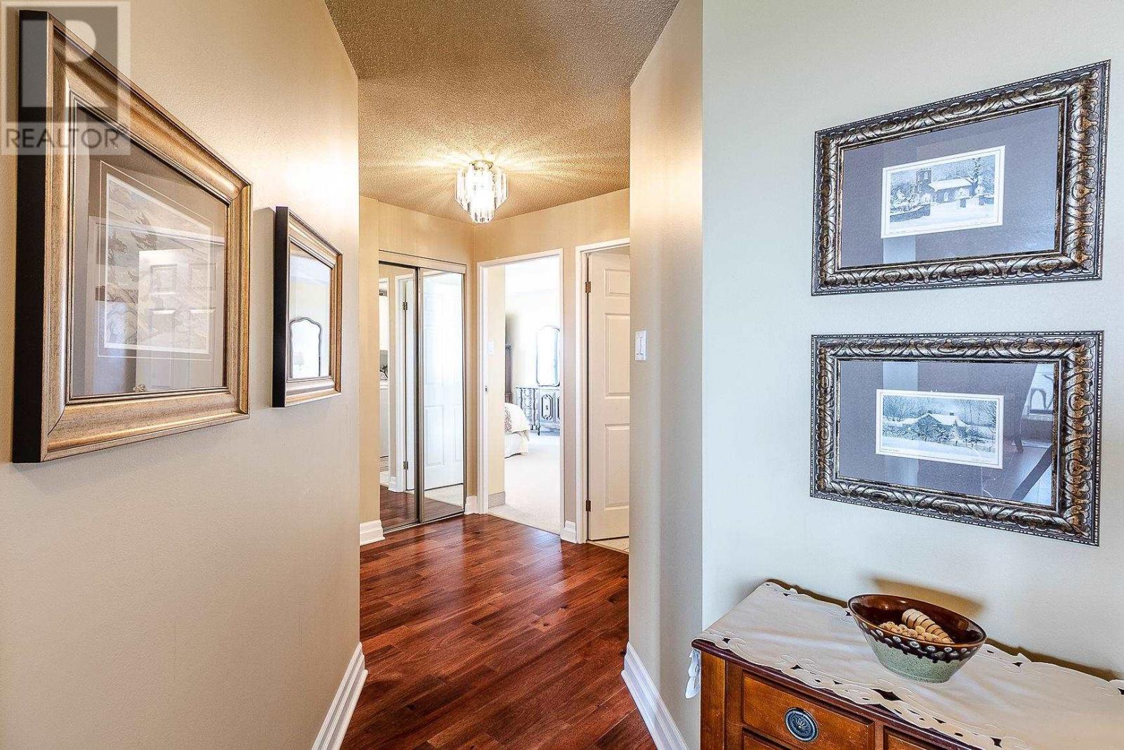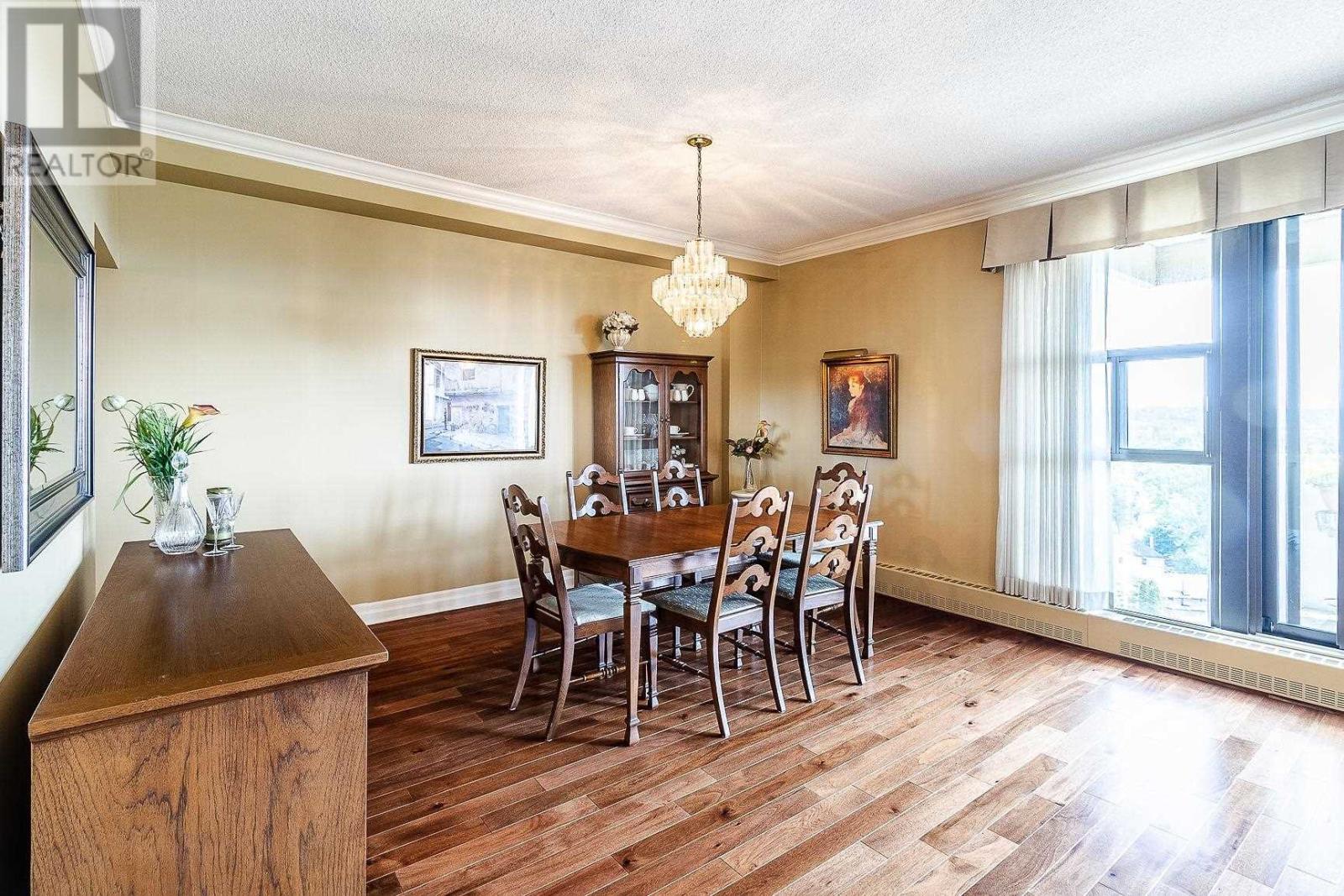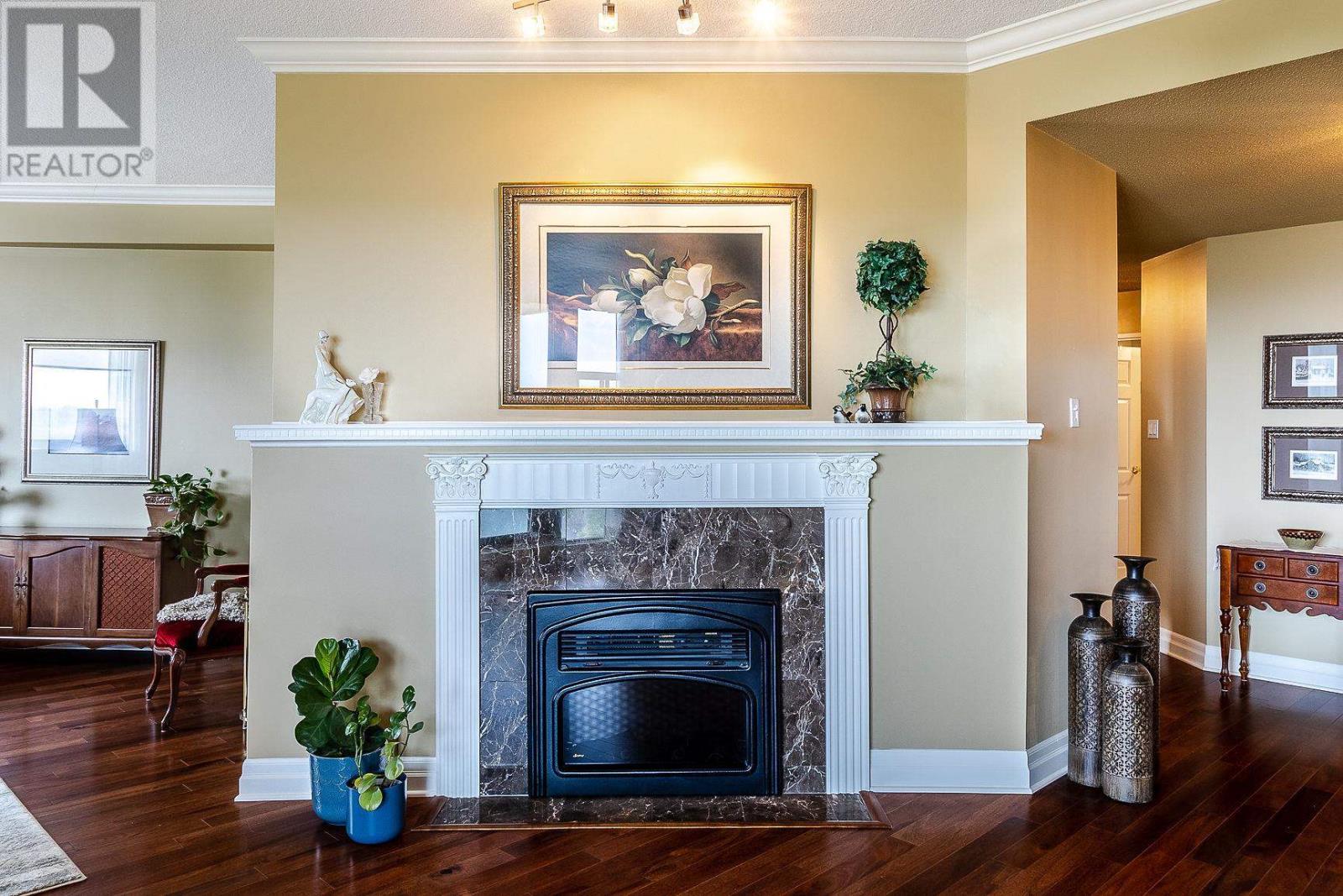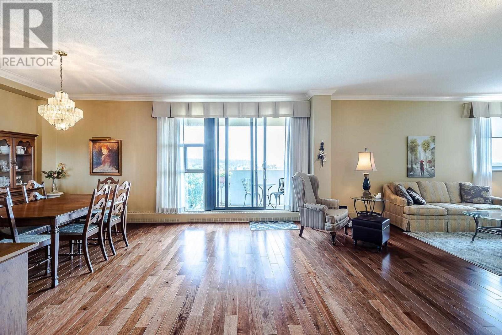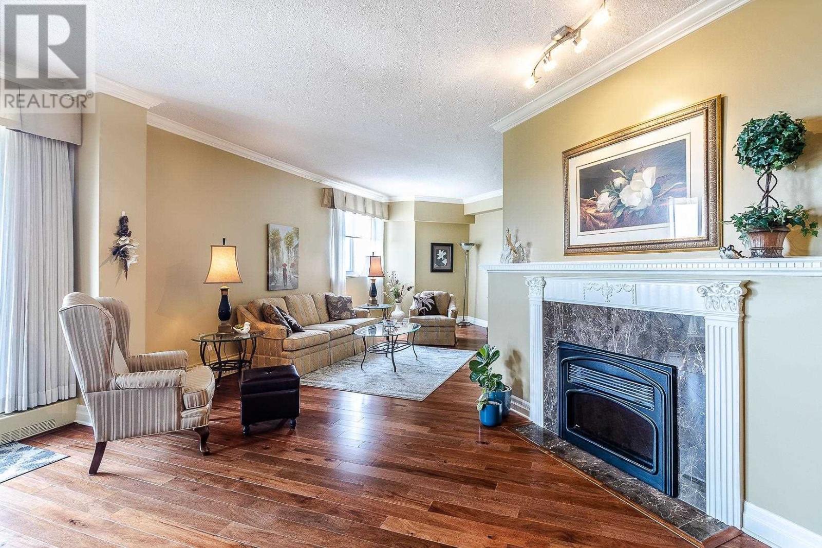 Elevate your life in this exquisite three-bedroom, two-bathroom penthouse condominium perched atop St. Bernards Tower. Start your day with the sun rising from the east, and wind down in the evening with the twinkling stars and city lights from the north. Boasting 2 private balconies, this condo provides unobstructed views of the cityscape, marina, Bellevue Park and the shipping channel. Large windows and patio doors floods the unit in natural light and gleaming hardwood floors extend through the living, dining, and hallway areas. Fireplace with mantle creates an elegant space that is perfect for entertaining guests. Kitchen features granite countertops and modern white cabinetry. THREE generous size bedrooms can allow for home office or family room potential. The spacious primary suite boasts a walk in closet, 4 pce ensuite and private east facing balcony providing sunny days and water views. In suite laundry room offers space for additional fridge and storage. Unit includes one underground parking spot to keep your vehicle safe from the elements. St. Bernard's Tower is well managed and provides a lifestyle that feels like a resort! Amenities include a pool, sauna, work-out room, library and social room. ONE bill covers it all- Condo fees ($1228.14) includes all heat, power and water. Available for immediate occupancy- all appliances included in sale. (id:22211)