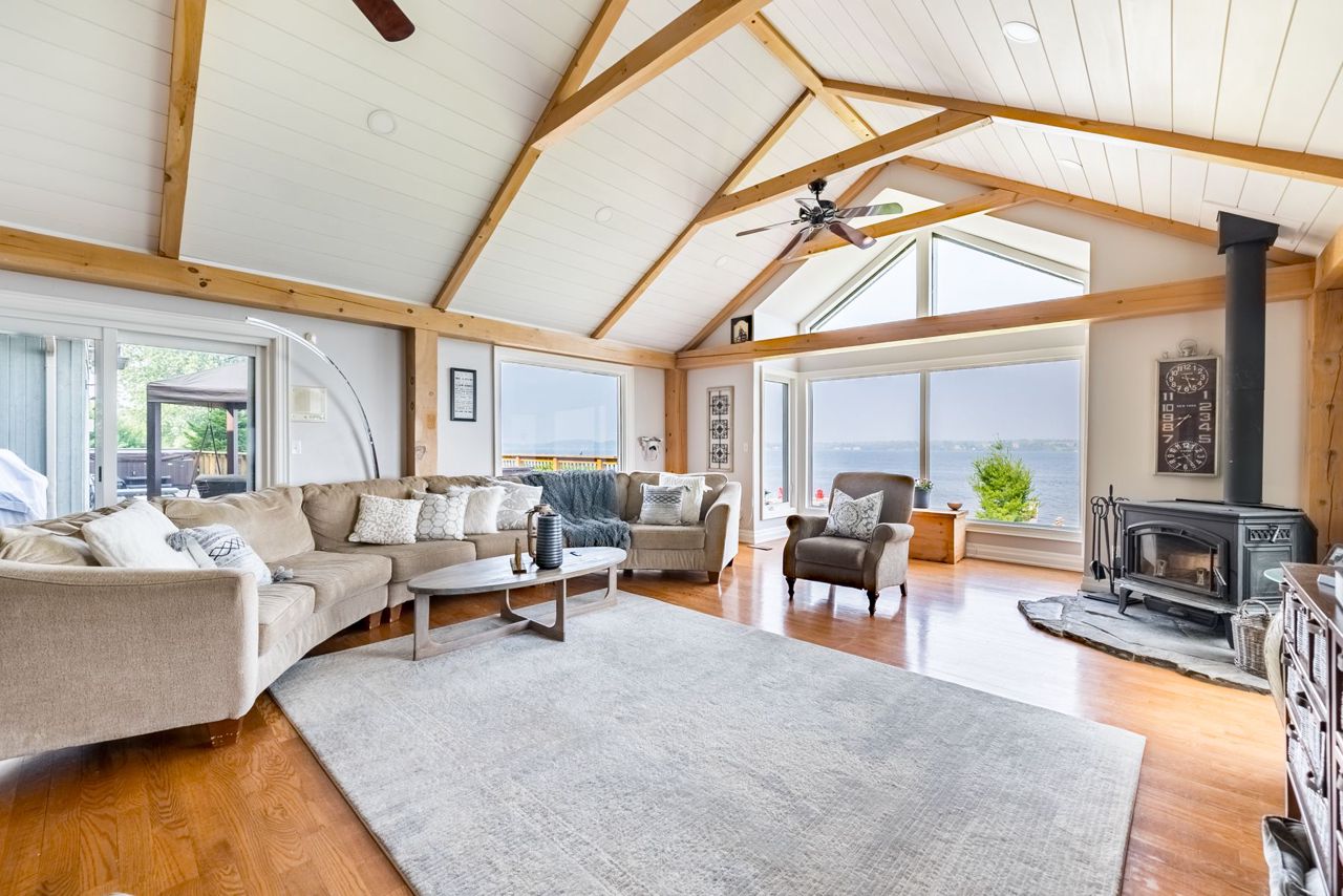 Luxury Home & Cottage in One! Enjoy breathtaking views from your custom built waterfront family-sized bungaloft in the quaint town of Port Perry. Expansive windows and multiple walkouts provide stunning views of Lake Scugog. Unwind with 173ft of water frontage & private dock. 5 Mins from Shops & Amenities. Over 3500 sq ft above grade open concept design. Oversized Gourmet kitchen. Great room with vaulted ceilings, woodburning fireplace & panoramic views of the Lake. Main floor office, Natural Gas and High Speed Internet. Massive primary retreat w/ cathedral ceilings, 5pc ensuite w/steam shower & walk-out to deck overlooking the lake w/hot tub. Separated from other Bdrms. Large 378 sqft Loft for bedroom/studio or guests. Fully finished bsmt w/ two walkouts, Laundry, rough in for kitchen, gas fireplace, large Bdrm, 3pc bath & gym/workshop. Perfect as rental or multi generational living space. Large circular driveway + 4 parking pads. Heated 3 car garage w/storage loft.50yr warranty roof '16, c/air '18, 6 Lake side fam rm wndws & sgwo '20. Pressure tank/pump '20, Jacuzzi 7per hot tub, 8x12ft rebuilt tractor shed, 14x22 post/beam gazebo, generator, 60ft aluminum dock, 2 8x16 floating docks & more!