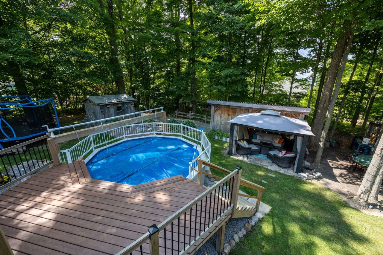 Please Welcome To Market This Custom Finished Home With Water Access, Private Park & Golf Course Close By- From The Beautiful Clean Professional Finishing's Inside To The Oasis Of A Backyard Including Private Sitting Area, Pool, Hot Tub & Bonfire Pit, This Home Truly Is A Unique Gem- Located On A Quiet Street And Just Steps To Water Access, This Home Can Double As A Cottage Easily- Updated Landscaped Property With Mature Trees & Lots Of Privacy- Natural Nature Surrounds You With Calm, Peace & Tranquility For Your Everyday Life-For Water Lovers, Clear Views As Far As You Can See And Enjoy Breathtaking Sunsets- Turn Key Home Is Ready For You.Shared Dock To Store Your Boat, Fish & Enjoy Gorgeous Sunsets. Mature Maple Trees Producing Your Own Sap Each Year- Also Multi Flavor Apple Tree, Work Shop, Garden Shed & Drive Shed For Handyman Lots Of Space For Storage. Two Tier Deck