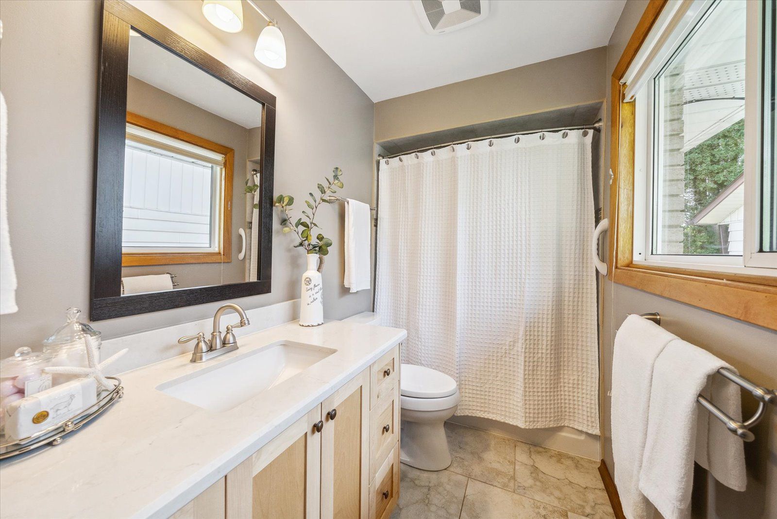 Welcome to quaint lakeside living in Port Perry! This lovely bungalow is nestled on a mature treelined street on a private 62 by 126 ft deep lot. Located in the heart of this welcoming community and just a quick walk to the lake with waterfront parks, splashpad and marina. Steps to charming historic downtown Port Perry with many unique boutique shops, and restaurants. When you walk in the front door you're greeted with freshly painted walls, large windows letting in lots of natural light and hardwood floors. The family sized eat-in kitchen was renovated in 2021 and features quartz counters and loads of cupboard space. Cozy gas fireplace in the living room that also features a bay window. Primary bedroom is generously sized for a king-sized bed and has a 4 piece ensuite. Convenient main floor laundry room! The open concept, professionally finished basement, has a separate entrance, newer broadloom, above grade windows and a bedroom. Private backyard great for entertaining or activitiesNew interlock patio 2021. New chainlink fence 2021. Roof Shingles 2020. Updated windows (some in 2022). Updated furnace and air conditioning unit. Water softener.