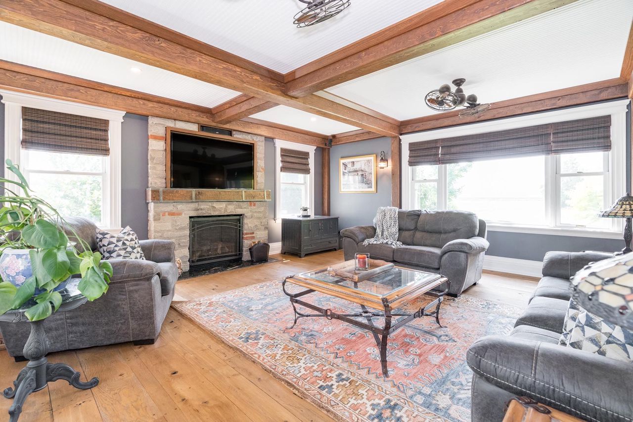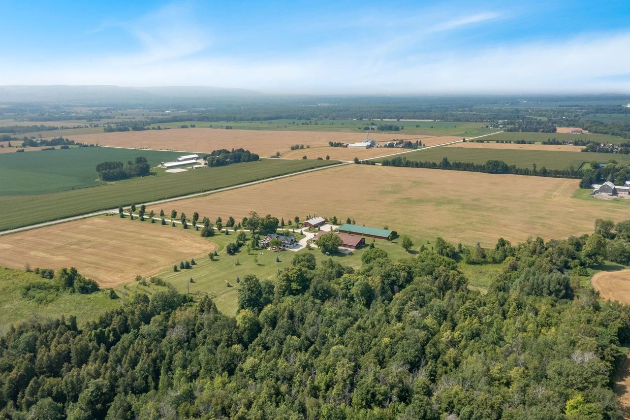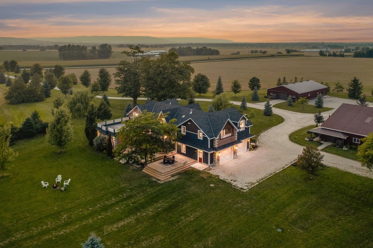 Welcome to this seamlessly refurbished century home. Just over 5 acres of land, with rustic charm, and functional features for living and business purposes. This home hosts 5 bedrooms and 5 bathrooms with 3 bedrooms having ensuite bathrooms, and their own balcony with views of The Blue Mountains. Enjoy a culinary kitchen with quartzite countertops, and a butler's pantry. It also includes high-end built-in appliances. Enjoy the large family room with a fireplace and hemlock wood accents for a warm atmosphere. Stunning features include a seamlessly added addition (2012), and original solid-wood 18th-century doors throughout. Relax in the outdoor lounge area. Multi-use facilities include a 40’ x 64’ workshop, a 6,800-square-foot workshop building, and a 9,000-square-foot storage unit with a heated office. Conveniently located near Collingwood and its amenities, public and private ski hills, golf courses, and marinas.The room mentioned as 'other' is a Home Theatre Room. For full list of rooms please see the attached floorplan.