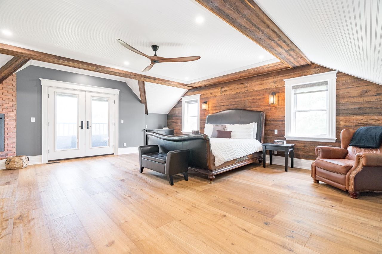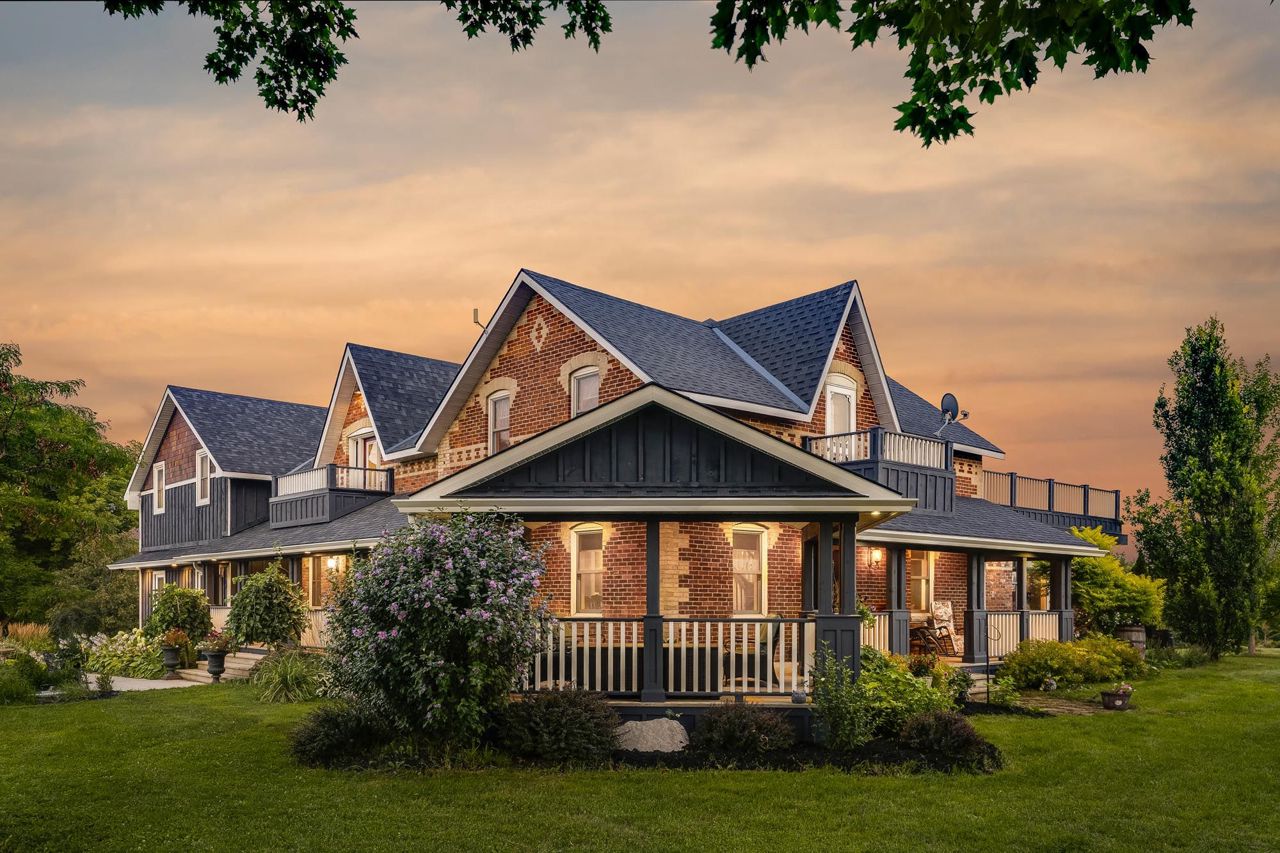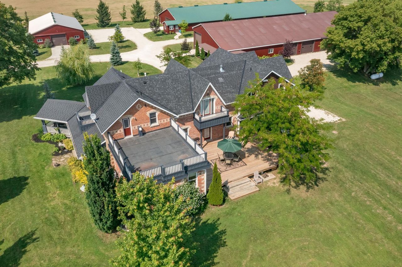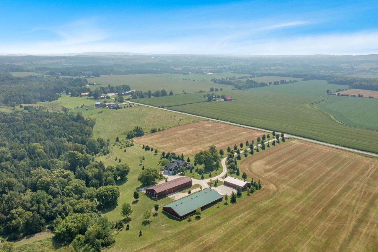Welcome to this seamlessly refurbished century home. Just over 5 acres of land, with rustic charm, and functional features for living and business purposes. This home hosts 5 bedrooms and 5 bathrooms with 3 bedrooms having ensuite bathrooms, and their own balcony with views of The Blue Mountains. Enjoy a culinary kitchen with quartzite countertops, and a butler's pantry. It also includes high-end built-in appliances. Enjoy the large family room with a fireplace and hemlock wood accents for a warm atmosphere. Stunning features include a seamlessly added addition (2012), and original solid-wood 18th-century doors throughout. Relax in the outdoor lounge area. Multi-use facilities include a 40’ x 64’ workshop, a 6,800-square-foot workshop building, and a 9,000-square-foot storage unit with a heated office. Conveniently located near Collingwood and its amenities, public and private ski hills, golf courses, and marinas.The room mentioned as 'other' is a Home Theatre Room. For full list of rooms please see the attached floorplan.