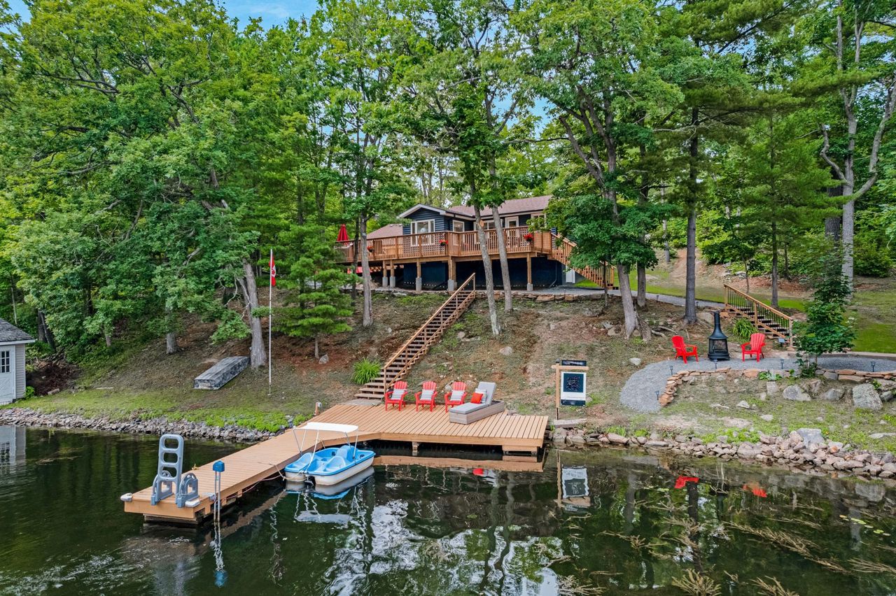 This one has it all with 285' of stunning waterfront on the beautiful Severn River. This gorgeous property boasts 2 cottages, a rare boathouse, boat launch, 2 car garage, 2 private docks with 8' deep waterfront on over 1.3 acres tucked away in a private deep bay siding on to over 1400 acres of crown land! More than $300K spent in improvements to make this family compound turn-key for year-round enjoyment as a 4 season getaway or your new home. The main cottage has been totally renovated w/stunning high-end finishings incl. beautiful new kitchen & bath w/quartz counters, ensuite laundry, all new electrical in main, new heating systems, drilled well & so much more! Entertain on the O/S deck w/guests who can retreat to the second 1 bed 1 bath cottage w/full kitchen while you enjoy the ultimate privacy in the fully renovated gorgeous 3 bed 1 bath cottage. High speed Starlink internet allows you to work while you enjoy the gorgeous views w/some of the best fishing right outside your door.The beauty of this property must be seen to fully appreciate all that it has to offer. Easy access by year-round private road w/municipal waste collection. This gorgeous pocket is home to many full-time residents. Your keys await you!!