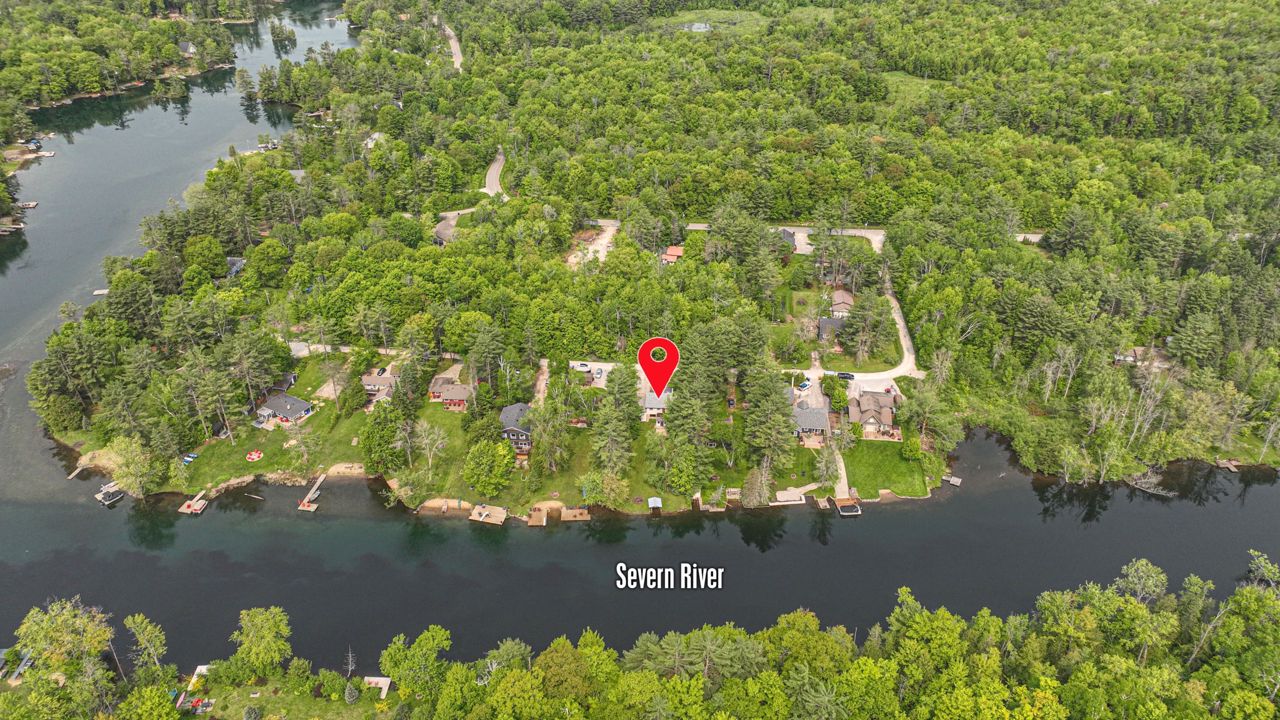 Large 2200 SF, Waterfront Home/Cottage with 76 Ft X 207 Ft Lot on the Severn River. Featuring Five Bedrooms, Propane FP, Wood FP, Sunroom, Covered Boat slip and 400 SF Garage. Enjoy Waterfront Activities, Backyard BBQ's and Fires with Lovely & Private Riverfront View