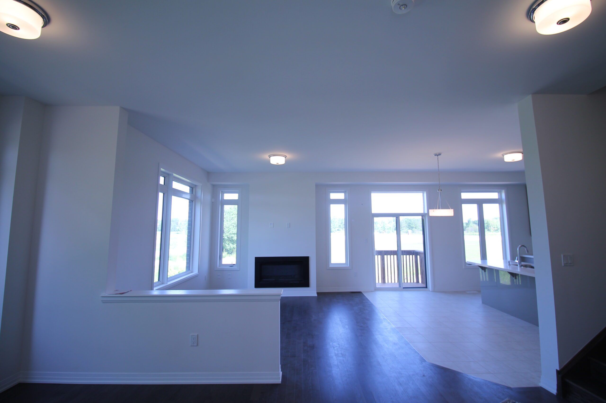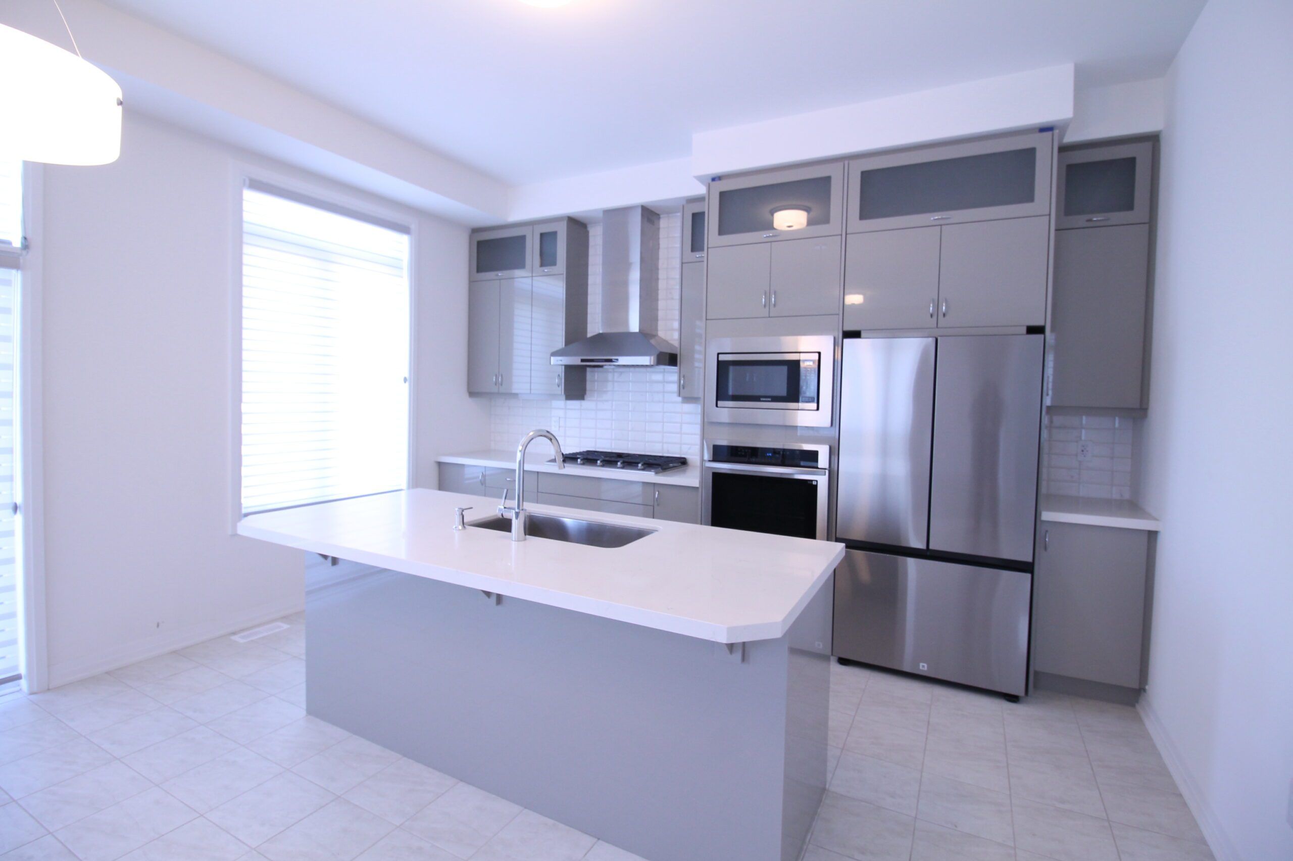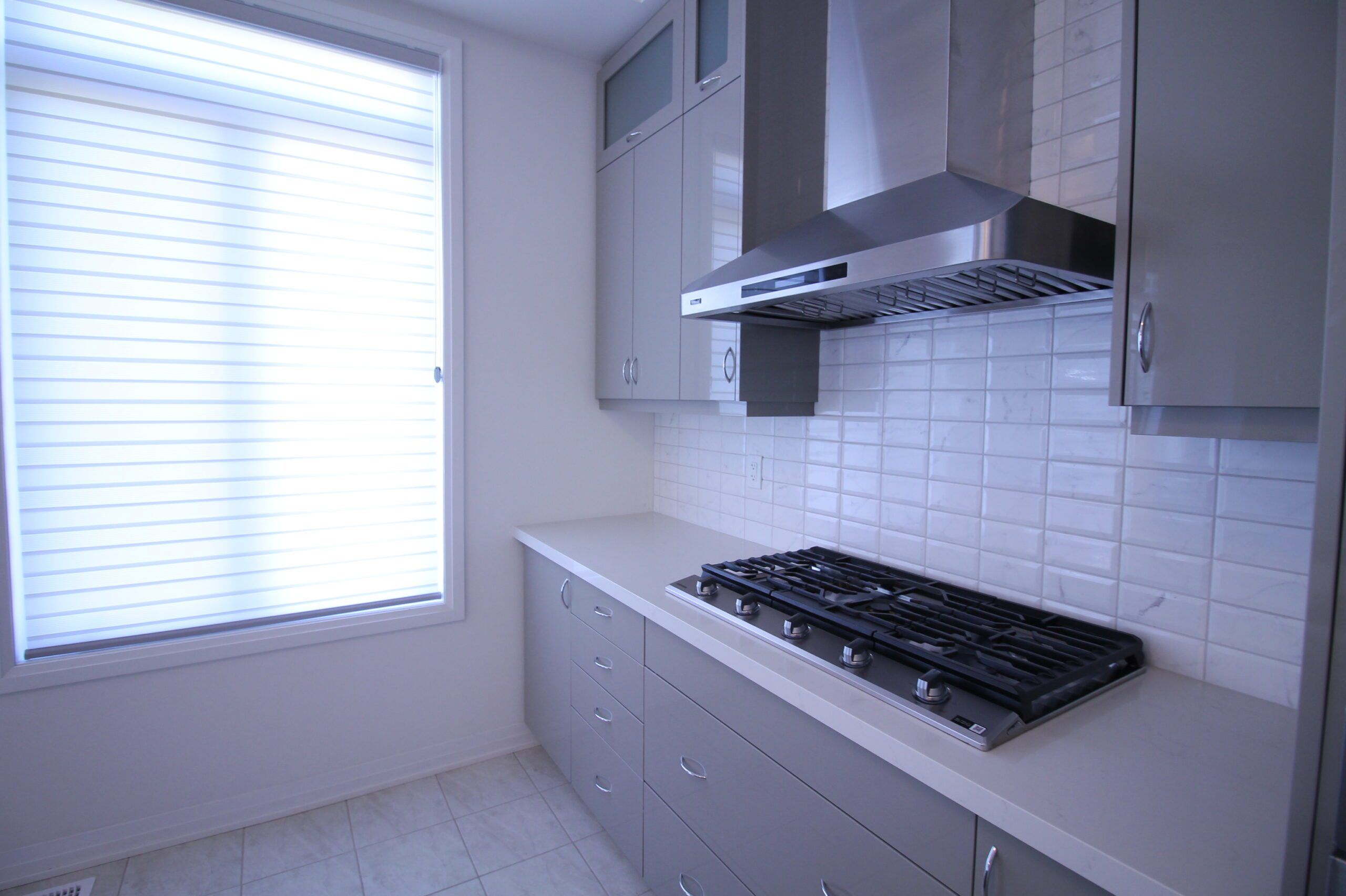 The open concept kitchen and living area is very spacious. The kitchen has a unique gloss finish on all countertops and cupboards, providing a sleek and clean look. Upstairs, there are 4 bedrooms that are quite large and each offer a closet. The master bedroom has a 5-pc bathroom.