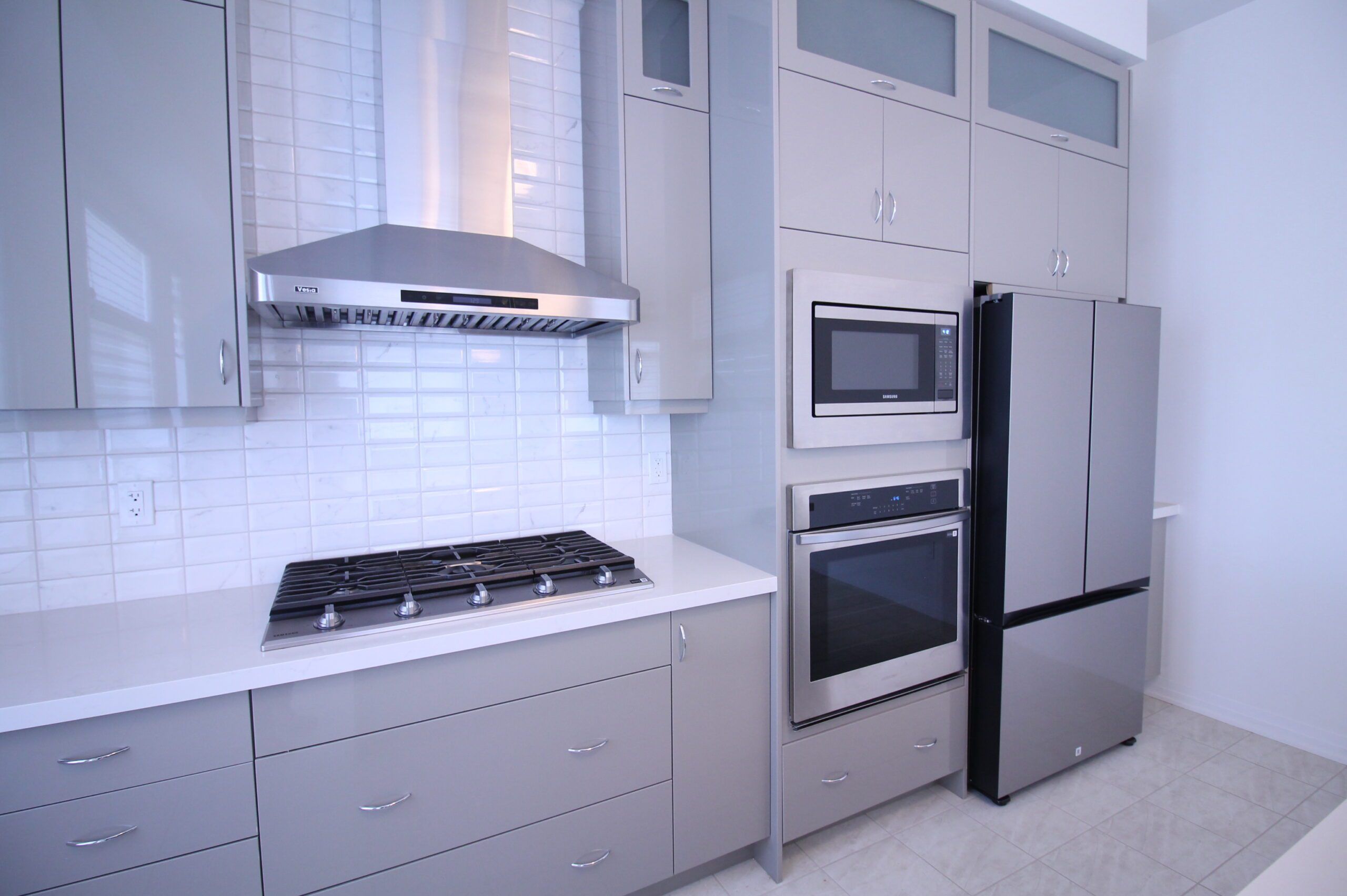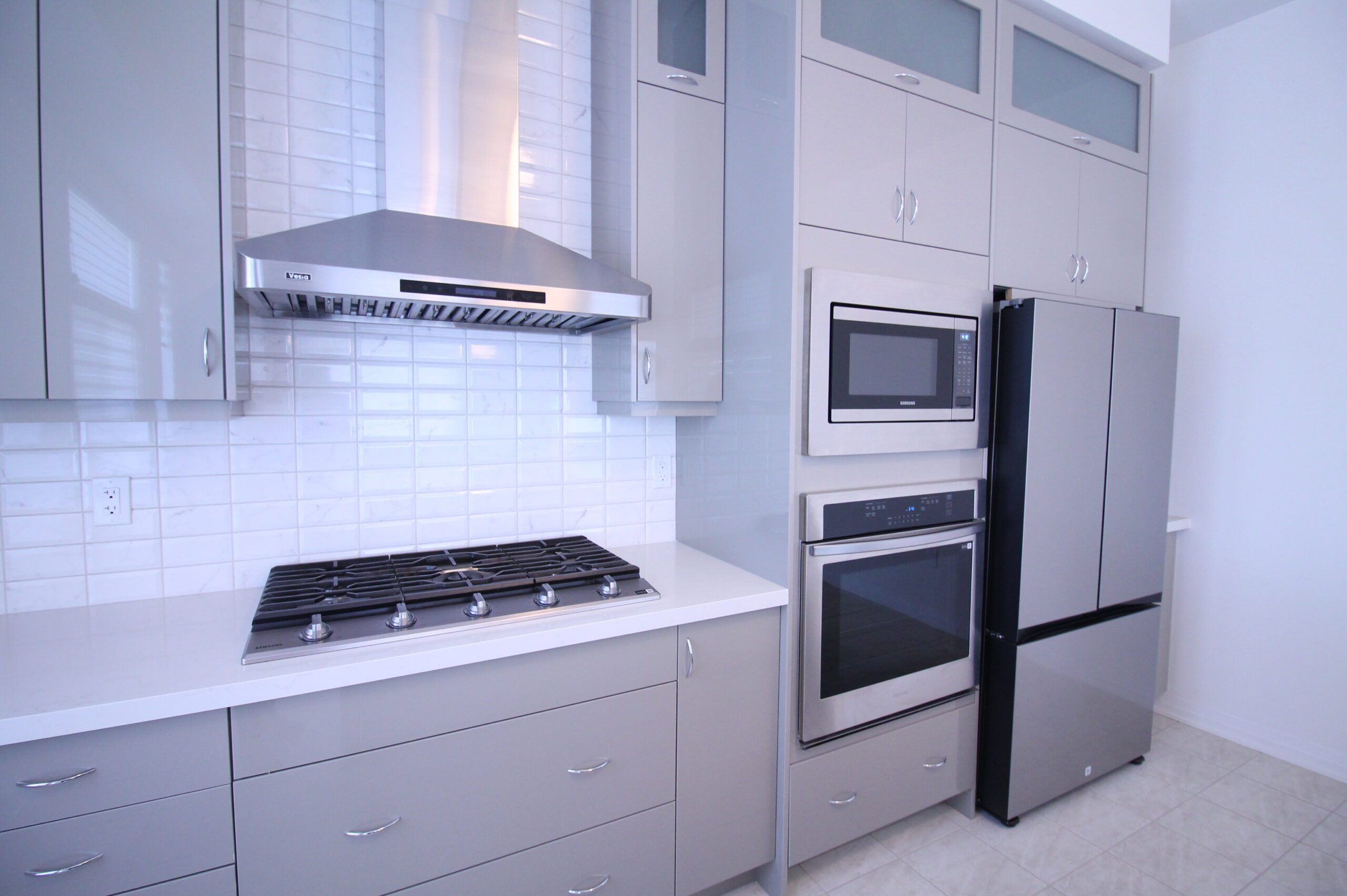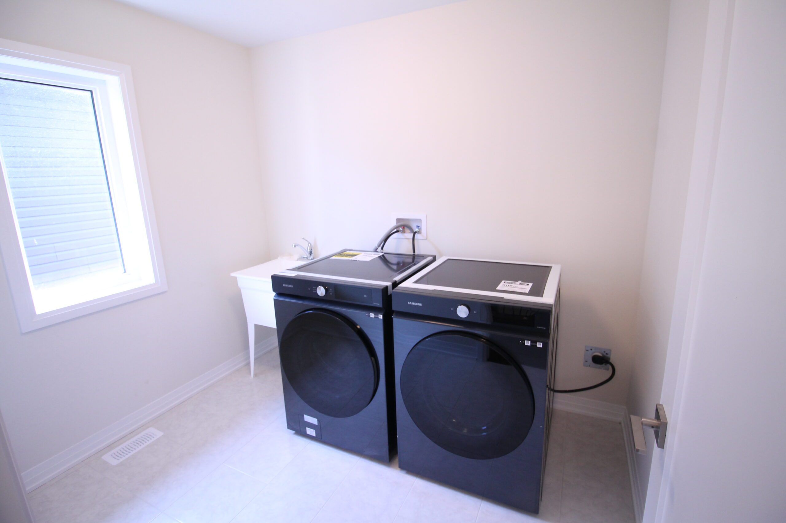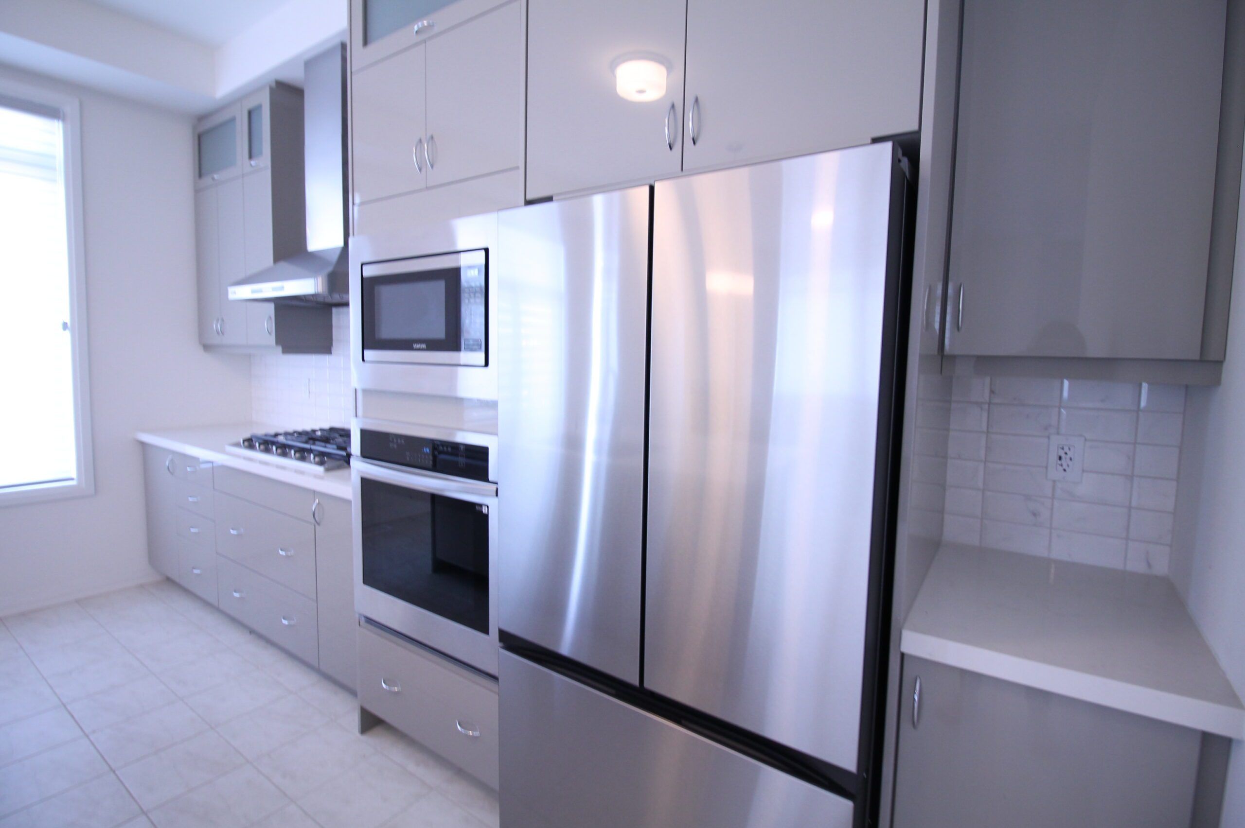 The open concept kitchen and living area is very spacious. The kitchen has a unique gloss finish on all countertops and cupboards, providing a sleek and clean look. Upstairs, there are 4 bedrooms that are quite large and each offer a closet. The master bedroom has a 5-pc bathroom.