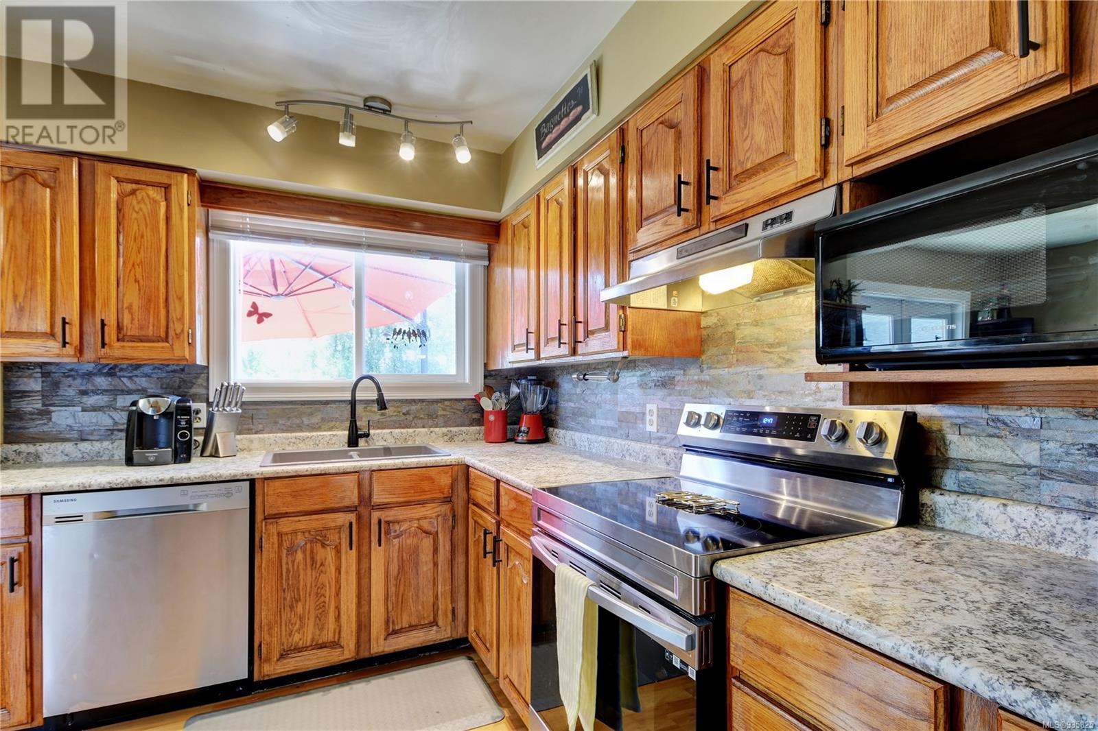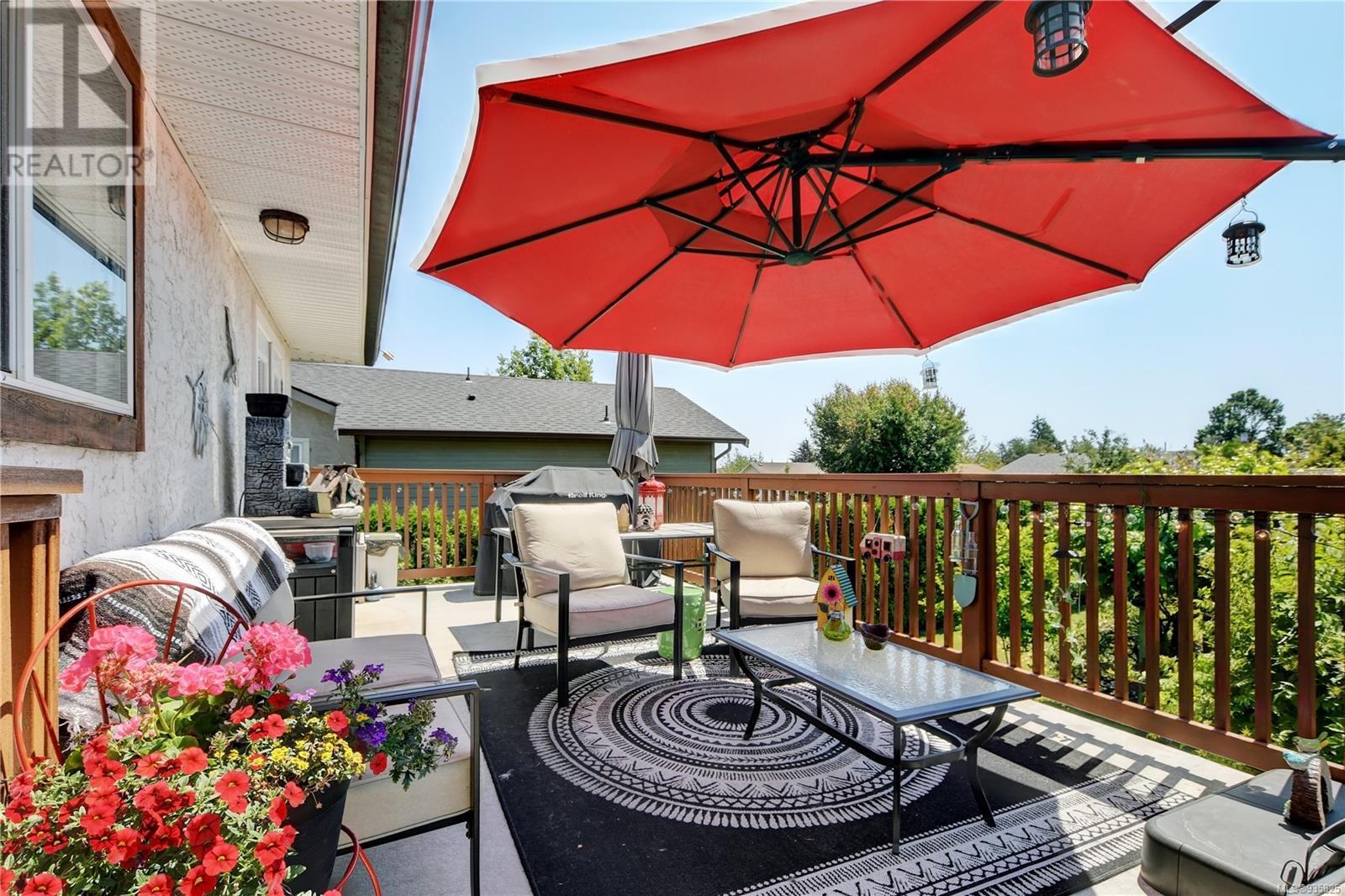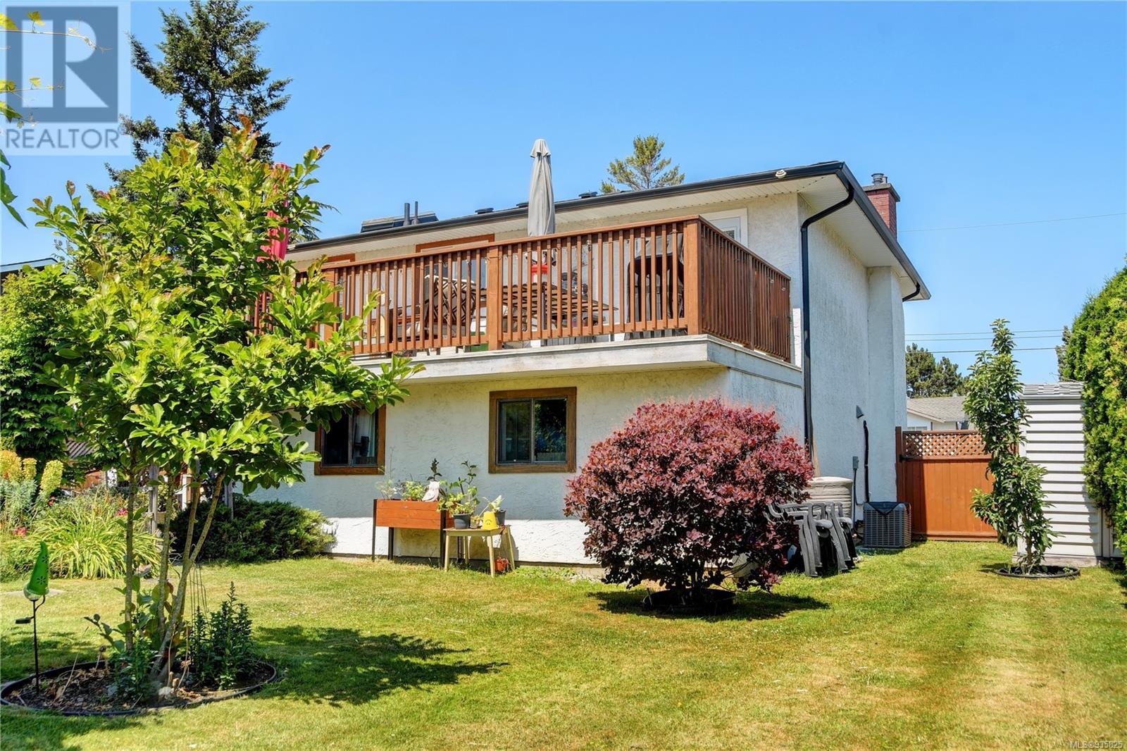 An ideal 5-bedroom family home with a gorgeous back yard, massive sun deck and separate suite! Upgrades include double pane windows throughout in 2021. Newer gas fireplace in living room and family room. Air conditioner added to furnace in 2022. Lower level renovated with new carpets and an addition of a suite with separate entrance. Freshly painted inside and out. Enjoy the massive deck off the kitchen, leading to the gorgeous back yard that has been transformed into an oasis. Three beds up, good size living and dining room and kitchen. New appliances in kitchen. Two more bedrooms down plus an office, large rec room and suite. Many options here for an extended family or guest suite. Convenient location close to Sidney. Very good value in today's market! (id:22211)