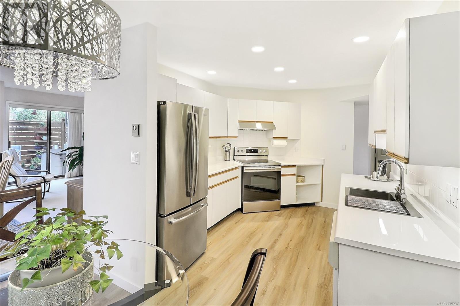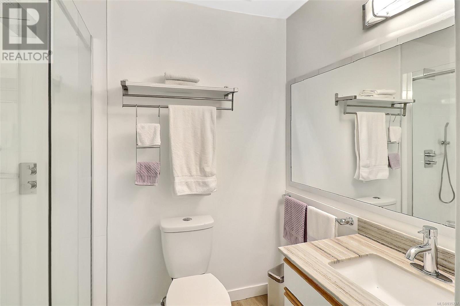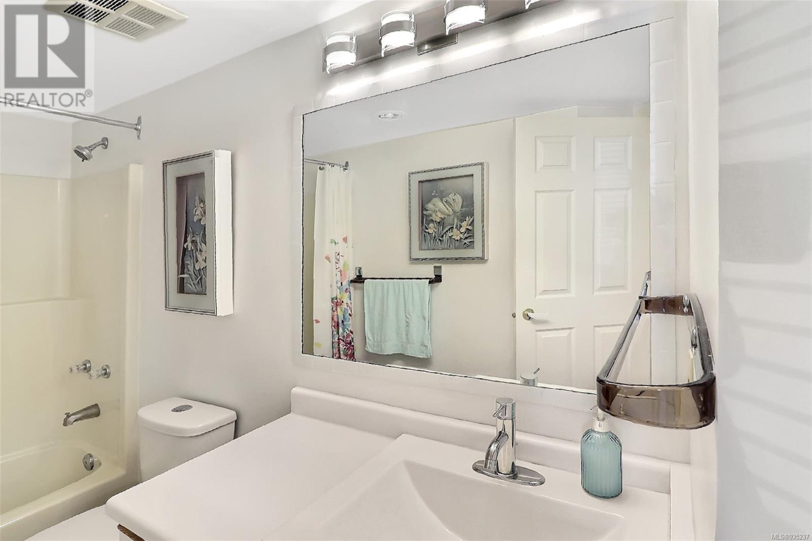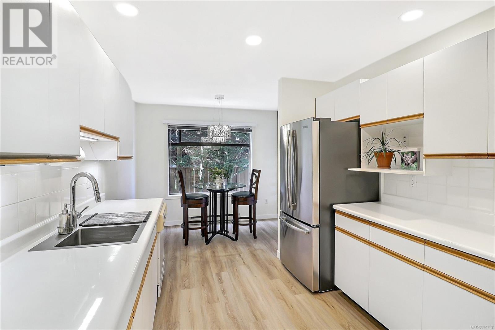 Visit REALTOR website for additional information. Impeccable, meticulous move-in ready, almost 1,400 sq. ft. 2BD, 2BA ground floor corner unit condo. No stairs or elevator. Park in the garage making it easily accessible to the private entranceway. Freshly painted and updated throughout with all new modern lighting and vinyl flooring. Spacious kitchen with ample counter and storage, newer SS appliances, bright, inviting breakfast nook and much more. Renovated ensuite bathroom with custom, luxurious walk-in shower. Open concept living/dining room with large windows. In-suite laundry. Private patio. Unparalleled value for this 55+ complex, 3 blocks to the ocean and amenities of the downtown core. A rare find in Sidney as condos of this size and desirable location are few and far between. This is a healthy, toxin-free home for you. (id:22211)