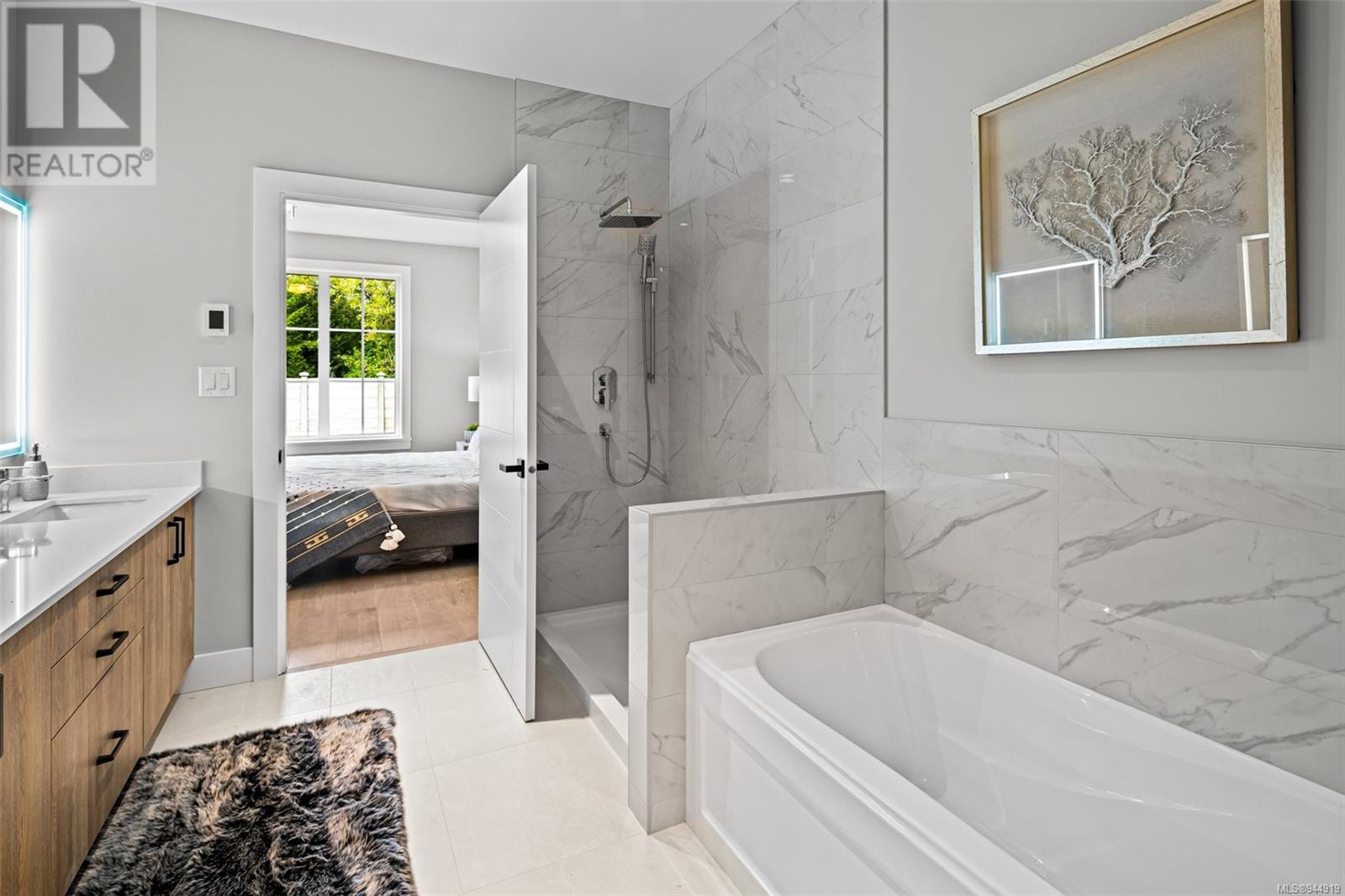 The Perfect Seaside Home - Brand New and Move-In Ready! In the heart of Sidney, minutes from the local shops and restaurants of Bevan Avenue and just steps from the nearby beach sits the perfect seaside home. Coastal inspired, this 3-Bed, 2-Bath, 1,772 sqft. duplex gives a bright and airy feel with open-concept living and 10-ft. ceilings throughout. A spacious kitchen, complete with a walk-in pantry, sits open to the dining and living areas, where vaulted ceilings define the space. Natural light floods the home with beautiful windows placed to make the most of its west-facing exposure. Tucked off the main living area is the primary suite, with a luxe ensuite and a fully outfitted walk-in closet. Two additional bedrooms and a shared bathroom sit at the front of the home, along with a laundry/mud room. Outdoors, you’ll find a large, sunny backyard, fully fenced with both, a covered and uncovered section of patio, and a beach, park, or path is always just a leisurely stroll away. (id:22211)
