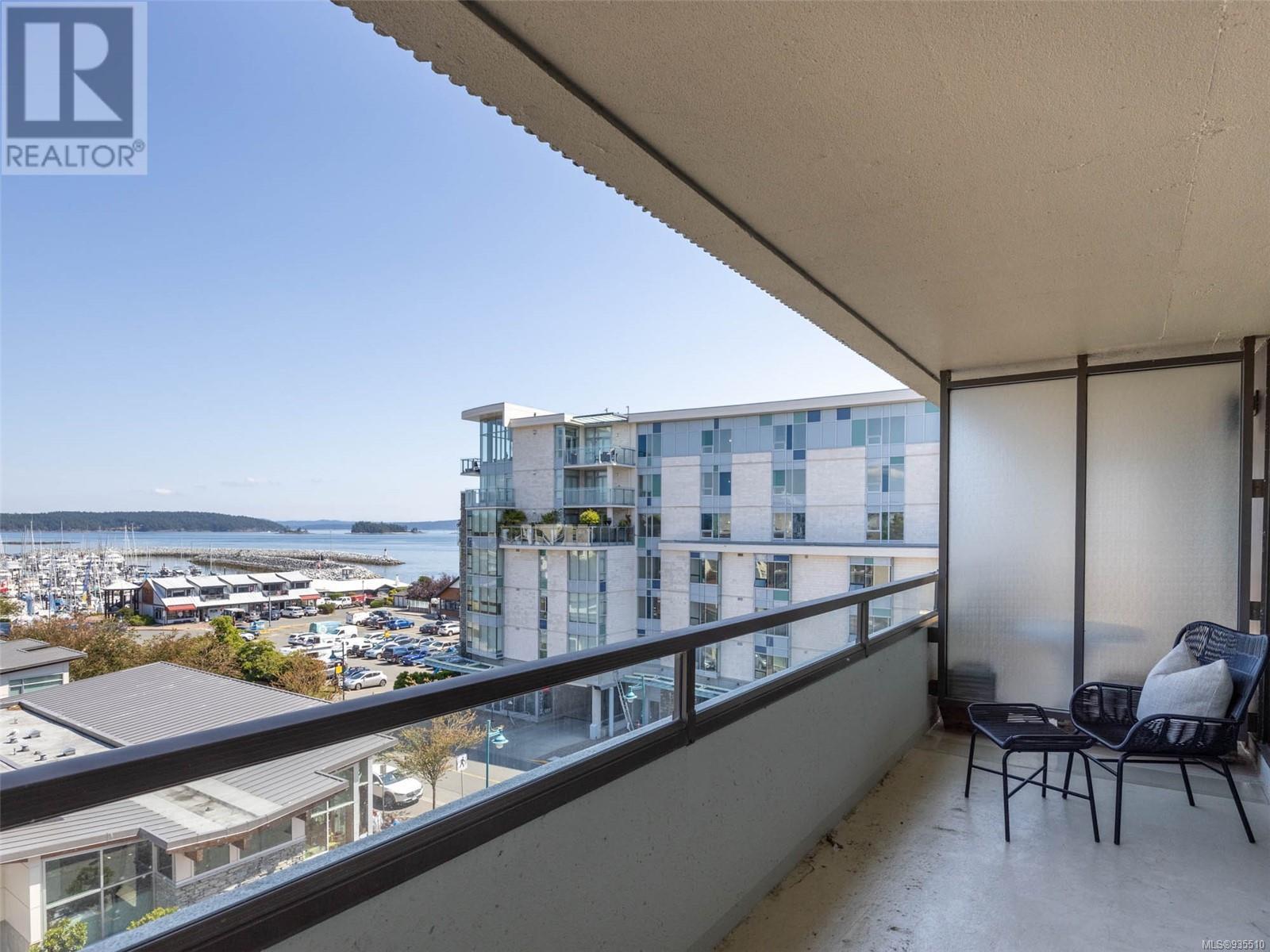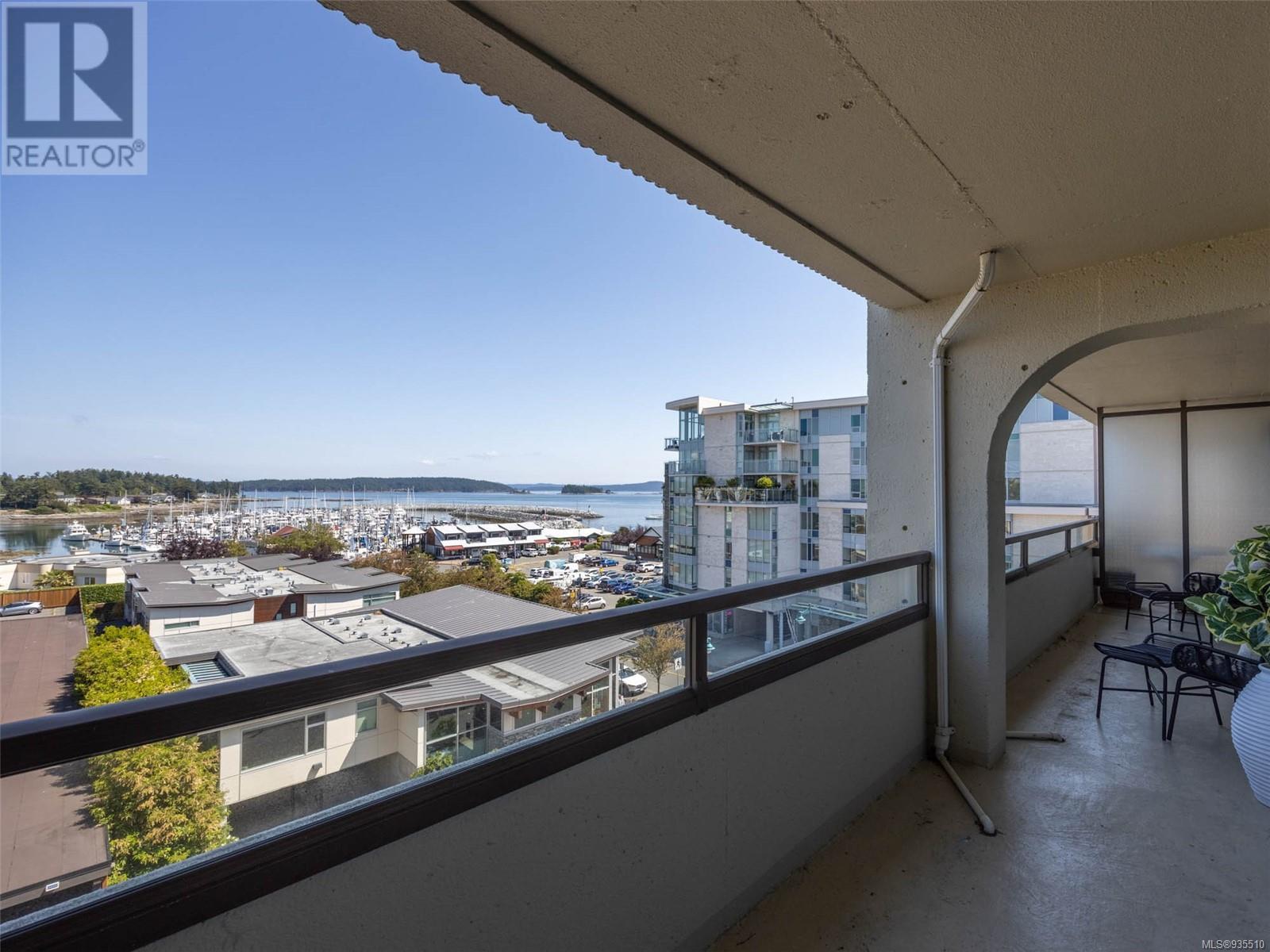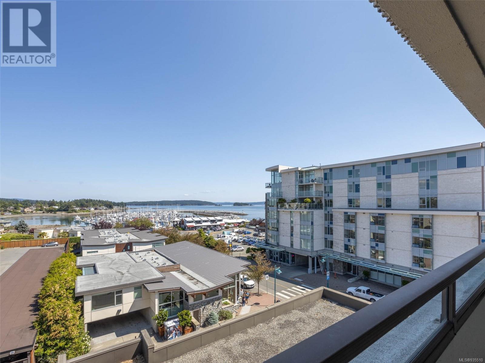 VIEWS VIEWS VIEWS! Welcome to the Landmark, one of the most desirable view locations in Sidney! This absolutely pristine one bed one bath condo is situated in one of the few steel and concrete buildings in Sidney, on the quiet side of the building and offers exquisite water and marina views from both the living space and the oversized balcony. There is nothing to do here except unpack your suitcase and enjoy your surroundings. Situated on the cooler side of the building where you can enjoy the ocean breezes in the heat of the summer. No need for a car as everything you need is within walking distance, however there is one underground parking spot, separate storage locker, library, secured and monitored entrance and more. Invite your guests to enjoy one of the three guest suites at a very nominal cost. This fabulous condo is right across the street from the grocery store and one block to the ocean. Enjoy everything beautiful Sidney by the Sea has to offer! A must see! (id:22211)
