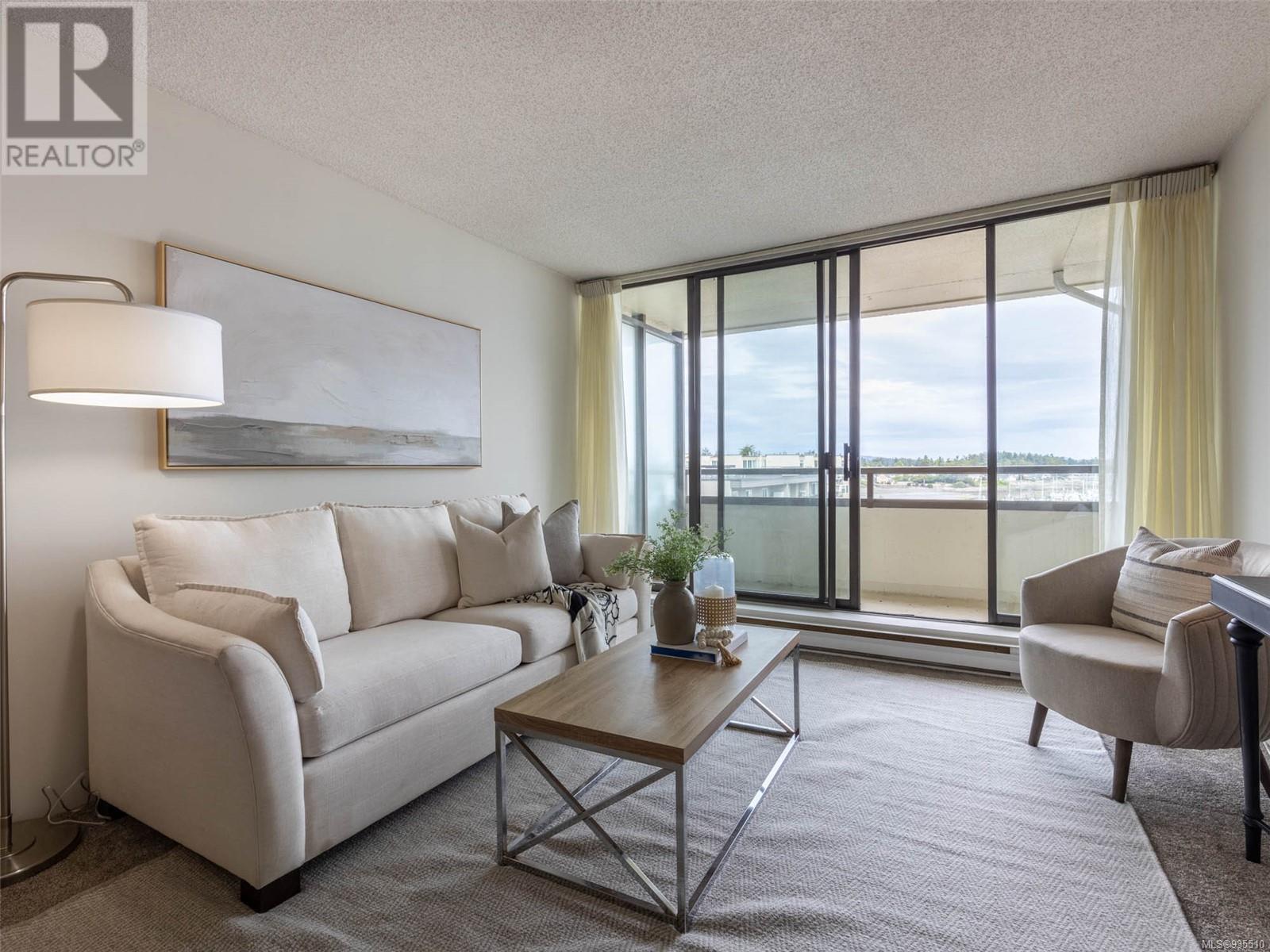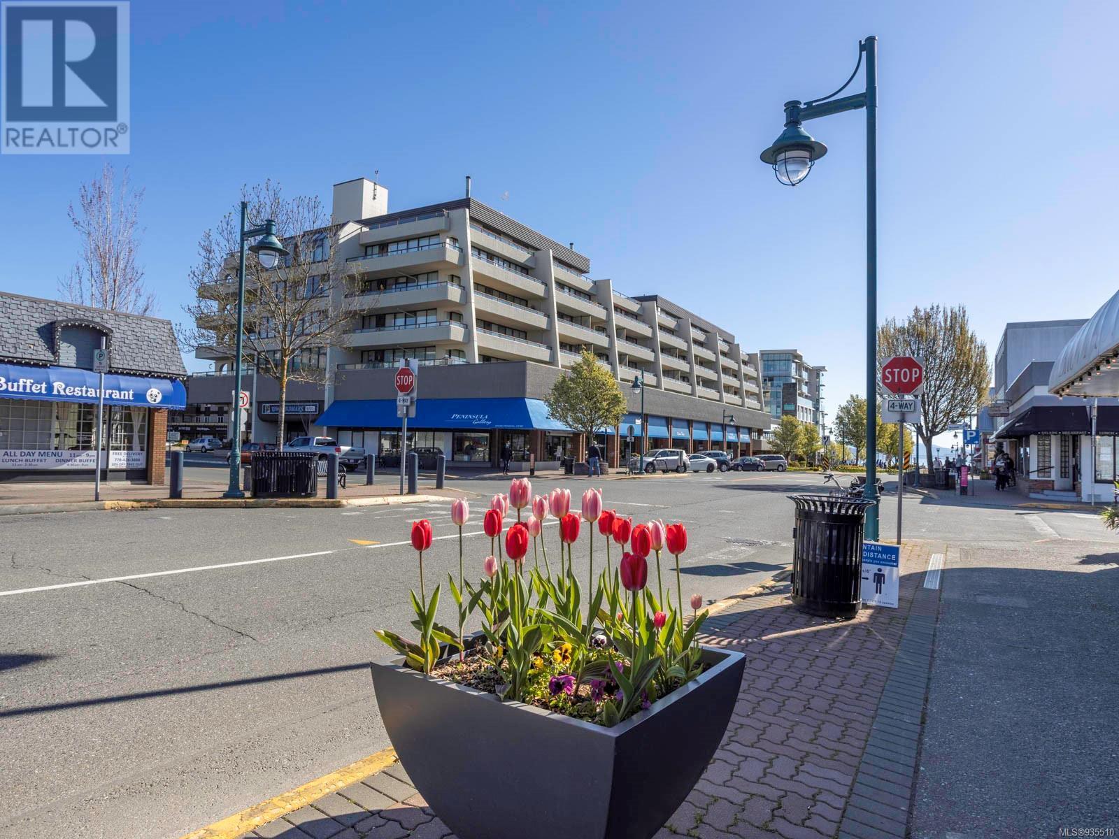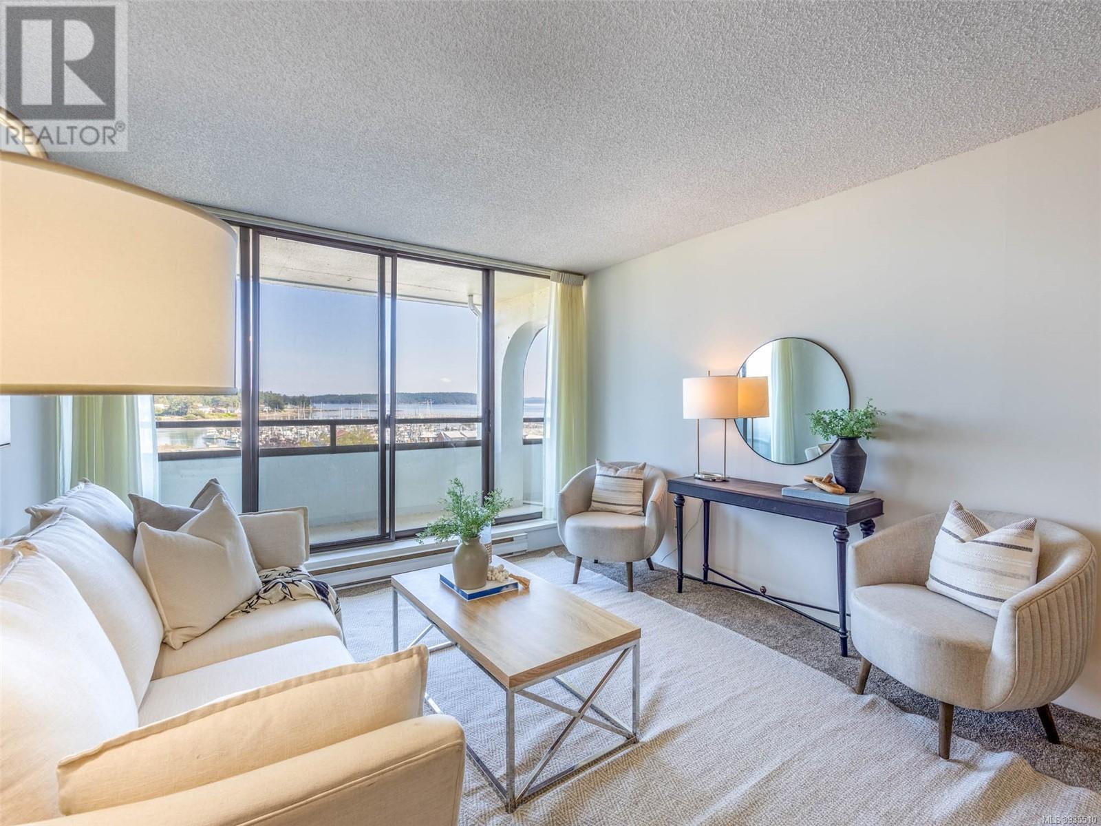 VIEWS VIEWS VIEWS! Welcome to the Landmark, one of the most desirable view locations in Sidney! This absolutely pristine one bed one bath condo is situated in one of the few steel and concrete buildings in Sidney, on the quiet side of the building and offers exquisite water and marina views from both the living space and the oversized balcony. There is nothing to do here except unpack your suitcase and enjoy your surroundings. Situated on the cooler side of the building where you can enjoy the ocean breezes in the heat of the summer. No need for a car as everything you need is within walking distance, however there is one underground parking spot, separate storage locker, library, secured and monitored entrance and more. Invite your guests to enjoy one of the three guest suites at a very nominal cost. This fabulous condo is right across the street from the grocery store and one block to the ocean. Enjoy everything beautiful Sidney by the Sea has to offer! A must see! (id:22211)