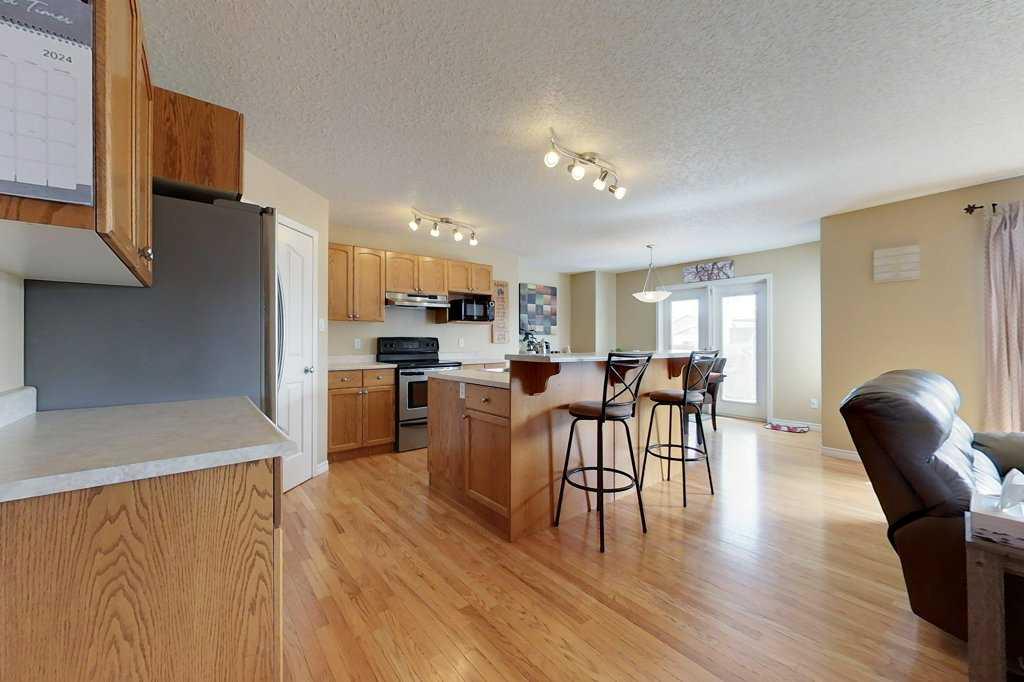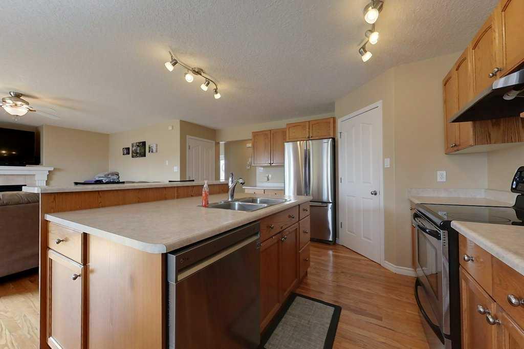 Welcome to your future home, a stunning 2-storey beauty nestled in an family-friendly neighborhood. This home is not just a place to live, but a lifestyle offering convenience and comfort. As you step inside, you are greeted by a spacious entryway featuring high ceilings. The warm hardwood floors underfoot guide you through the open-concept floor plan that seamlessly blends the living spaces. The heart of the home, the kitchen boosts an expansive island with bar stool seating - perfect for casual meals or entertaining, and a walk-thru pantry that conveniently opens into the laundry room. Adjacent to the kitchen is the family room, a cozy retreat with a stunning mantled gas fireplace. Large windows frame views of the backyard, filling the space with an abundance of natural light. The main floor also houses a breakfast/dining area that seamlessly extends to the outdoor patio deck. A 2pc bathroom completes the main floor. The upper floor houses 3 bedrooms, including the primary suite. The suite is a private sanctuary featuring a walk-in closet and a large 3pc ensuite. An additional shared 4pc bathroom serves the other bedrooms. Fully finished basement offers additional living space. It houses a 4th bedroom, a 3pc bathroom, a large recreation room, and extra storage space. This is the perfect space for a home gym, office, or playroom. The highlight of this home is the backyard, fenced for privacy and features back-alley access for toys or RV. It's the perfect space for kids to play, for hosting summer barbecues, or simply enjoying the outdoors. Don't miss out on this opportunity to make this your dream home!