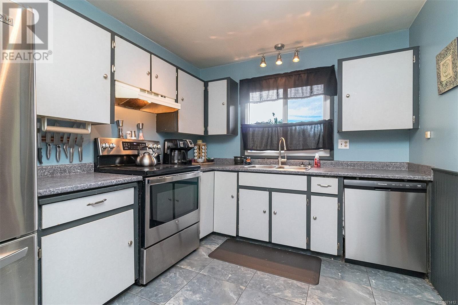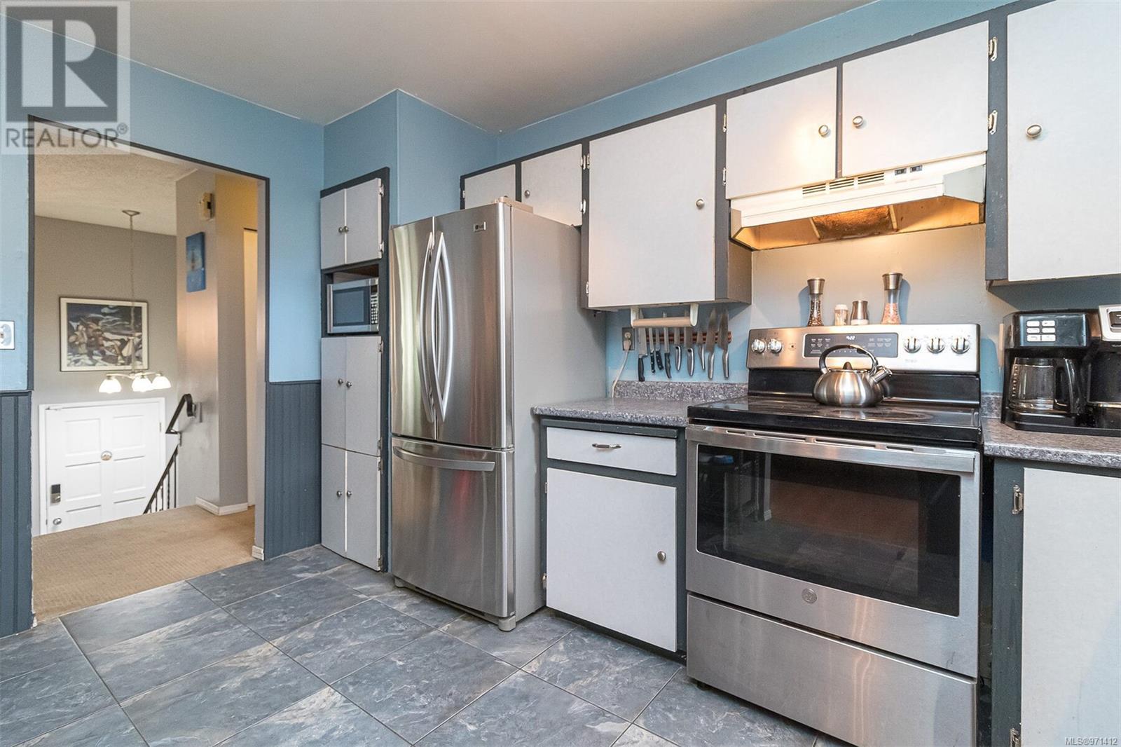 This split level 4 bedroom plus bonus room, 2.5 bath home is in the family friendly Broomhill neighborhood, located right across from a park and is on city and school bus routes. Upstairs offers 3 bedrooms, primary includes attached 2 piece ensuite, 4 piece bathroom, living room with stone wood burning fireplace, bright kitchen with stainless steel appliances, formal dining room with sliding doors to covered deck. Downstairs is the 4th bedroom, bonus room, 3 piece bathroom, large family room with wood burning stove, and laundry/mud room with access to the garage. New roof including gutters and guards installed December 2023 with 50 year transferable warranty, large fully fenced backyard with 2 decks and 1 that is fully covered with a maintained hot tub, lovely garden area with established raspberry and thornless blackberry bushes, separate dog run space and lots of room for kids and pets to play. Parking includes single car garage, double wide driveway, with room for your RV or boat. (id:22211)