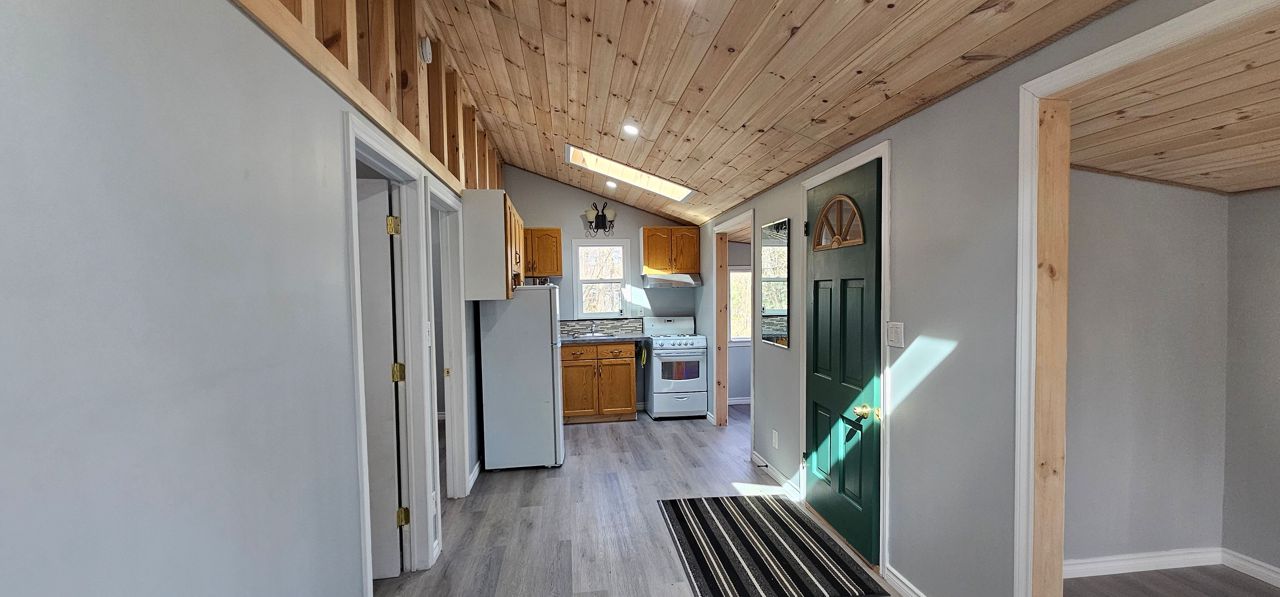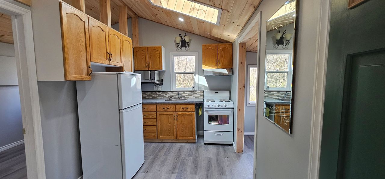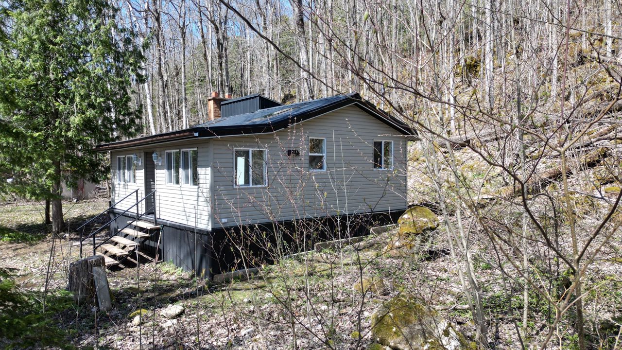 This super cute and completely renovated cottage or home in Mallory Beach. Cottage/home shows well. Situated on a large double lot measuring 160 feet wide by 150 feet deep. The property is well treed and has a circular driveway. All newly updated in 2022 - flooring, electrical (100 amp), heat pump, plumbing, vinyl siding, metal roof, windows, and kitchen. Sky lights in living area offering plenty of sunlight. Three piece bathroom has laundry hookup for a stack unit. Prime property for the minimalist, single individual, or couple who can appreciate "less is more"! Property is just a short drive to Wiarton for all conveniences including shopping, hospital, boating at the marina, or enjoy a stroll along the boardwalk at the water park. Property backs onto the escarpment and is located on a quiet "No Exit" road. Rural services available. Property is ready for immediate possession. Combined taxes: $1743.36.