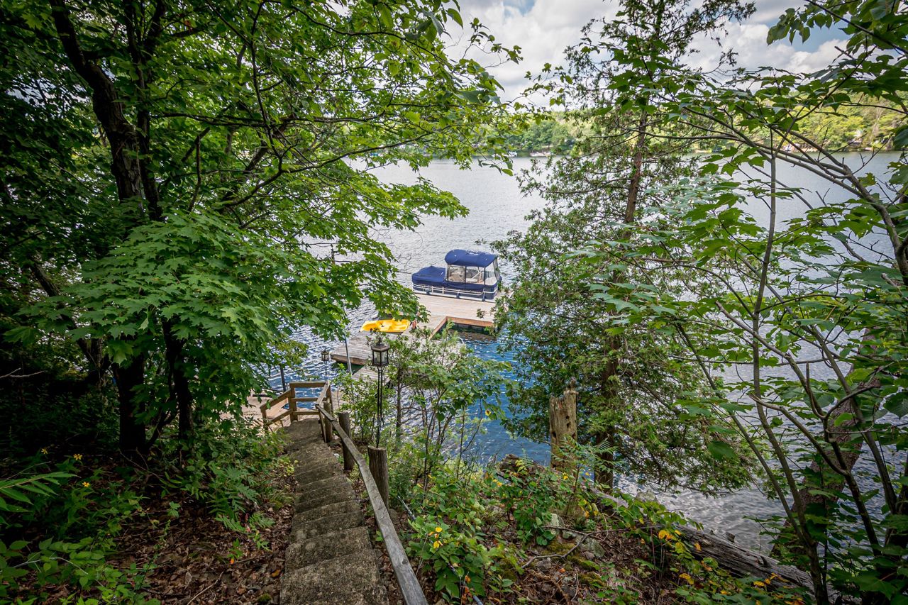Welcome To 1025 Hummingbird Lane – A Waterfront Retreat on Desert Lake with motivated sellers!! When the temperatures rise in the city, cool off & enjoy fabulous sunsets from private wrap-around decks with 385 ft of west-facing shoreline! In addition to exceptionally clean water for swimming, abundant fishing, a hot tub & multiple areas for sunbathing and relaxing, there is a 2500+ Sq Ft Bungalow, with 4 bedrooms and 3 baths, that comes partially furnished. The main level features a large Eat-In Kitchen with a centre island and breakfast bar, skylight and pantry, plenty of storage, an open-concept Living Room/Dining Room with a walk-out to the Upper Deck, a Primary Bedroom with a vaulted ceiling, bay window and 3-Piece Ensuite, and a Second Bedroom with its own 4-Piece Ensuite. On the lower level, entertain family & friends in the large Recreation Room with a bar, pool table, wood stove & walk-out to a second wrap-around deck with a view of the lake & just a few steps to the hot tub.New dock with glass railing, water filtration system, enclosed outbuildings, 3 floating docks & swimming stairs. Amenities: golf & parks in Verona & Hartington, hiking & camping in Frontenac Provincial Park and 30 mins NW of Kingston!