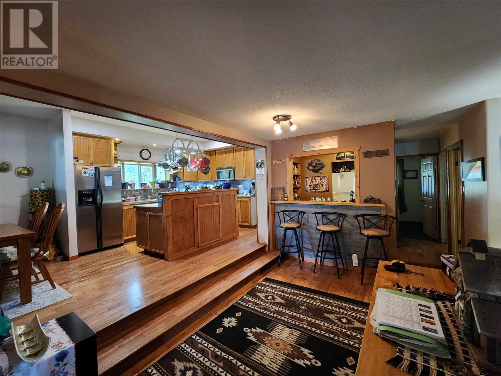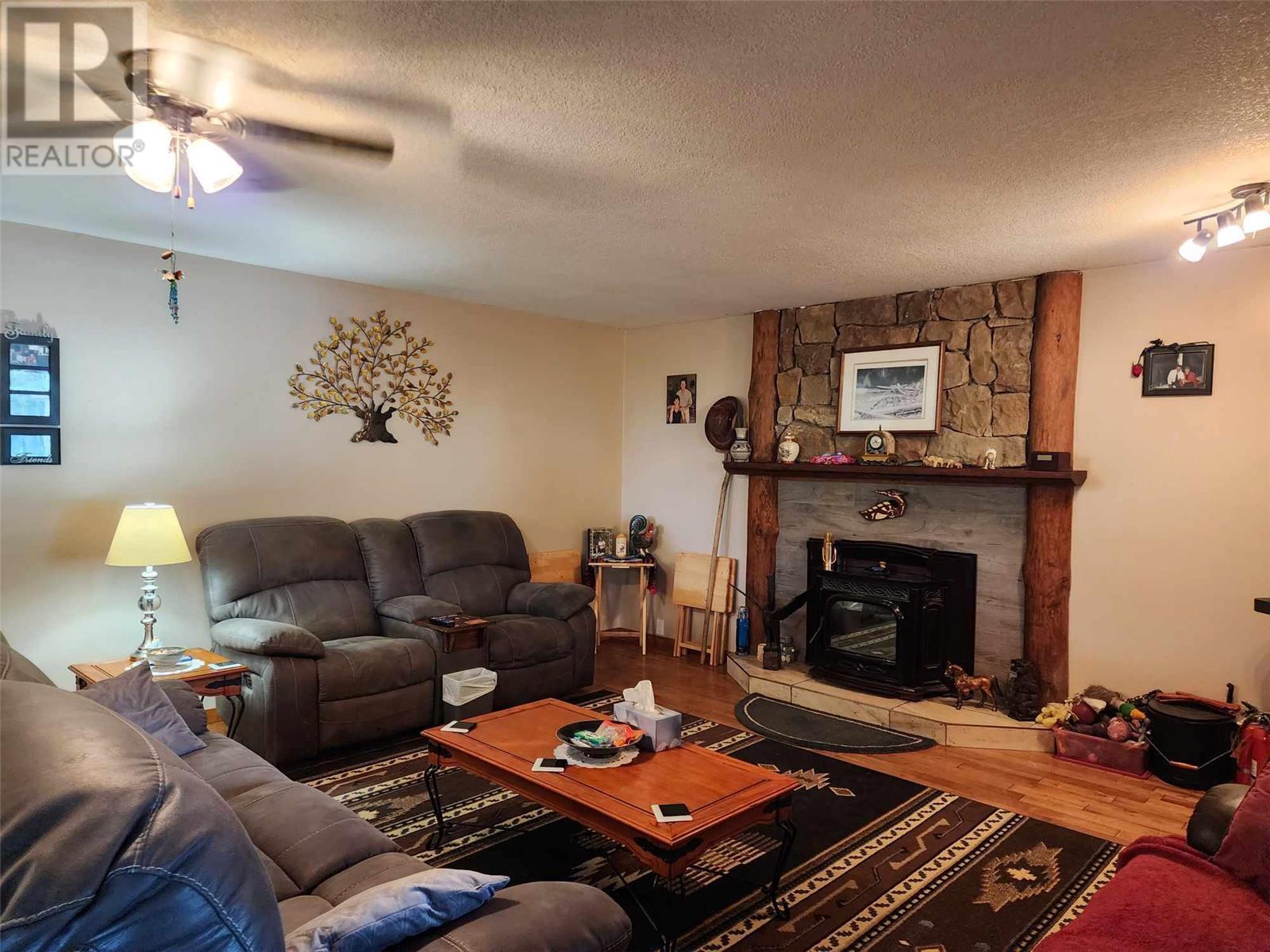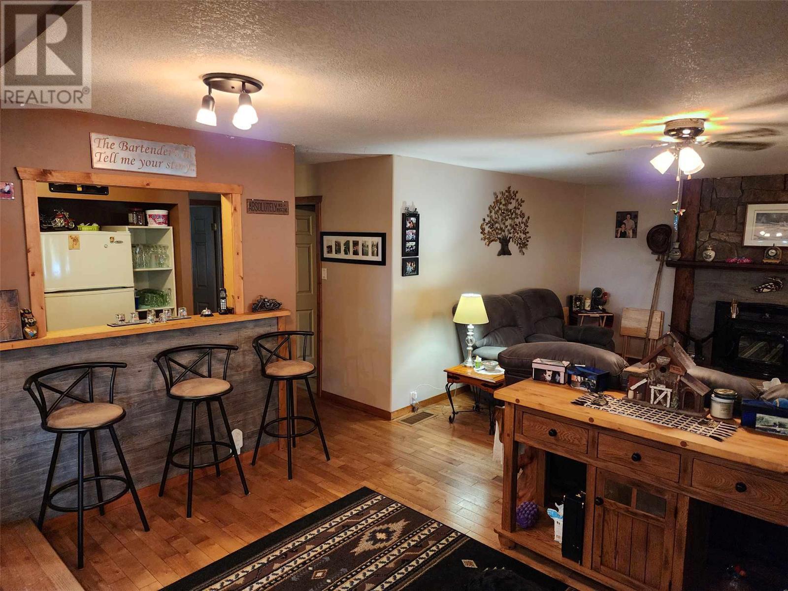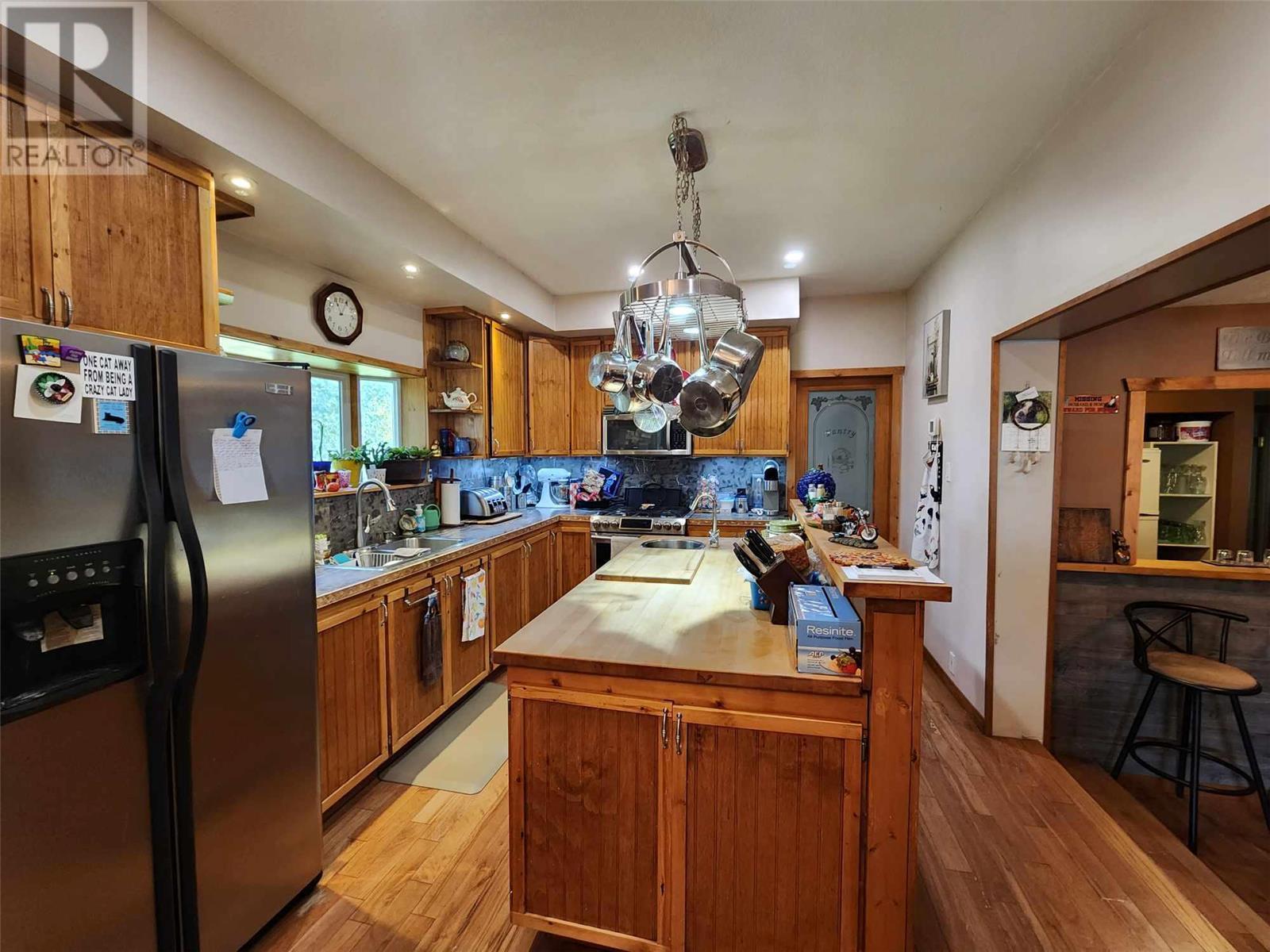 5 acres of level land awaiting your dream life! Lovely 3 bedroom 2 full bath home featuring open floor plan, spacious kitchen with loads of cupboards & a fantastic island with break bar, dining room has sliding glass door to large covered sundeck for entertaining guests! Livingroom has pellet insert in fireplace to enjoy cozy evenings, wet bar off living room to keep your guest hydrated! Walk in pantry off kitchen features loads of cupboards for canning etc. Laundry room beyond pantry also has several shelves for storage. Master bedroom on upper floor is perfect for romantic evenings complete with corner jet tub & gas fireplace. Sliding glass doors lead to enclosed deck to enjoy the views. Attached garage doubles as man cave with gas fireplace. 30' x 30' detached workshop is wired 220 plus has wood stove & gas heater. Insulated chicken coop on concrete and has electrical outlets, property mostly fenced & cross fenced for animals, large barn, pole barn for hay or covered RV storage. (id:22211)
