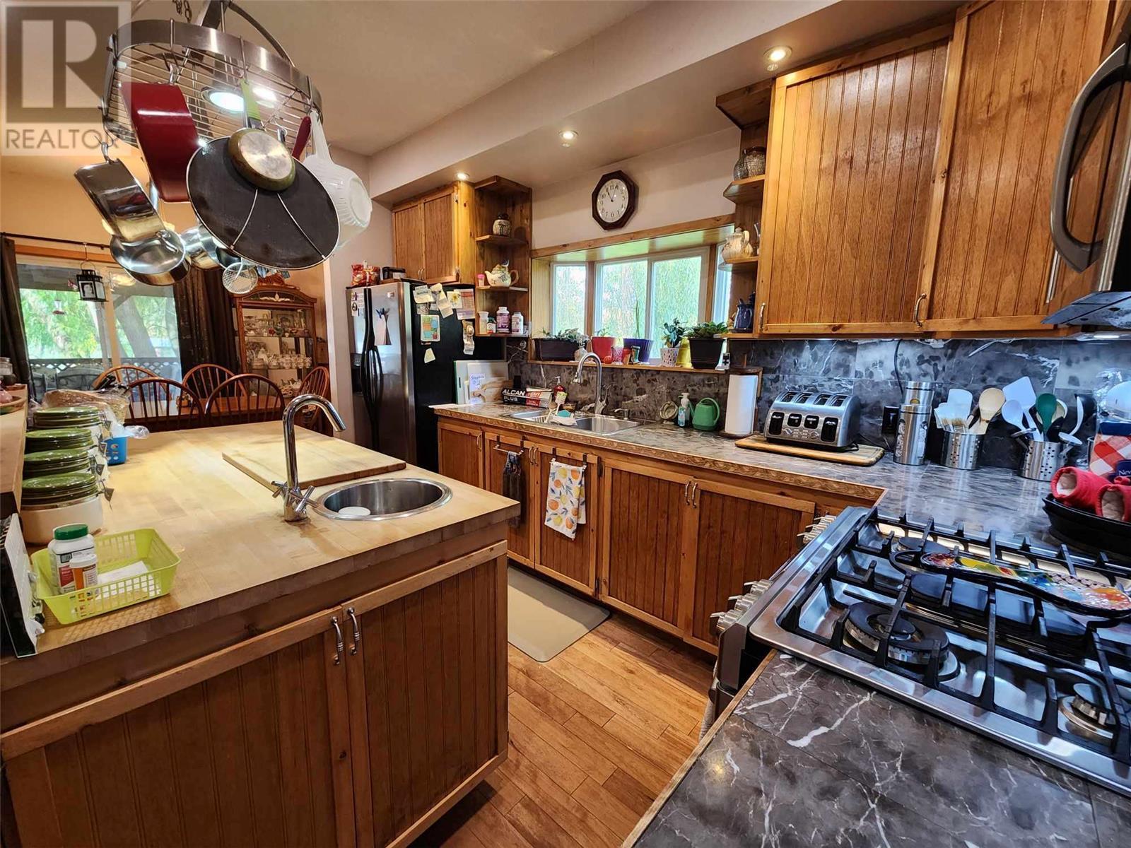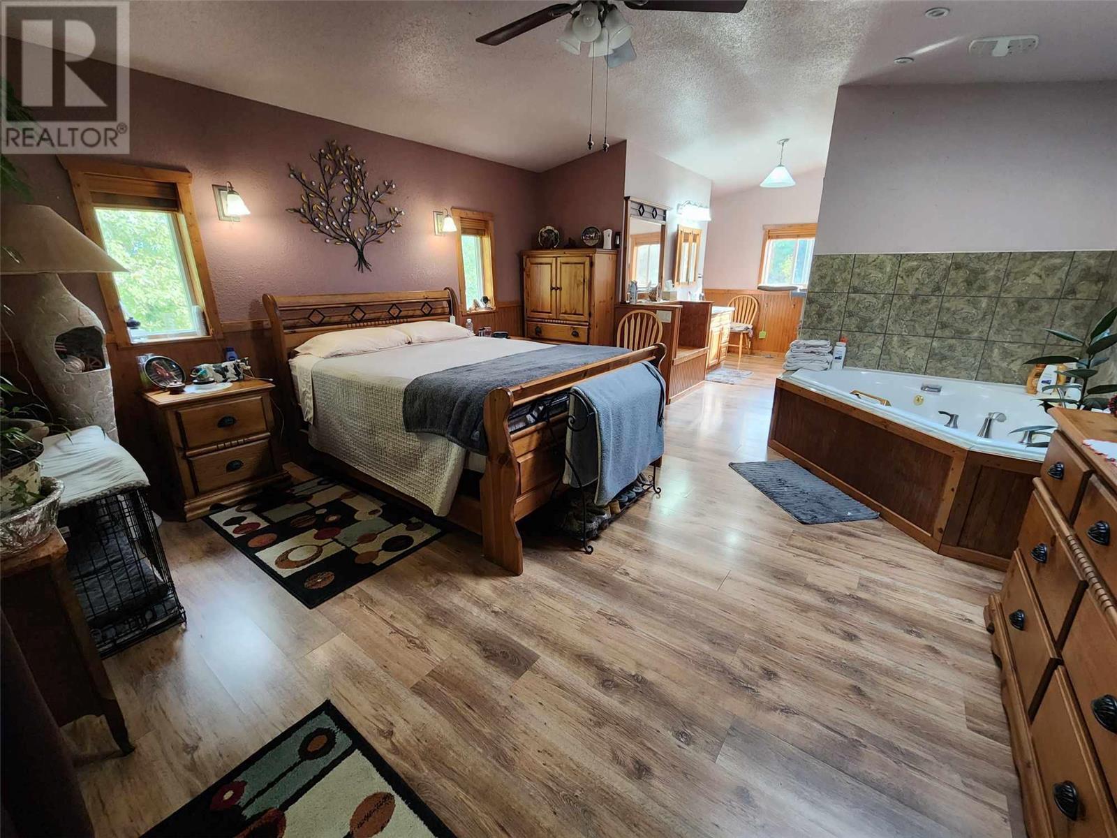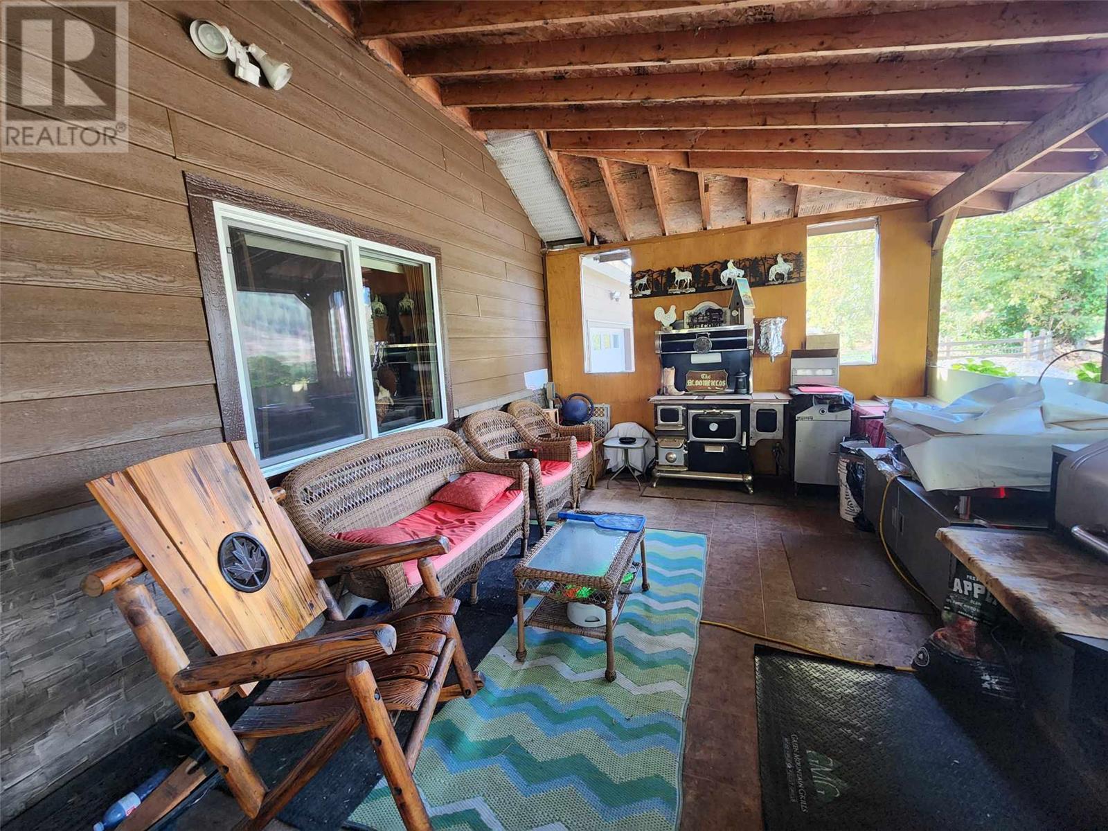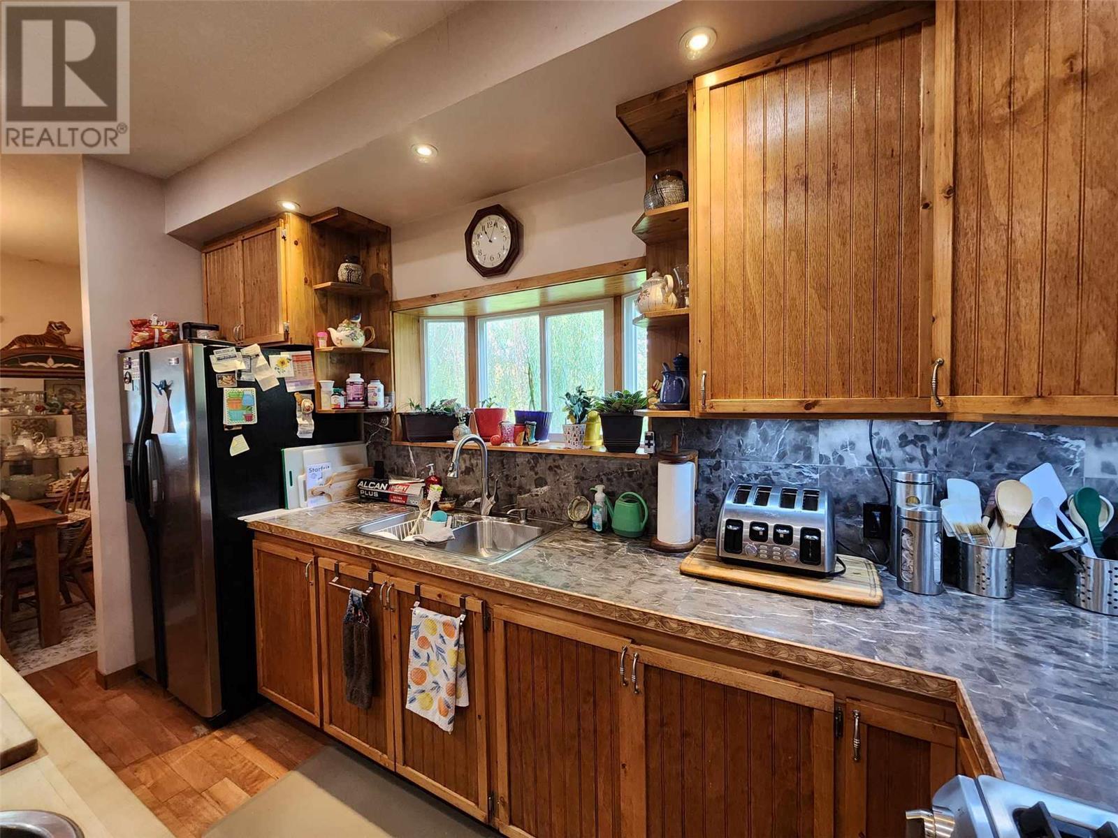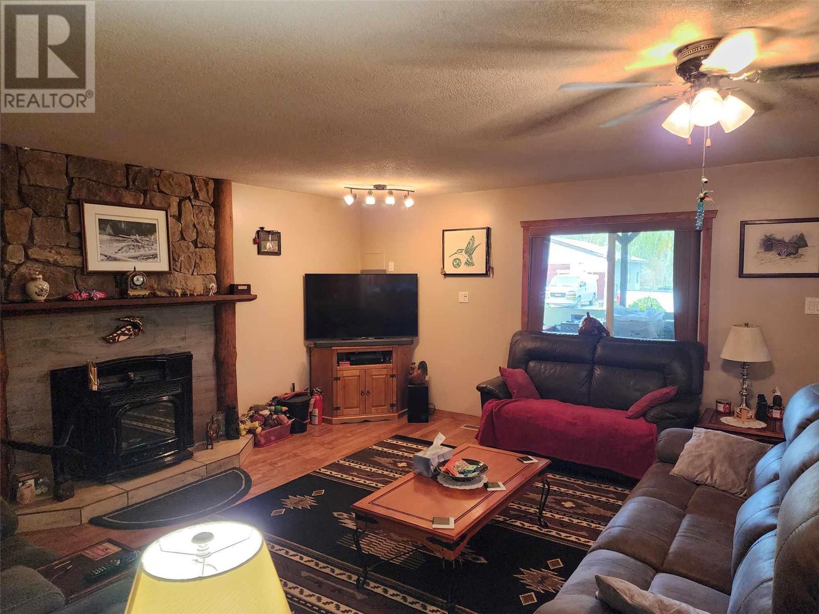 5 acres of level land awaiting your dream life! Lovely 3 bedroom 2 full bath home featuring open floor plan, spacious kitchen with loads of cupboards & a fantastic island with break bar, dining room has sliding glass door to large covered sundeck for entertaining guests! Livingroom has pellet insert in fireplace to enjoy cozy evenings, wet bar off living room to keep your guest hydrated! Walk in pantry off kitchen features loads of cupboards for canning etc. Laundry room beyond pantry also has several shelves for storage. Master bedroom on upper floor is perfect for romantic evenings complete with corner jet tub & gas fireplace. Sliding glass doors lead to enclosed deck to enjoy the views. Attached garage doubles as man cave with gas fireplace. 30' x 30' detached workshop is wired 220 plus has wood stove & gas heater. Insulated chicken coop on concrete and has electrical outlets, property mostly fenced & cross fenced for animals, large barn, pole barn for hay or covered RV storage. (id:22211)