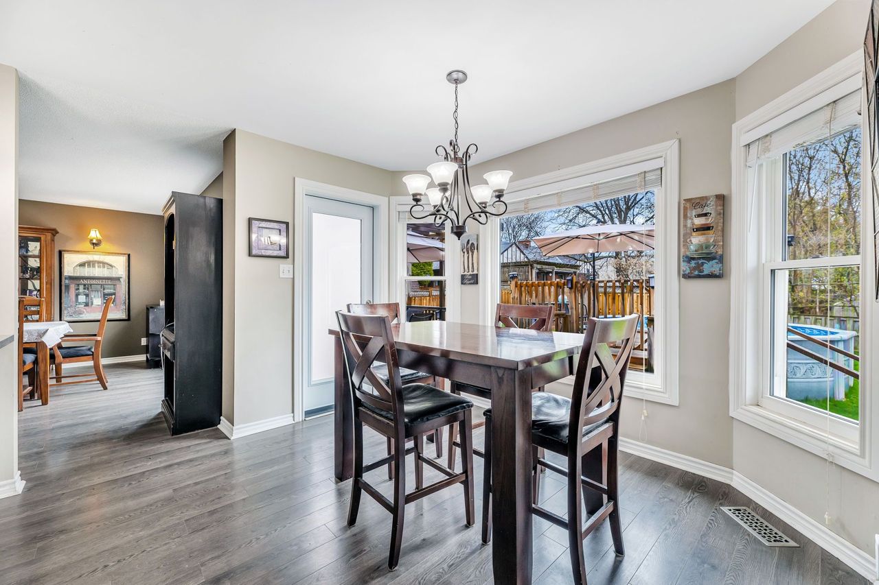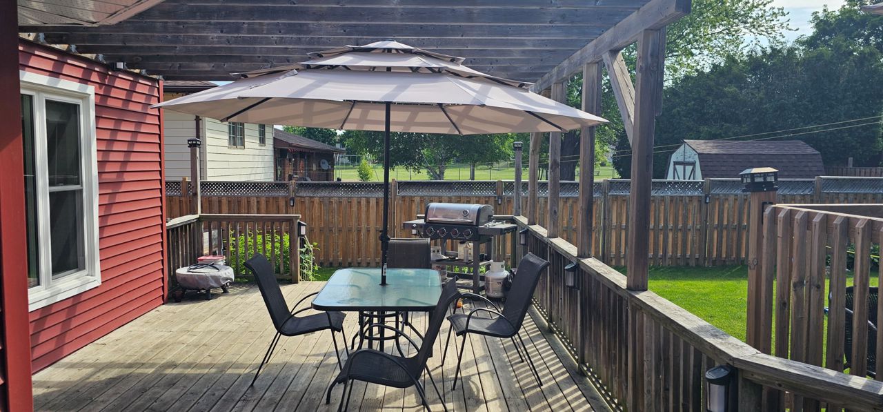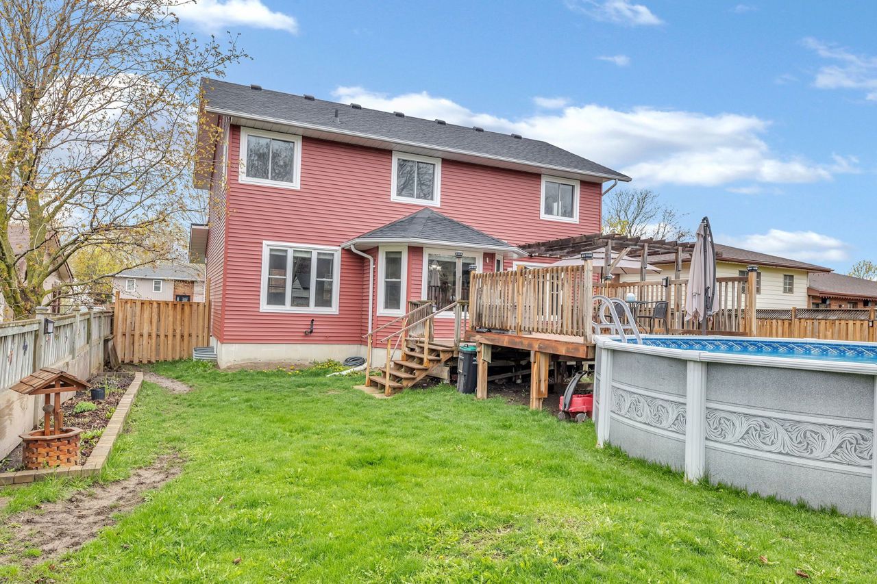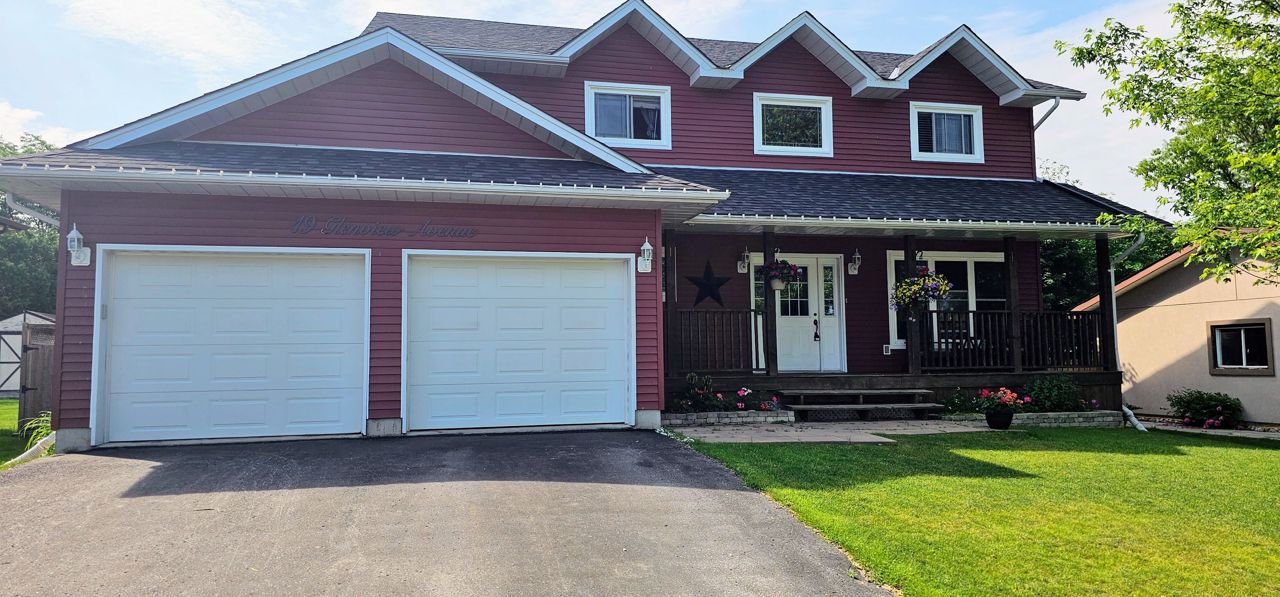 在宁静的Elmvale村庄,一条安静的街道上,坐落着一座定制建造的两层住宅,占地广阔。这座住宅拥有总计5间卧室和4间浴室,设有用餐厨房和全装修地下室。从宽敞的有顶前廊向新邻居问好。夏日里,您可以在宽敞的后甲板上放松,或在您的地上泳池中休憩。私密的后院朝南,充分吸收自然阳光。从家门口即可踏上全地形车或雪地摩托的步道。厨房和地板于2022年更新,同年全区域窗户换新。步行即可到达Elmvale市中心、公园、购物区和竞技场。驱车不远便可抵达乔治亚湾的原始海岸。