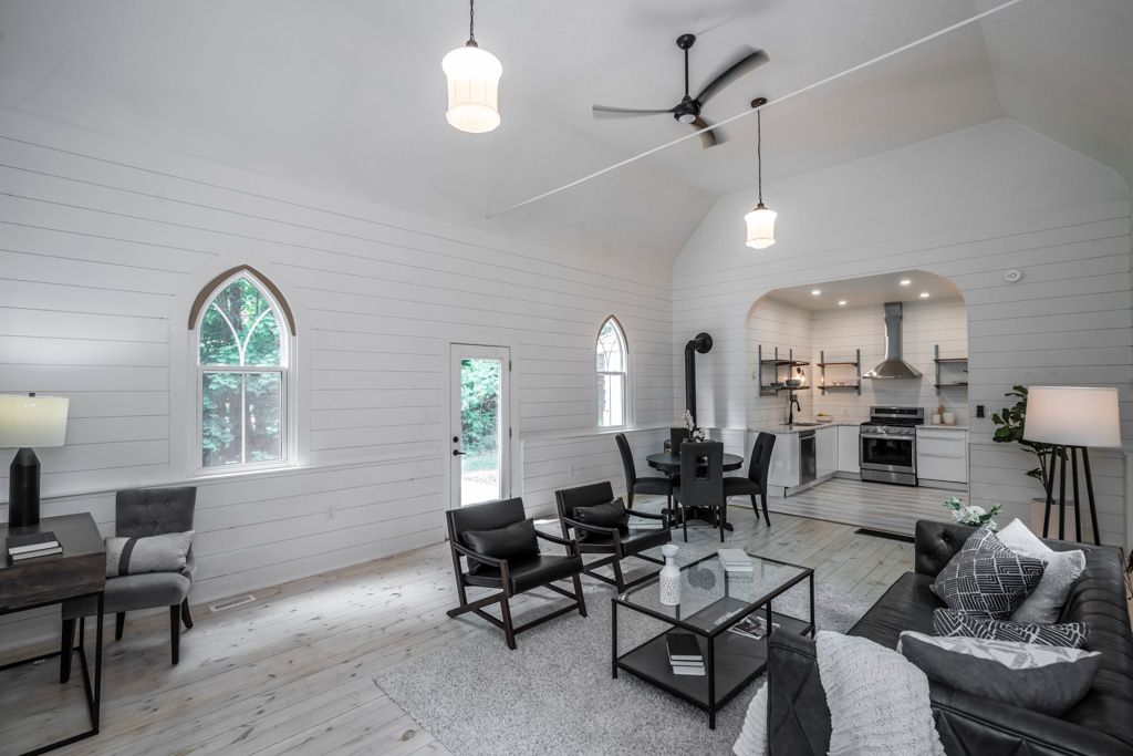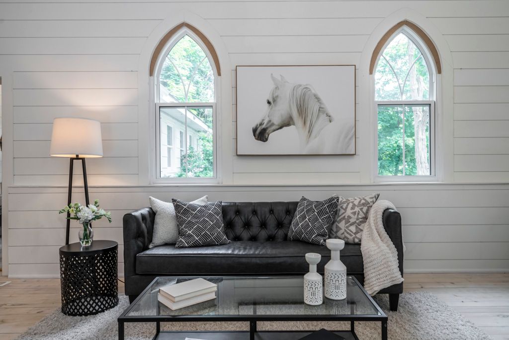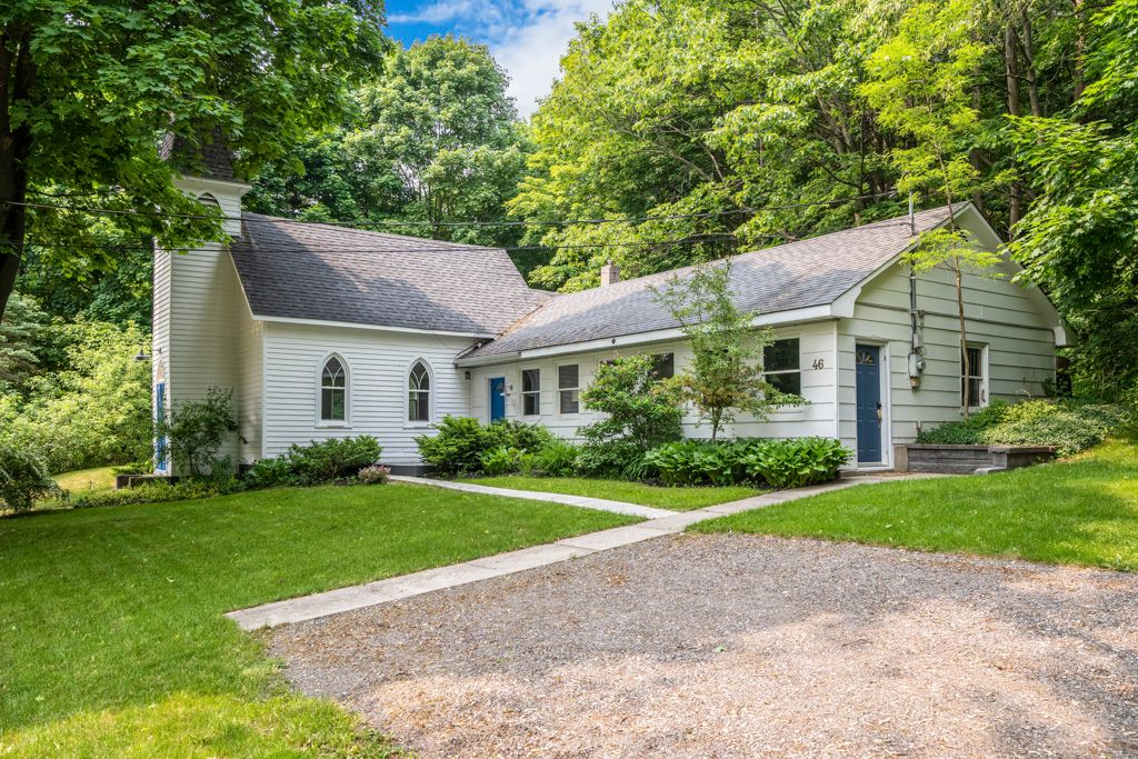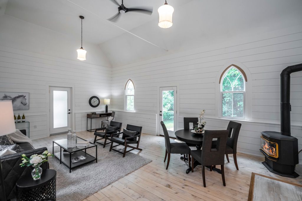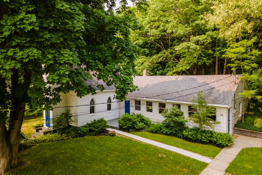 Past and present meet in this beautiful loft-style residence in sought- after Midhurst. Truly unique, his beautifully restored and renovated late 19th century church offers a one bedroom, one bath, soaring open concept living space. Garden doors open to a private patio area. There is plenty of scope for expansion as well with 580 ft.² of space to create your own work at home office. Located close to shops and tennis courts and the pharmacy/convenience store. Great investment property - lease the apartment and the storage areas separately. Stylish living in a country setting with city conveniences just minutes away.