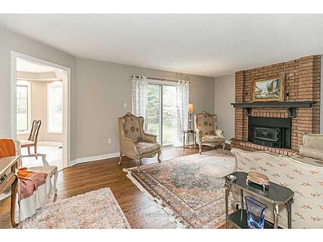 Internet Remarks: Original owner, well cared for all brick 4 bedroom, triple garage, in popular Stonegate treed private estate neighborhood. 0.62 acre private treed pie shaped lot, 248' deep! Renovated spacious kitchen, new granite counters & ceramic tiles, with stainless steel appliances, overlooks the unistone patios, gardens and next to the family room & fireplace. The baths have also been renovated. Attractive detailing with hardwood & ceramic flooring, French doors, pot lights, repainted, remodelled powder room. Impressive entrance foyer frames the beautiful circular staircase with vaulted ceiling office to the right and dining room to the left. Large master with walk-in closet, 5 piece ensuite, granite, tub & separate shower. High ceiling finished basement, open plan rec room, 2 bedrooms, and guest bath. Pride of ownership in a family neighborhood just minutes to Barrie & amenities. , AreaSqFt: 3121.53, Finished AreaSqFt: 4467.02, Finished AreaSqM: 415, Property Size: 0.5-.99