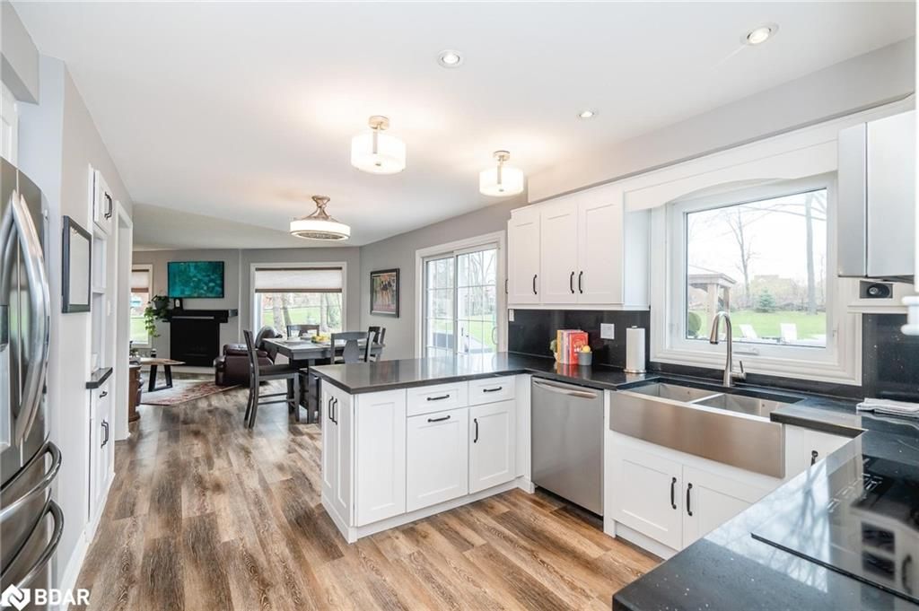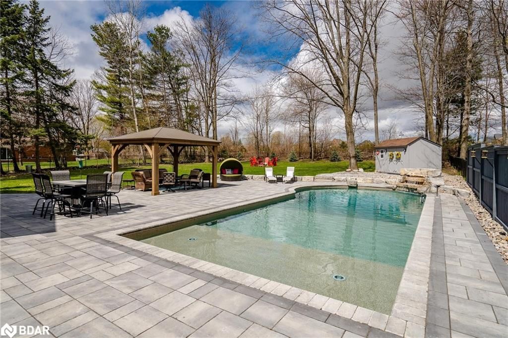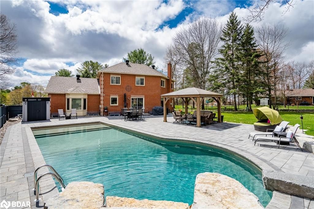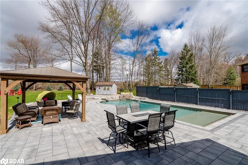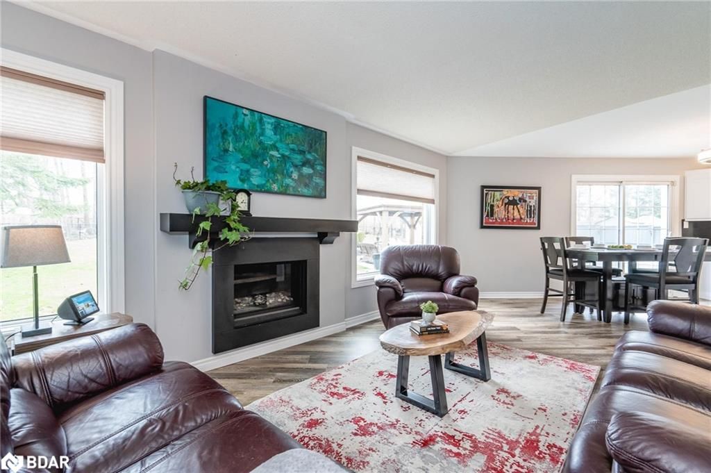 Kempenfelt windows installed in 2016: 50 year shingles 2020: Furnace, air conditioner, hot water tank and water softener 2021. Kitchen is open to main floor family room featuring new gas fireplace, loads of windows and walk out to fenced backyard, gazebo, pool house and 2 storage sheds plus quiet walking trails behind.