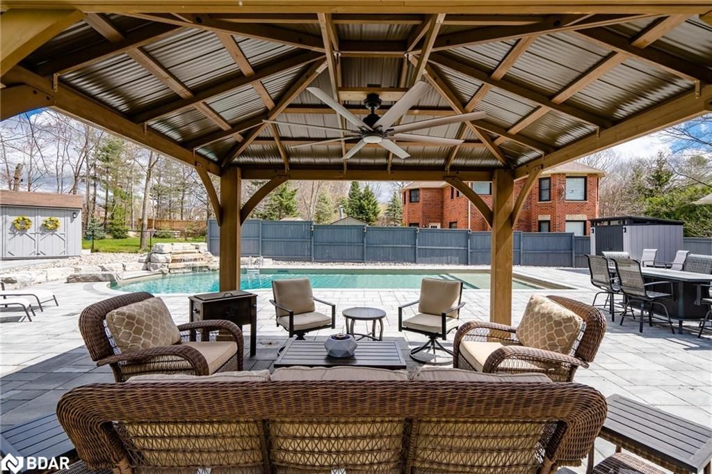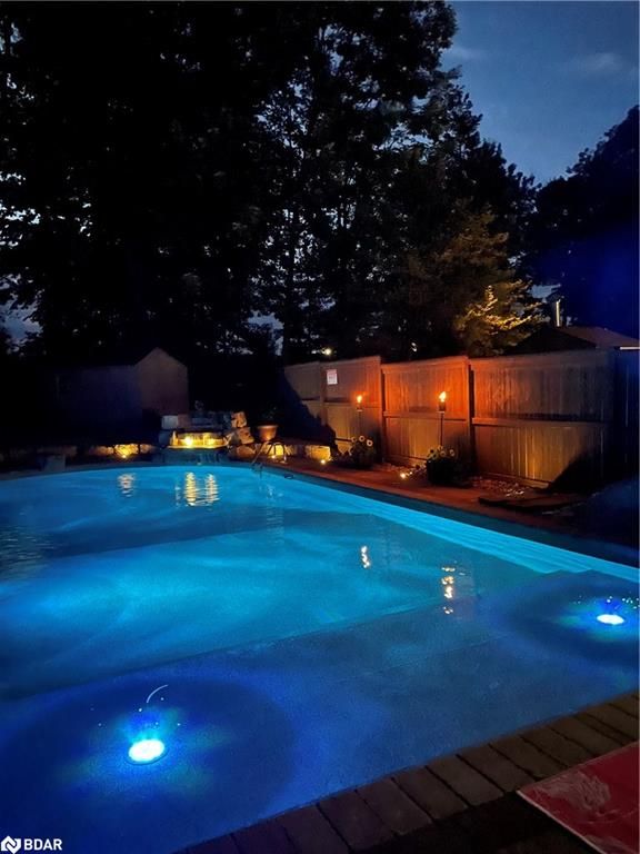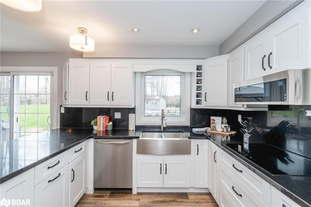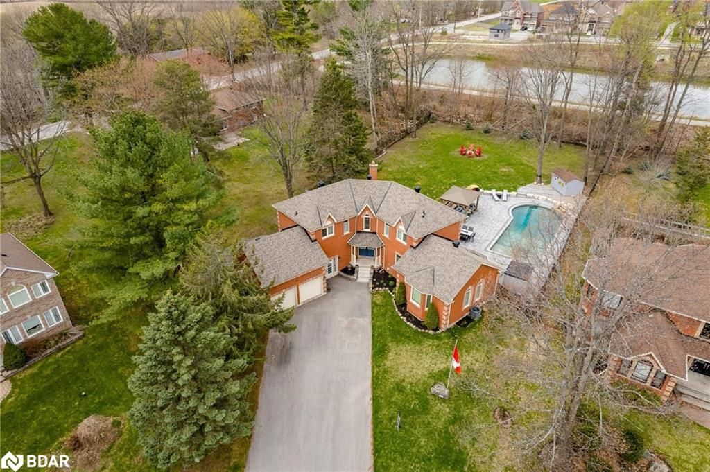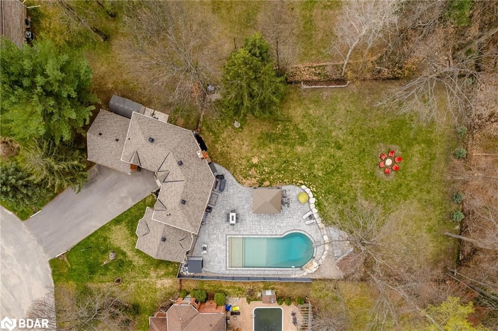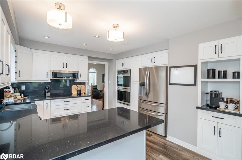Kempenfelt windows installed in 2016: 50 year shingles 2020: Furnace, air conditioner, hot water tank and water softener 2021. Kitchen is open to main floor family room featuring new gas fireplace, loads of windows and walk out to fenced backyard, gazebo, pool house and 2 storage sheds plus quiet walking trails behind.