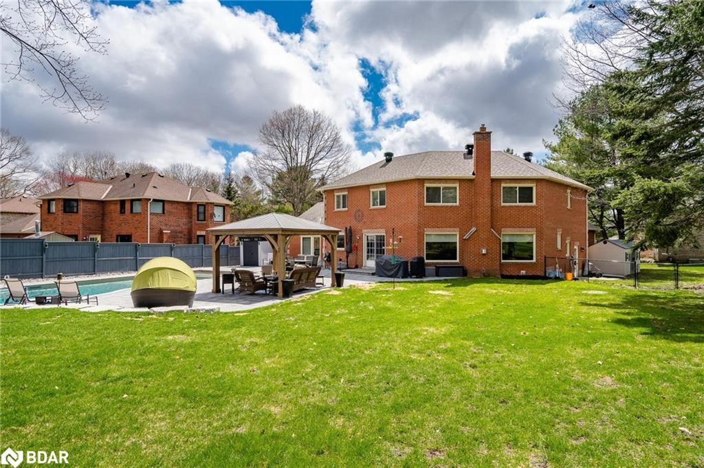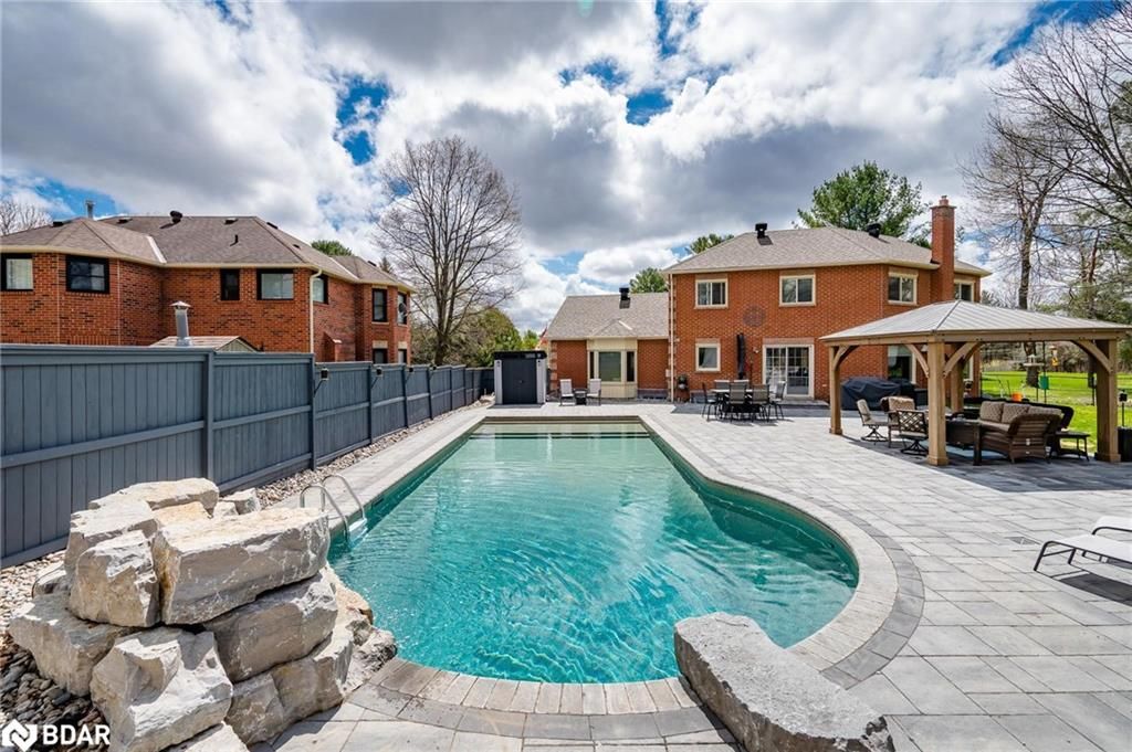 Executive home situated on beautifully landscaped, 1/2 acre lot in prestigious Stonegate, Springwater. Fully fenced backyard boasts new 20x46 salt water pool with extended shallow end, waterfalls, lights and safety cover.