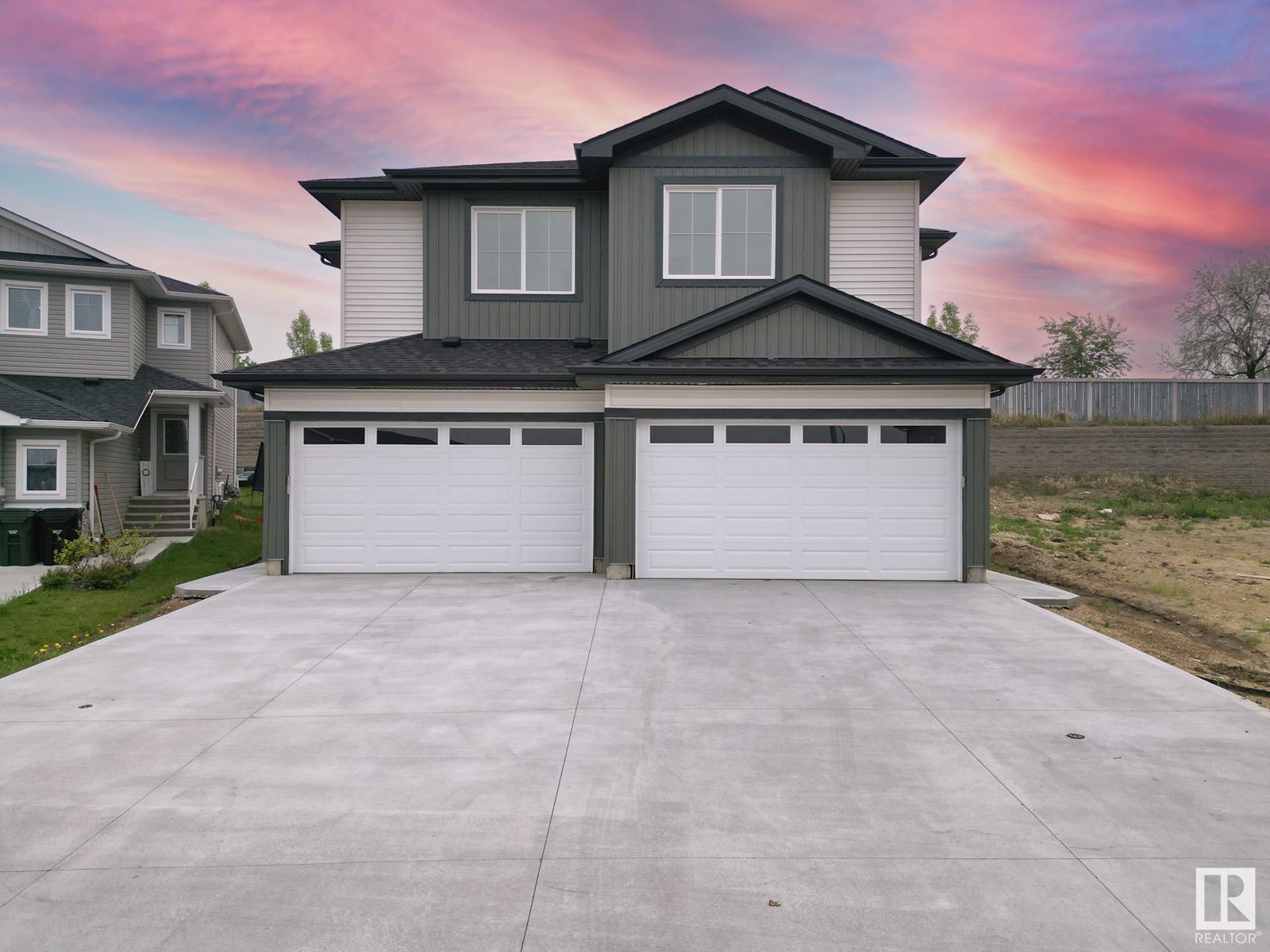 Welcome to this exquisite brand new half duplex in the desirable community of Spruce Grove. Boasting over 1700 sqft of luxurious living space, this 2-storey home is sure to impress. The main floor features a spacious den, perfect for a home office or study. Upstairs, you'll find 3 generously sized bedrooms, bonus room and a laundry room - providing ample space and living for the whole family. With a separate entrance, this home also offers the potential for a 1-bedroom legal suite, offering endless possibilities for extended family, guests, or rental income. The high-end finishings throughout the home exude elegance and sophistication. From the sleek flooring to the modern fixtures, no detail has been overlooked. The functional layout ensures seamless flow between the living areas, creating an inviting atmosphere for gatherings and everyday living. To top it all off, you have the luxury of owning an oversized driveway and have no homes situated behind you. Don't miss out on this opportunity! (id:22211)