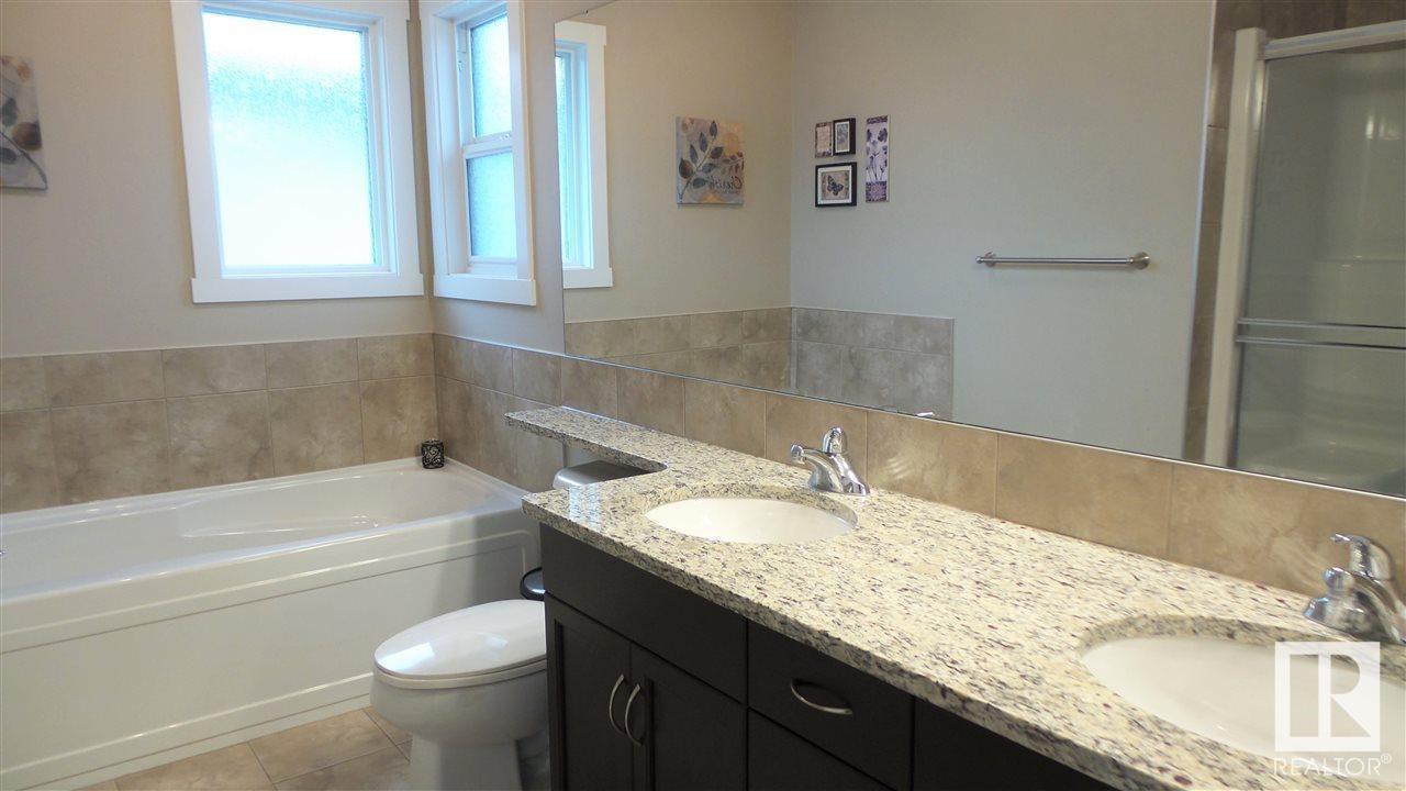 PRICE REDUCTION! Spectacular 1713sf 2 storied house with fully finished basement, attached dbl insulated&drywalled garage, landscaped, composite deck with gas BBQ line and fenced, located near the commercial areas in Spruce Grove. Built by Bedrock homes this well cared home has a kid friendly location with view of park + a lots of greenspace and miles of walking trails to walk the dog or go for a run. Upgraded home with maple hardwood floors, tiled baths & entry, huge granite Island + S/S appliances + gas fireplace in great room. Bright sunny home with 9 ceilings on main & 11 height in dining nook. Convenient walk through pantry and main floor laundry. Upstairs tech loft, granite vanities in baths & spacious master suite, walk-in closet, dbl vanity + dbl shower enclosure. Well thought out basement with media room, frosted glass pocket doors to den/gym with ensuite bathroom with wall hung vanity. You will love living here and raising your family with great access to all transit and shopping. (id:22211)
