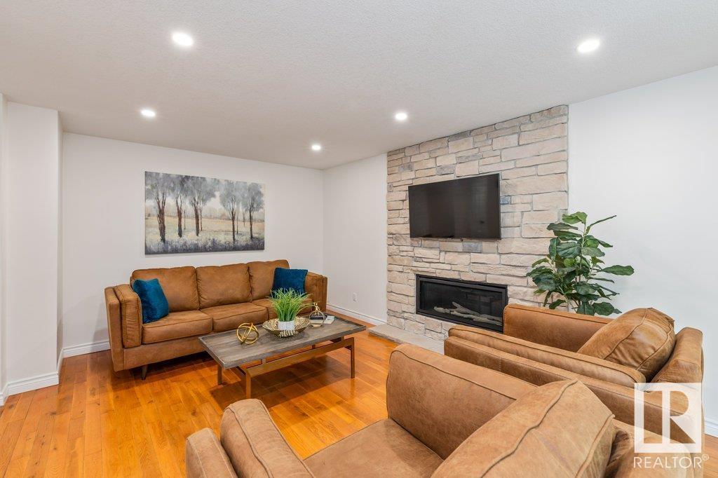 Simply impeccable! Located on a tree lined street in Woodlands, this 2 storey with 2197 sq ft + f/dev basement & double attached HEATED GARAGE is pristine! Pride of ownership clearly evident throughout! A large foyer invites you to a bright office space or sitting room. Formal dining on your right, just off the kitchen, perfect for family gatherings! The chef inspired kitchen features beautiful maple cabinetry complimented by ample counter space, SS appliances w/gas stove. A spacious breakfast nook w/garden door access to the beautiful f/fenced yard w/stone patio, firepit area & mature trees. Social living room features a fireplace & garden doors to the back.. Convenient laundry & half bath round off the main. Upstairs to the FOUR BEDROOMS & 4 pce bath. The primary bedroom offers a generous walk in closet & 4 pce ensuite. The family will LOVE the f/dev basement with large rec room, games area, den, 3 pce bath & storage space. Plenty of upgrades throughout including roof, windows, furnace, A/C & much more! (id:22211)