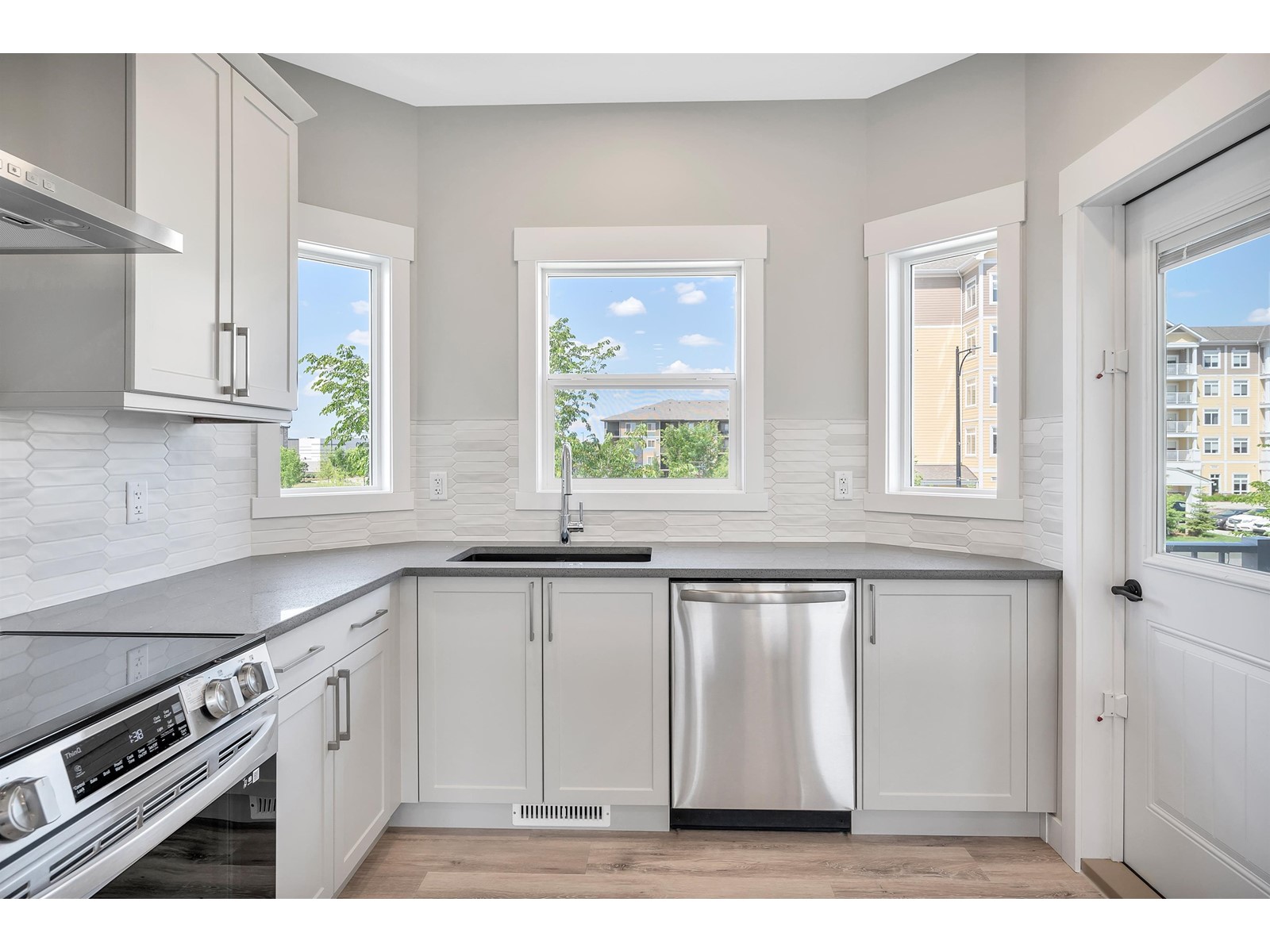 Valencia on the Park is a Peaceful, Prime Location close to Schools ( Lois E Hole), Walking Trails, Shopping (Costco, Independent, Home Sense, Lowes) and is even a Pet Friendly Complex! Enjoy this 2 Bedroom End Unit that has an attached Double Garage with Double Apron for Parking. Heated Floors, Vinyl Plank, Barn Doors, Quartz Counters & 2 Balconies including a fenced in yard. As you enter the home you have access to your Garage, Front Closet and a Flex Room great for Work Out or TV room. Upstairs the 9 ft Ceilings, Grand Kitchen, Island, Stainless Appliances, Extra Large Windows, Vinyl Flooring, Dining Room & Living Room make for a comfortable living area. Upstairs you will find 2 Master Suites; both have walk in closets as well as a 3 pc ensuite and 4 pc ensuite. Enjoy morning coffee on one deck and evening sunsets on the other. Low Condo Fees, Snow Removal, Grass cutting of Common areas are all wonderful features of Valencia on the Park! Welcome Home! (id:22211)