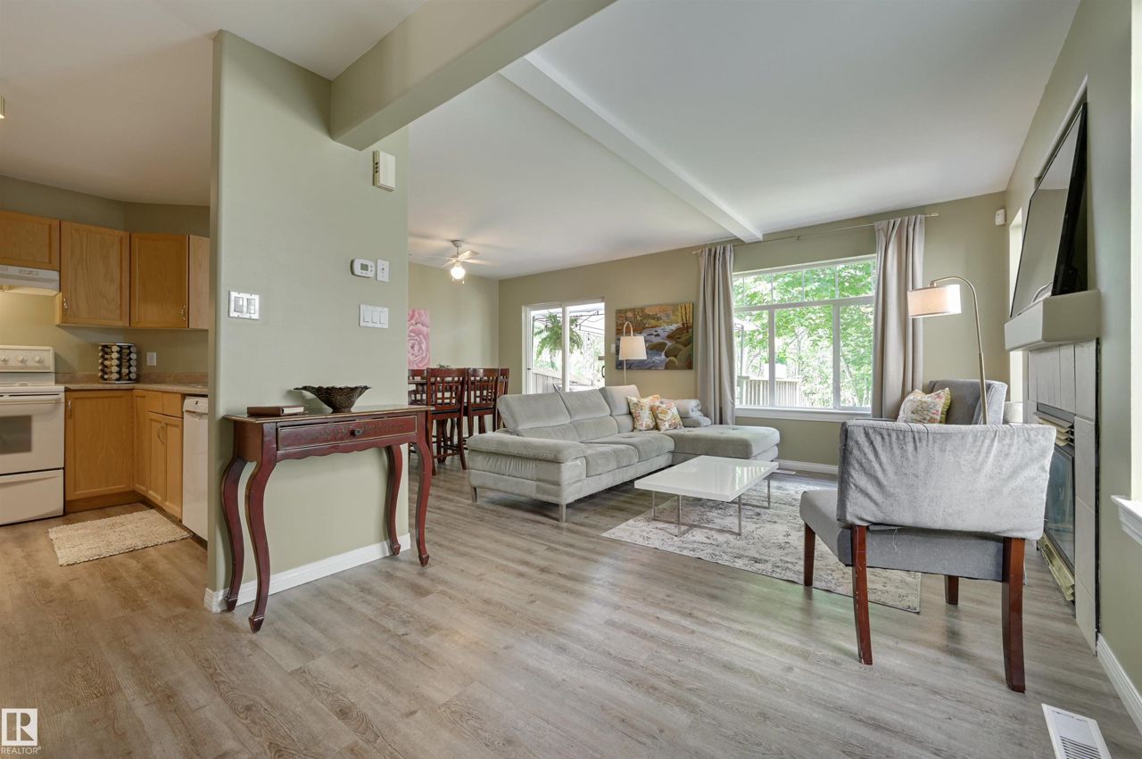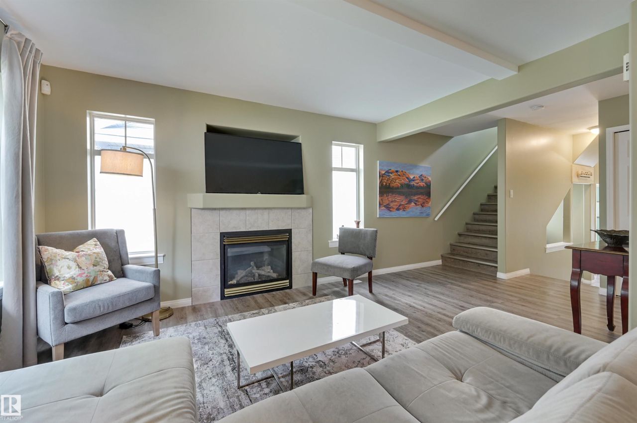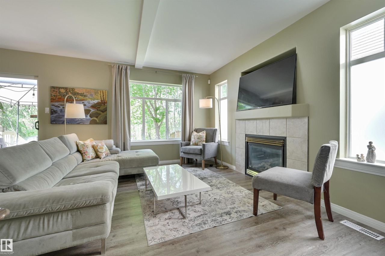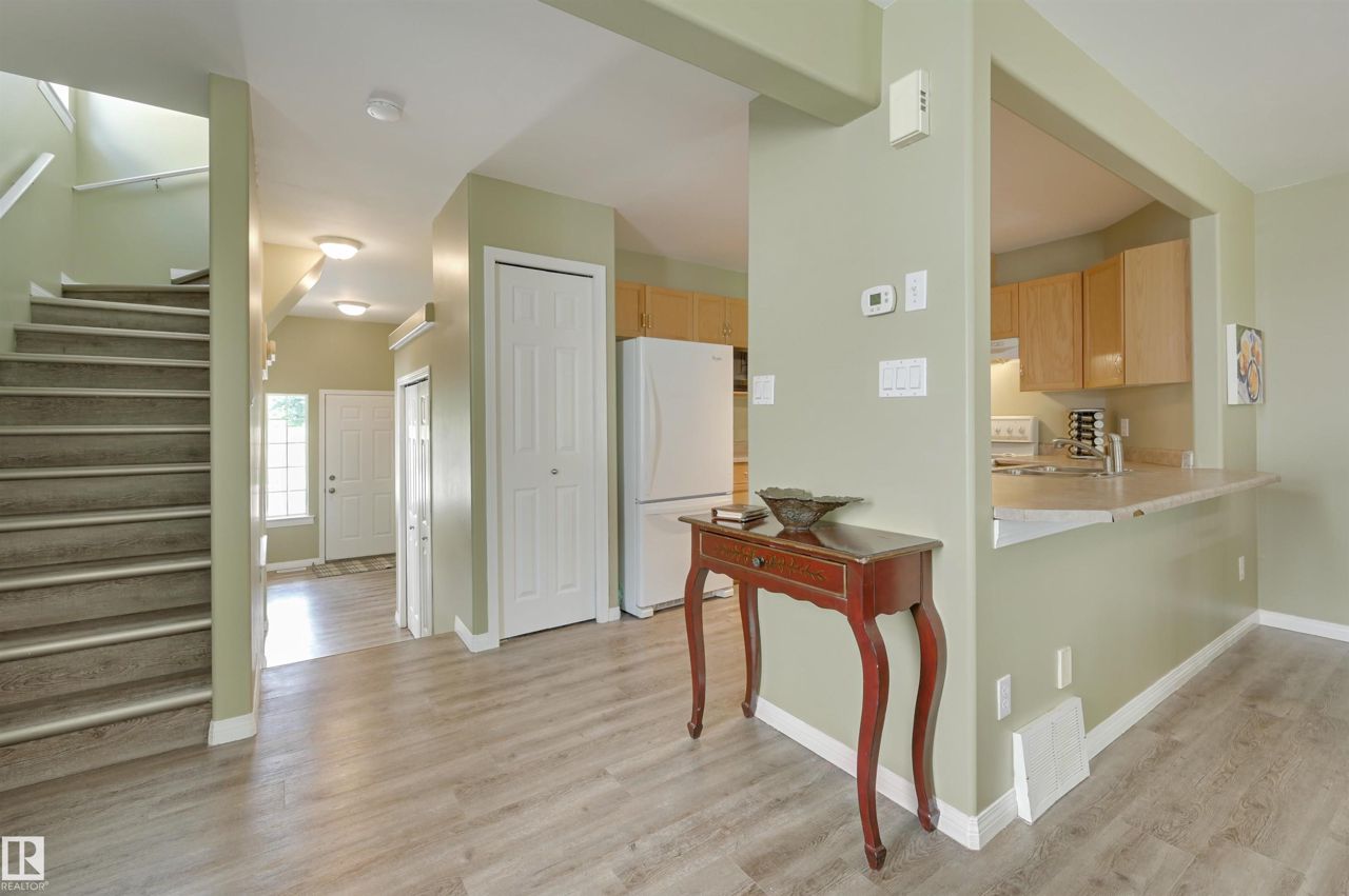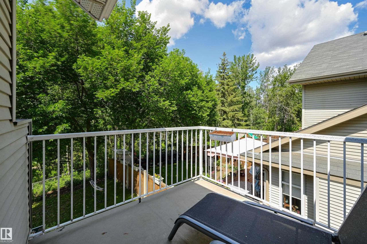 Welcome to your beautiful oasis located in Heritage Lakes. This Two Storey Half Duplex situated in Heritage Lane, features an open concept living room and dining room, with a gas fireplace to keep you cozy during those Fall/Winter evenings. The abundance of windows frame a breathtaking view, which is truly picturesque no matter the season. Patio doors lead to the backyard deck. The gallery style kitchen charms you with its oak cabinets and a breakfast bar. There is a half bathroom on the main floor. Upstairs offers a spacious primary bedroom with a balcony & a view which promises to delight! There are two additional good sized bedrooms upstairs, along with a full four piece bathroom. The unfinished basement is a canvas which is ready for you to put your stamp on it, and make it your own. The large fenced, landscaped backyard, backs onto gorgeous greenspace with beautiful mature trees and walking trails. The single attached garage completes this great home. Did we forget to mention the very low Condo Fees?