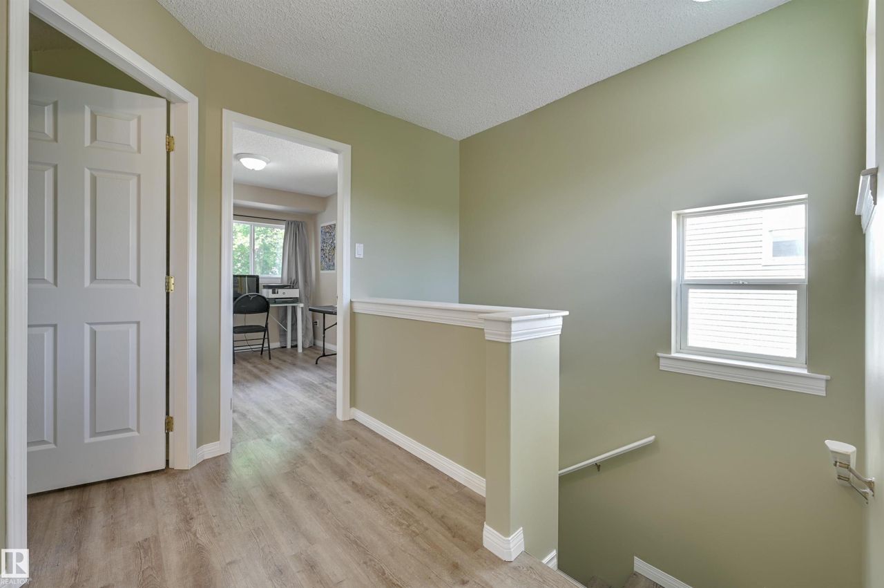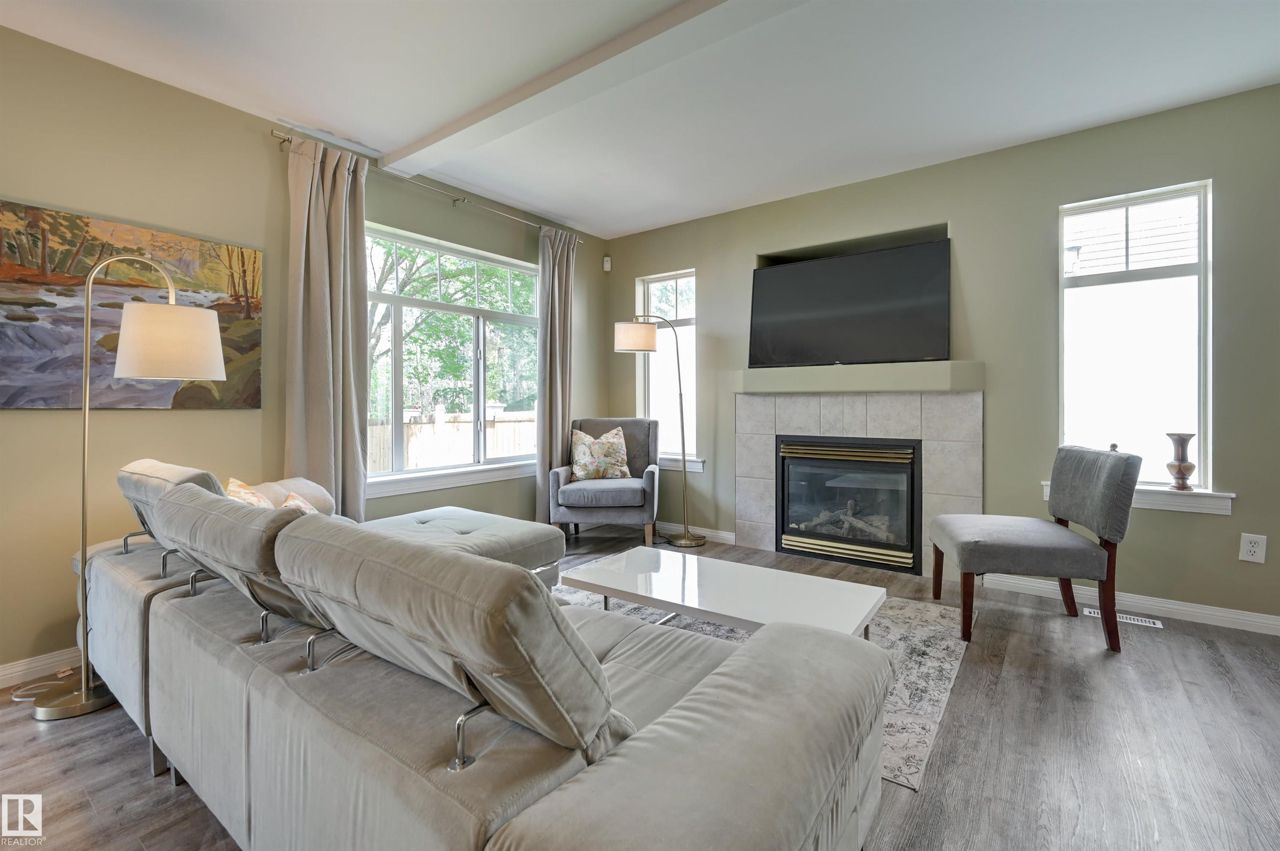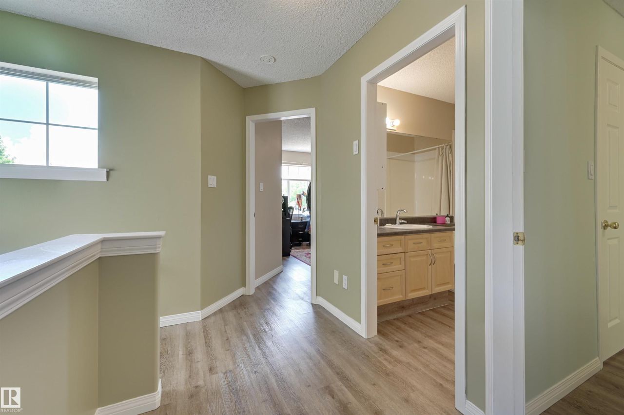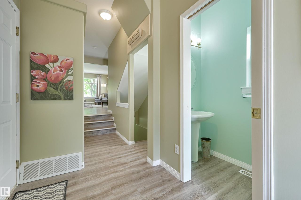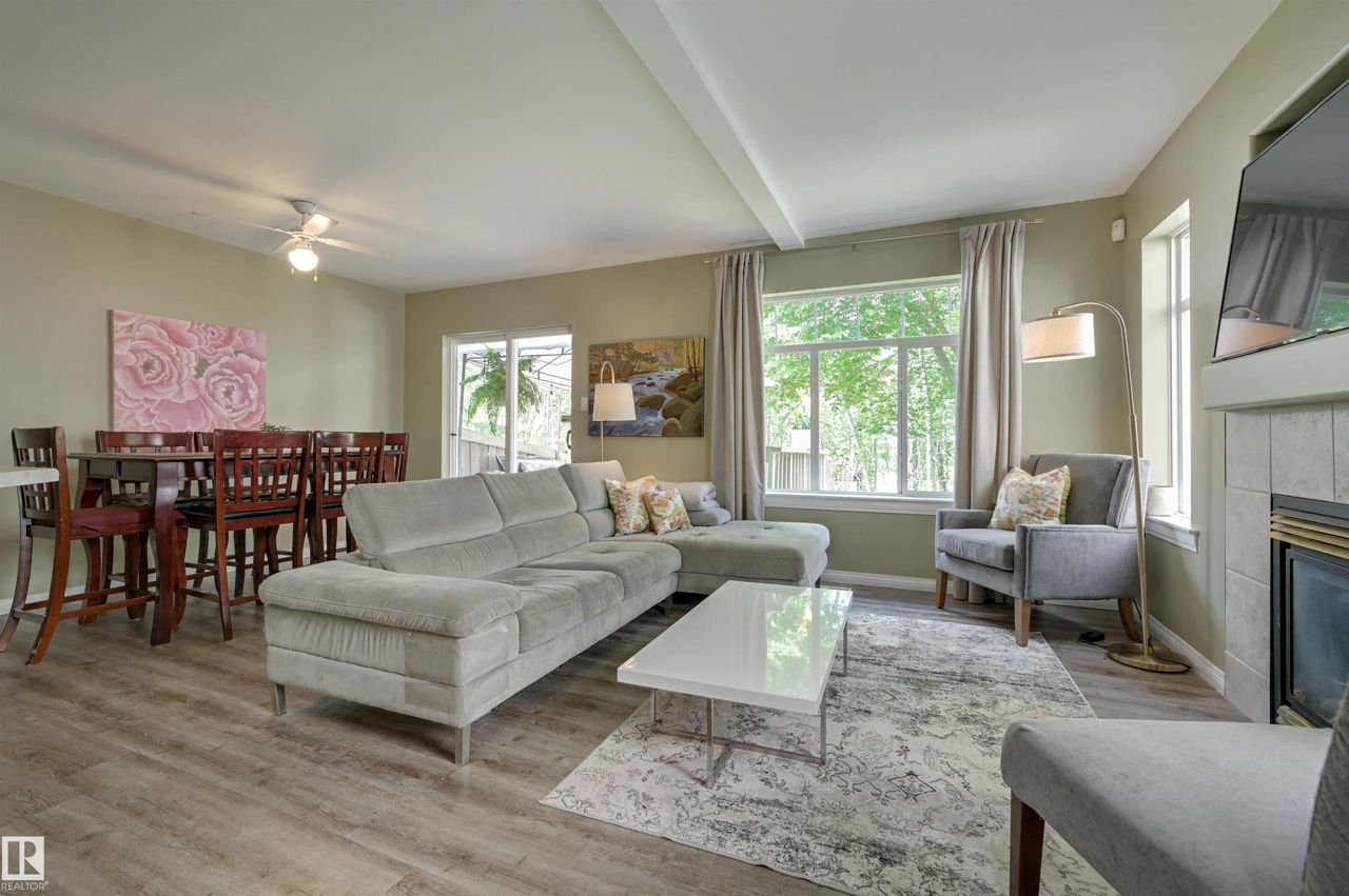 Welcome to your beautiful oasis located in Heritage Lakes. This Two Storey Half Duplex situated in Heritage Lane, features an open concept living room and dining room, with a gas fireplace to keep you cozy during those Fall/Winter evenings. The abundance of windows frame a breathtaking view, which is truly picturesque no matter the season. Patio doors lead to the backyard deck. The gallery style kitchen charms you with its oak cabinets and a breakfast bar. There is a half bathroom on the main floor. Upstairs offers a spacious primary bedroom with a balcony & a view which promises to delight! There are two additional good sized bedrooms upstairs, along with a full four piece bathroom. The unfinished basement is a canvas which is ready for you to put your stamp on it, and make it your own. The large fenced, landscaped backyard, backs onto gorgeous greenspace with beautiful mature trees and walking trails. The single attached garage completes this great home. Did we forget to mention the very low Condo Fees?