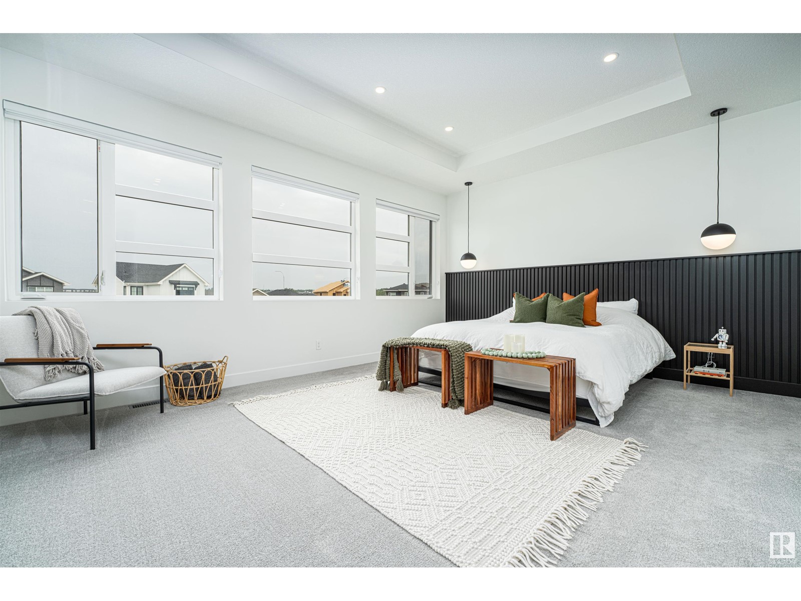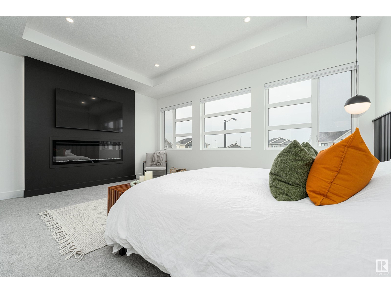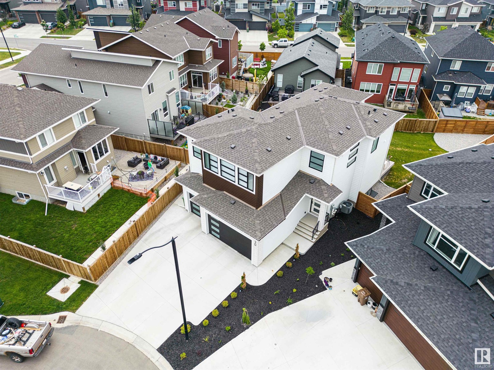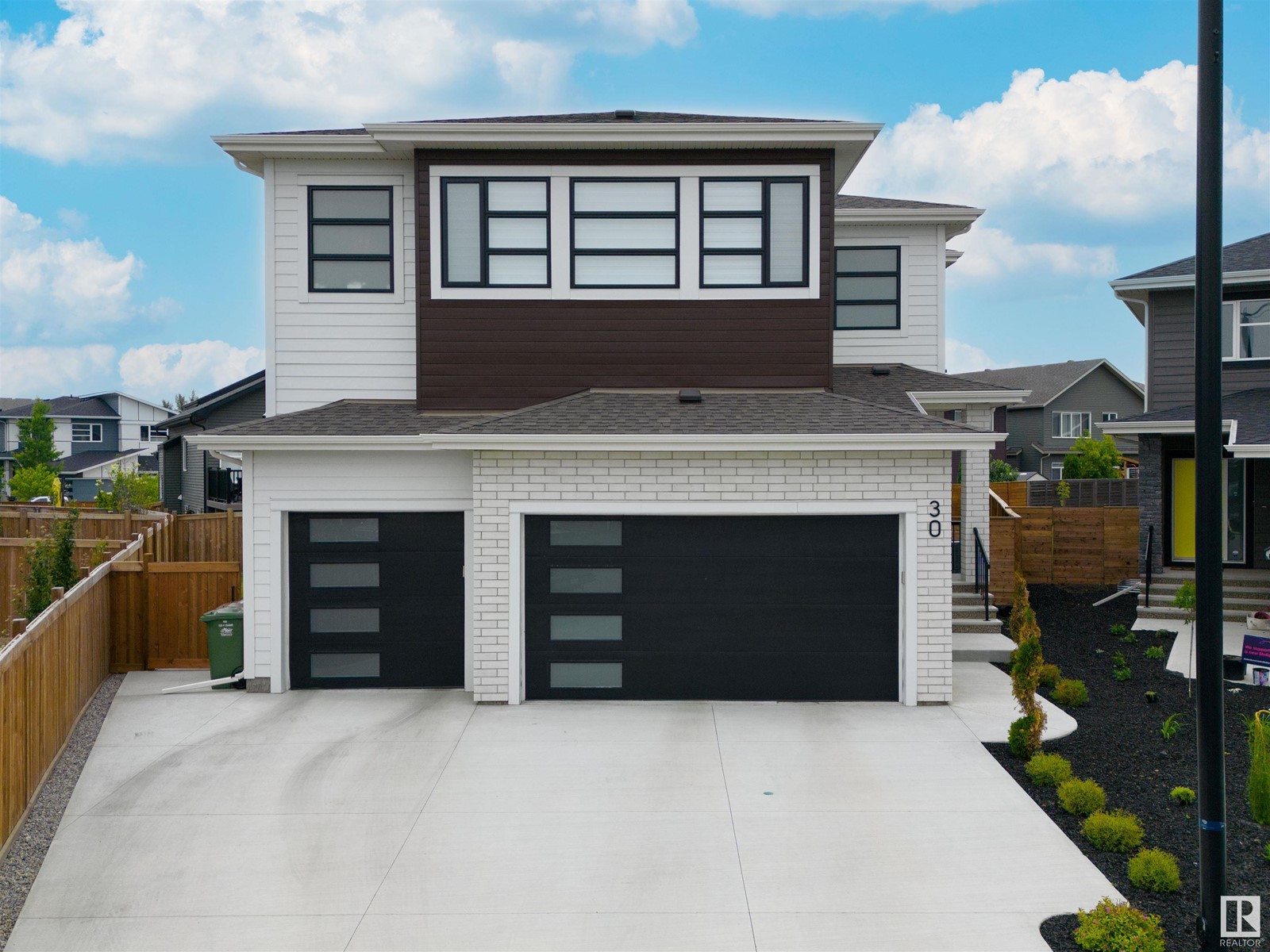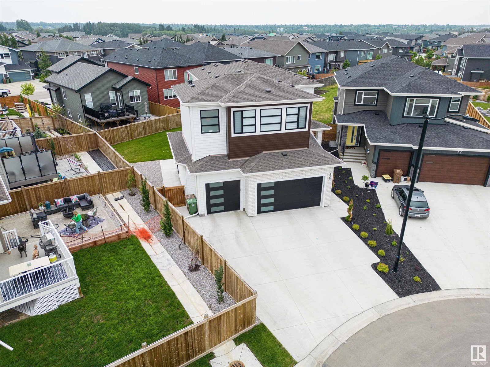 Step inside your new dream home. This 2503 SF custom-built home sits in a private quiet crescent located in the heart of Riverside St. Albert. Boasting an oversized heated triple car garage with upgraded finished concrete floor, a large backyard with complete landscaping and a maintenance free deck. Featuring: 10-foot main floor ceilings and 9-foot-vaulted second floor, wide vinyl plank flooring, pet friendly carpet underlay, feature walls with LED accent lighting, oversized linear fireplace, walk through pantry, quartz countertops, luxury Bosch appliances with a 36-inch gas range. As well as, custom cabinetry, shelving and closets, his and hers walk-in closets, modern iron railings, smart control home and A/C. This home has it all. The modern finishes and design are truly timeless. Immerse yourself in acres of lush forest, numerous walking trails, nearby amenities, and the beauty of Big Lake and Lois Hole Provincial Park, all within steps of this stunning home. (id:22211)