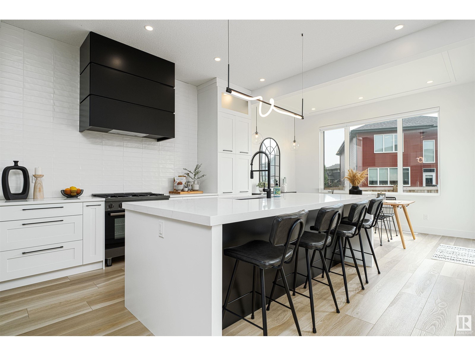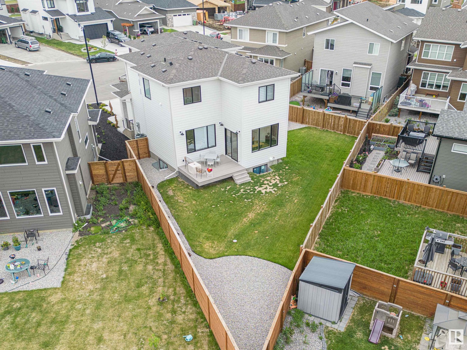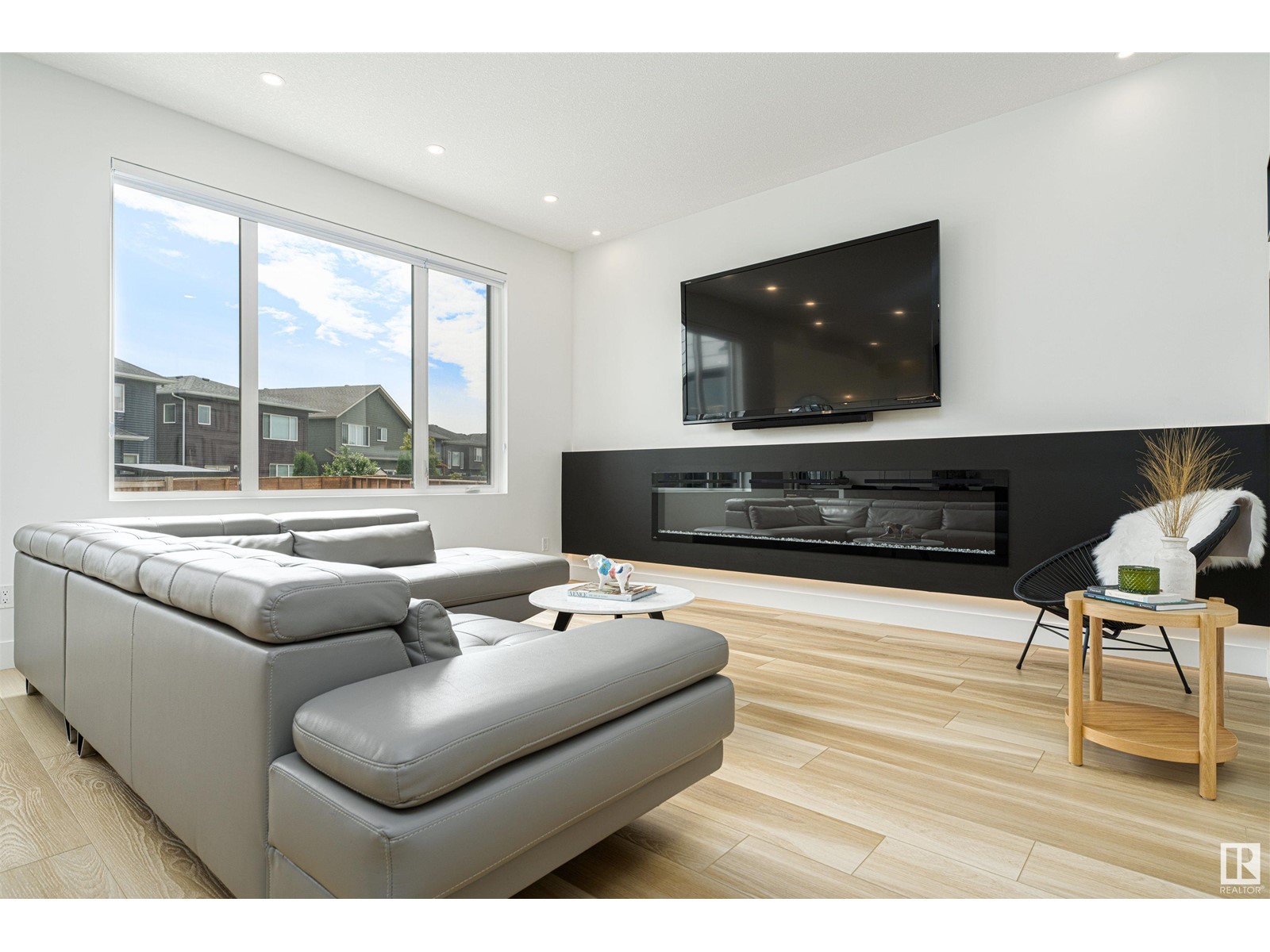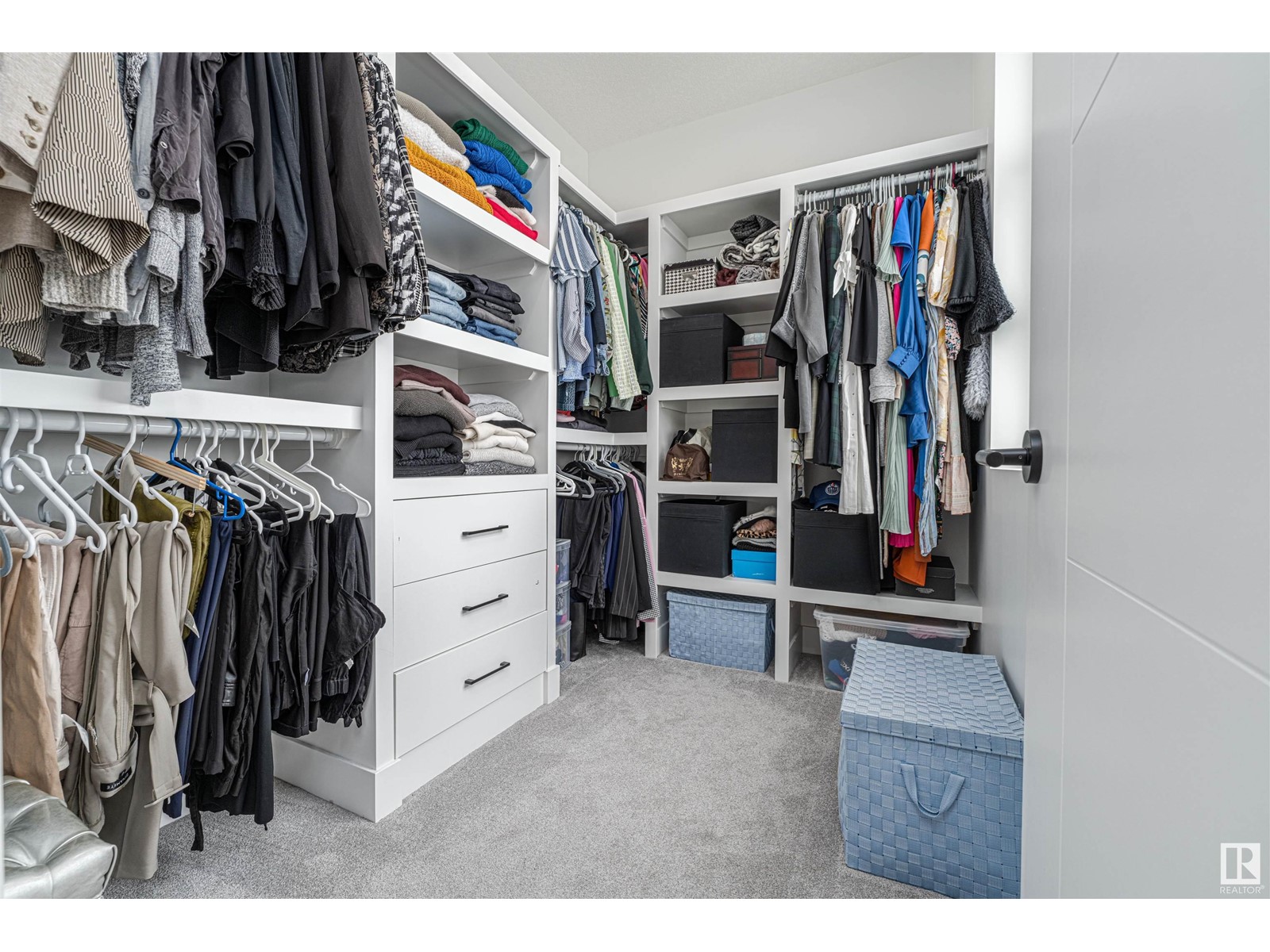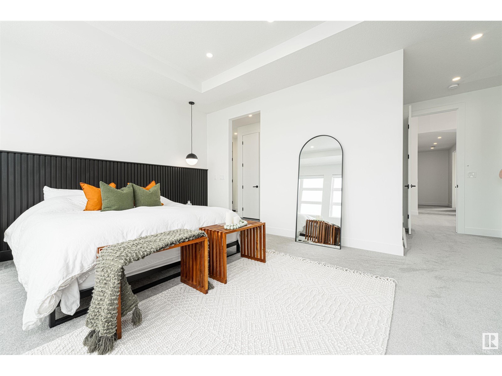 Step inside your new dream home. This 2503 SF custom-built home sits in a private quiet crescent located in the heart of Riverside St. Albert. Boasting an oversized heated triple car garage with upgraded finished concrete floor, a large backyard with complete landscaping and a maintenance free deck. Featuring: 10-foot main floor ceilings and 9-foot-vaulted second floor, wide vinyl plank flooring, pet friendly carpet underlay, feature walls with LED accent lighting, oversized linear fireplace, walk through pantry, quartz countertops, luxury Bosch appliances with a 36-inch gas range. As well as, custom cabinetry, shelving and closets, his and hers walk-in closets, modern iron railings, smart control home and A/C. This home has it all. The modern finishes and design are truly timeless. Immerse yourself in acres of lush forest, numerous walking trails, nearby amenities, and the beauty of Big Lake and Lois Hole Provincial Park, all within steps of this stunning home. (id:22211)