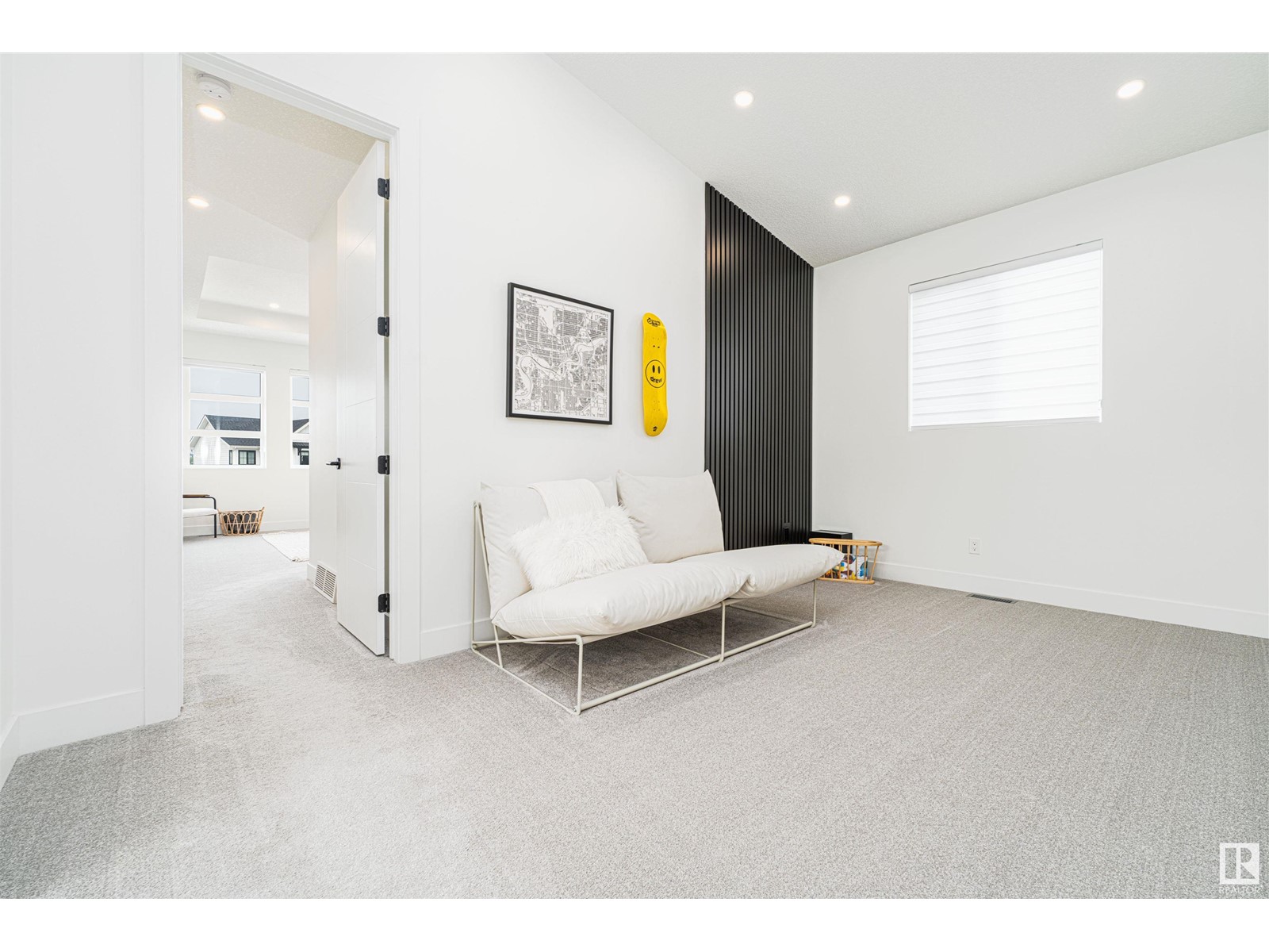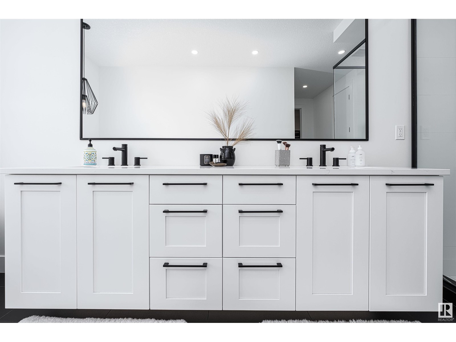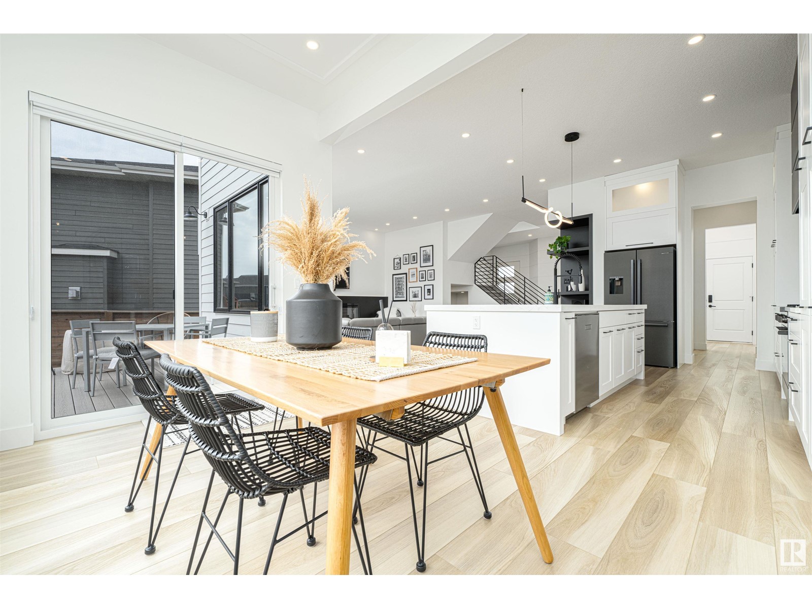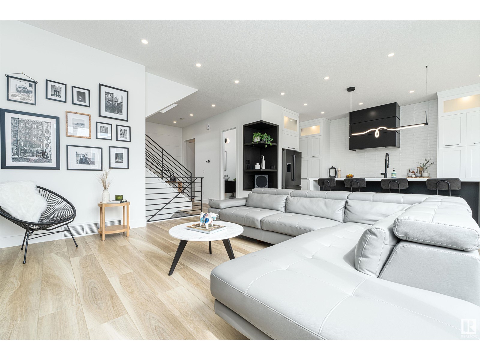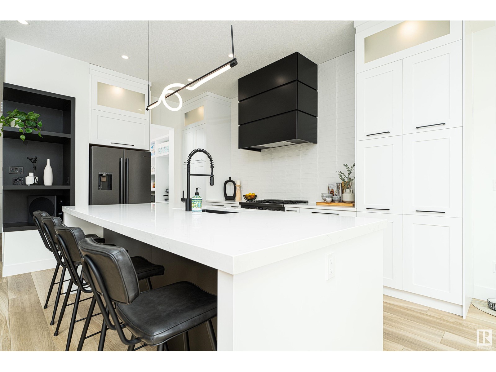 Step inside your new dream home. This 2503 SF custom-built home sits in a private quiet crescent located in the heart of Riverside St. Albert. Boasting an oversized heated triple car garage with upgraded finished concrete floor, a large backyard with complete landscaping and a maintenance free deck. Featuring: 10-foot main floor ceilings and 9-foot-vaulted second floor, wide vinyl plank flooring, pet friendly carpet underlay, feature walls with LED accent lighting, oversized linear fireplace, walk through pantry, quartz countertops, luxury Bosch appliances with a 36-inch gas range. As well as, custom cabinetry, shelving and closets, his and hers walk-in closets, modern iron railings, smart control home and A/C. This home has it all. The modern finishes and design are truly timeless. Immerse yourself in acres of lush forest, numerous walking trails, nearby amenities, and the beauty of Big Lake and Lois Hole Provincial Park, all within steps of this stunning home. (id:22211)