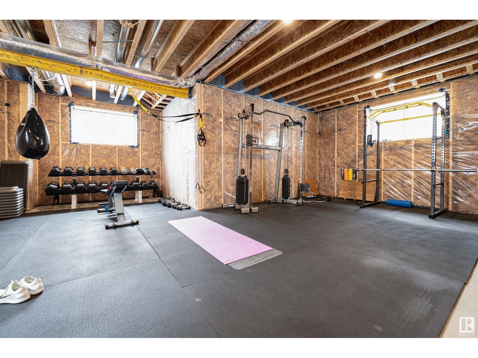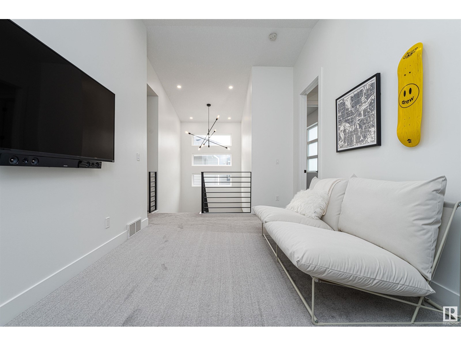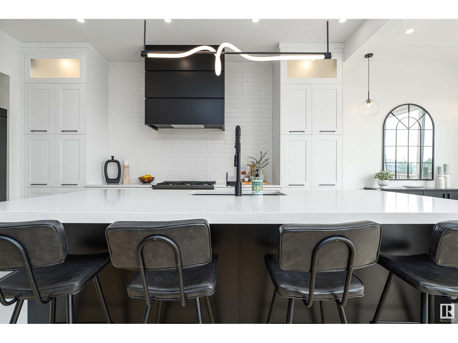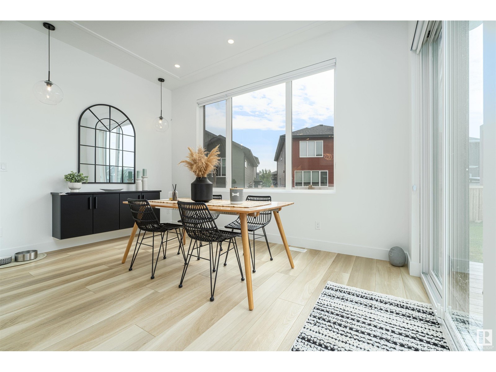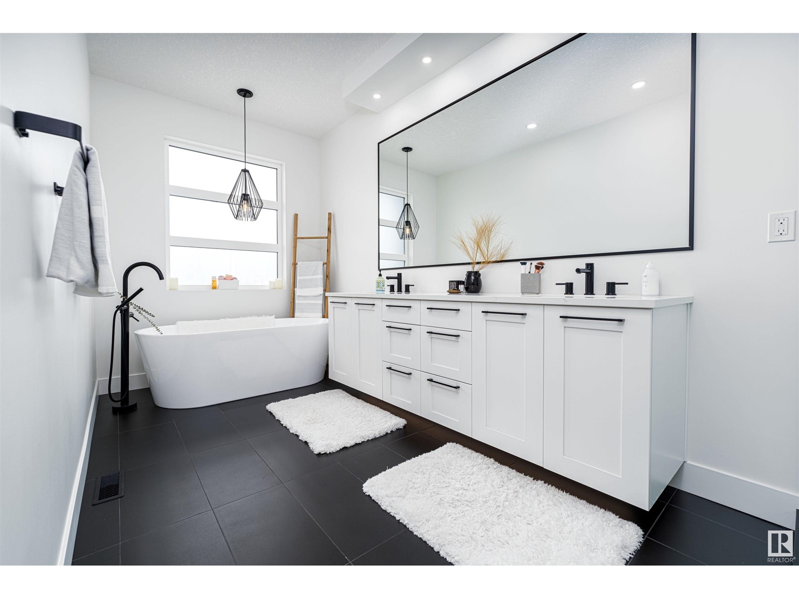 Step inside your new dream home. This 2503 SF custom-built home sits in a private quiet crescent located in the heart of Riverside St. Albert. Boasting an oversized heated triple car garage with upgraded finished concrete floor, a large backyard with complete landscaping and a maintenance free deck. Featuring: 10-foot main floor ceilings and 9-foot-vaulted second floor, wide vinyl plank flooring, pet friendly carpet underlay, feature walls with LED accent lighting, oversized linear fireplace, walk through pantry, quartz countertops, luxury Bosch appliances with a 36-inch gas range. As well as, custom cabinetry, shelving and closets, his and hers walk-in closets, modern iron railings, smart control home and A/C. This home has it all. The modern finishes and design are truly timeless. Immerse yourself in acres of lush forest, numerous walking trails, nearby amenities, and the beauty of Big Lake and Lois Hole Provincial Park, all within steps of this stunning home. (id:22211)