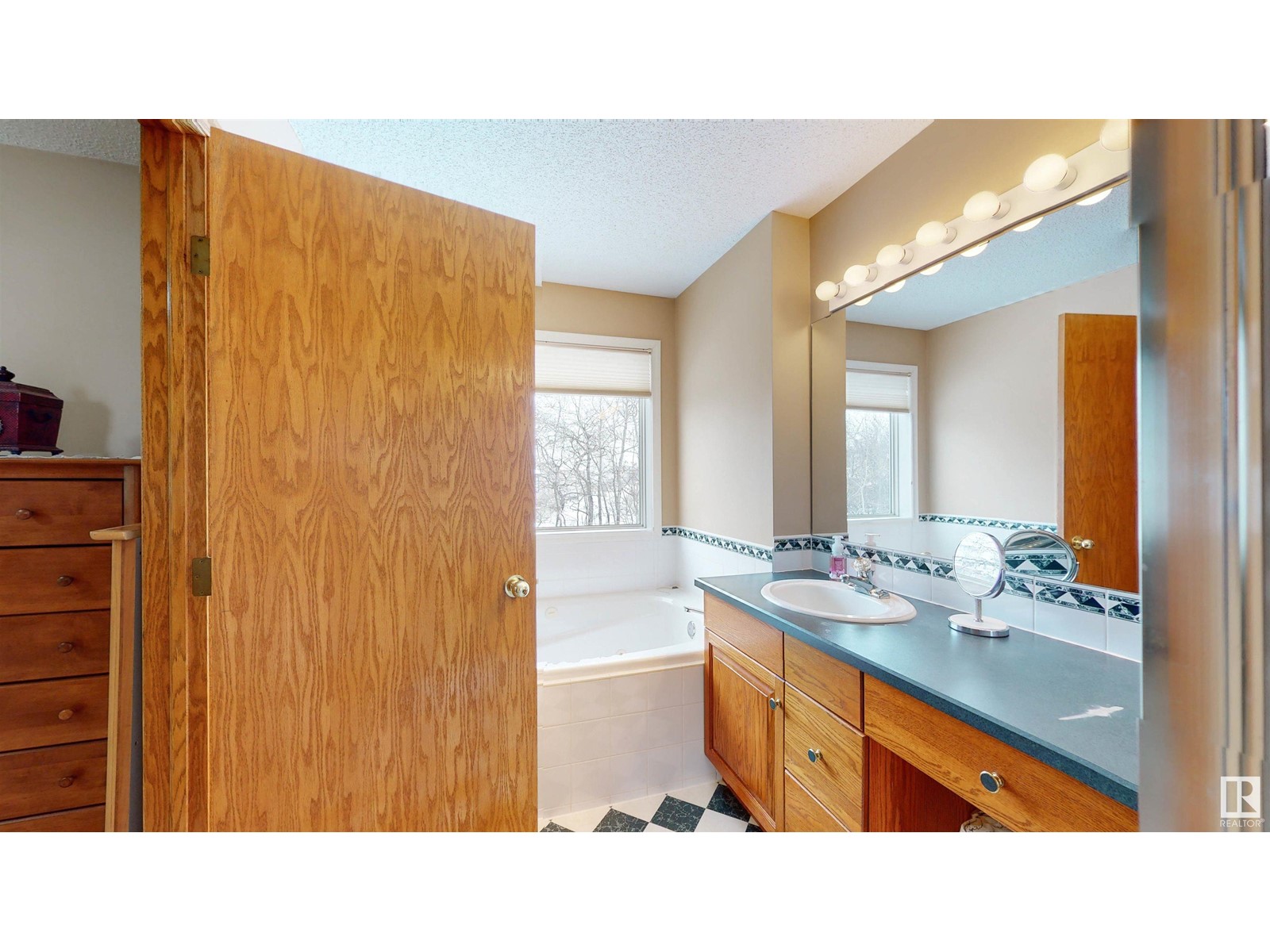 This Location is Hard to Beat! Backing Greenspace & Walking Trail on a Quiet Cul De Sac in Desirable Erin Ridge! This Home offers over 3500sf. of Developed Space, 5 Bedrooms including 4 Upstairs, Fully Finished Basement & Triple Garage! The Traditional Layout starts w/a Welcoming Foyer Open to Above and Flows Beautifully Through the Front Facing Living Room & Formal Dining Space Perfect for Entertaining. The Sunny East Facing Kitchen has Ample Cupboard Space, Corner Pantry, Central Island & Family Sized Eating Nook open to the Family Room complete w/ Cozy Gas Fireplace & Plenty of Windows Overlooking the Deck, Mature Trees & Green Belt. Completing the Main Level are Den/Flex Rm, 1/2 bath & Laundry. Heading Up You Will Find 4 Large Bedrooms incl. the Primary Suite w/ Walk-In Closet & 4pc Ensuite w/ Jetted Tub & Corner Shower. The Basement is Finished w/ Large Rec Room w/ 2nd Fireplace, 5th Bedroom & Partially Finished Bath. Surrounded by Schools, Parks, Trails & Minutes from All Amenities! 10/10 ! (id:22211)