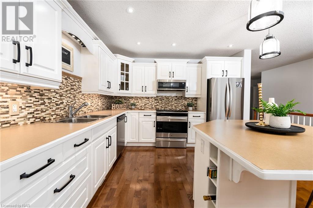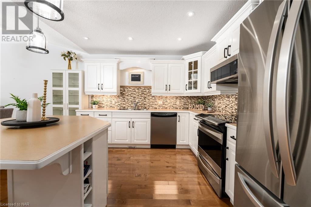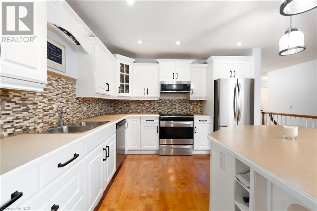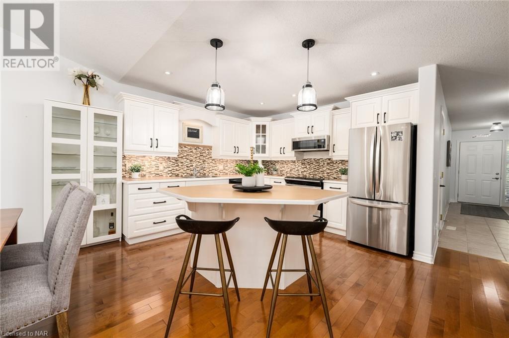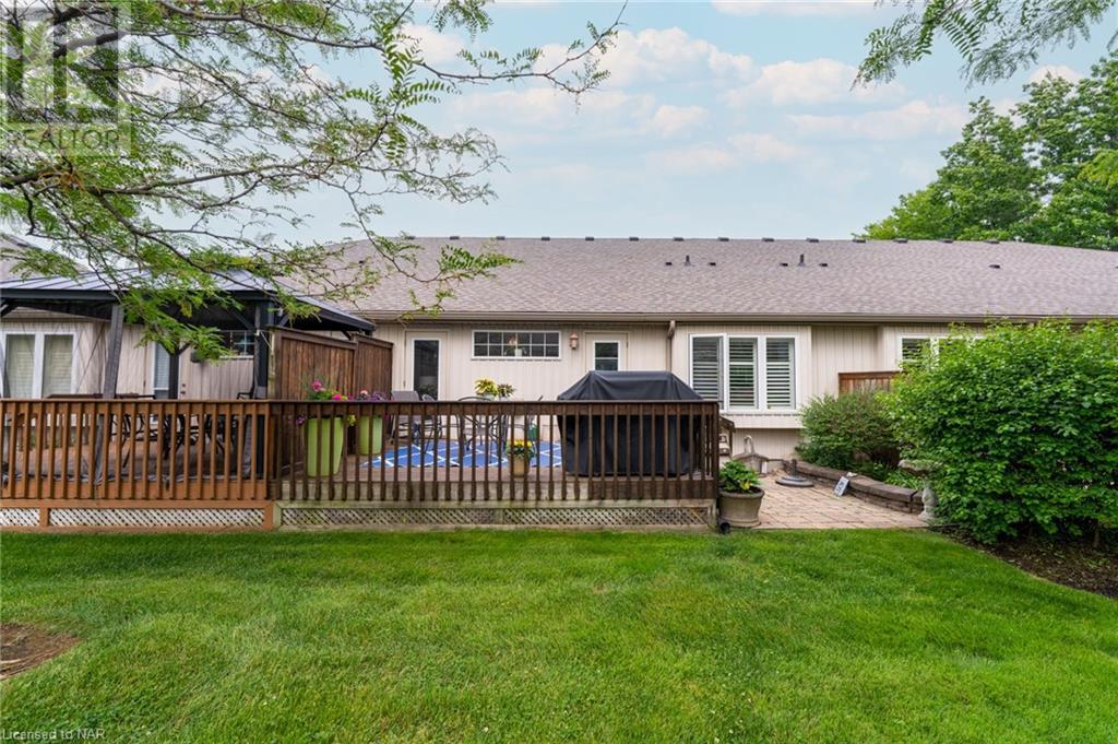 Nestled in the highly sought-after Forest Grove community, this exquisite luxury townhome exudes opulence and has been meticulously maintained to perfection over the years, evident from the moment you step inside. The spacious and luminous layout emanates an aura of warmth and hospitality, boasting an expansive chef's kitchen with a magnificent island, overlooking the elegant dining area and living room. Featuring a soaring cathedral ceiling, a cozy gas fireplace, and gleaming hardwood floors, this residence is an epitome of refined living.Indulge in the lavishness of the generously proportioned primary bedroom, complete with a walk-in closet, an additional second closet, and a lavish 4-piece ensuite bathroom. The front of the home presents a versatile second bedroom or study, a convenient laundry room, and a luxurious 4-piece bathroom. Step outside onto your sprawling private deck, where you can luxuriate in the tranquility of the idyllic neighborhood and admire the meticulously manicured gardens.Ideally situated within walking distance of the picturesque Welland Canal and in close proximity to upscale shopping destinations, the QEW highway, and an array of amenities, this extraordinary home offers the epitome of refined living. Experience the epitome of luxury living; this home has been thoughtfully designed to cater to your every desire.Vacant land condo. Townhouse is freehold, land is condo. (id:22211)