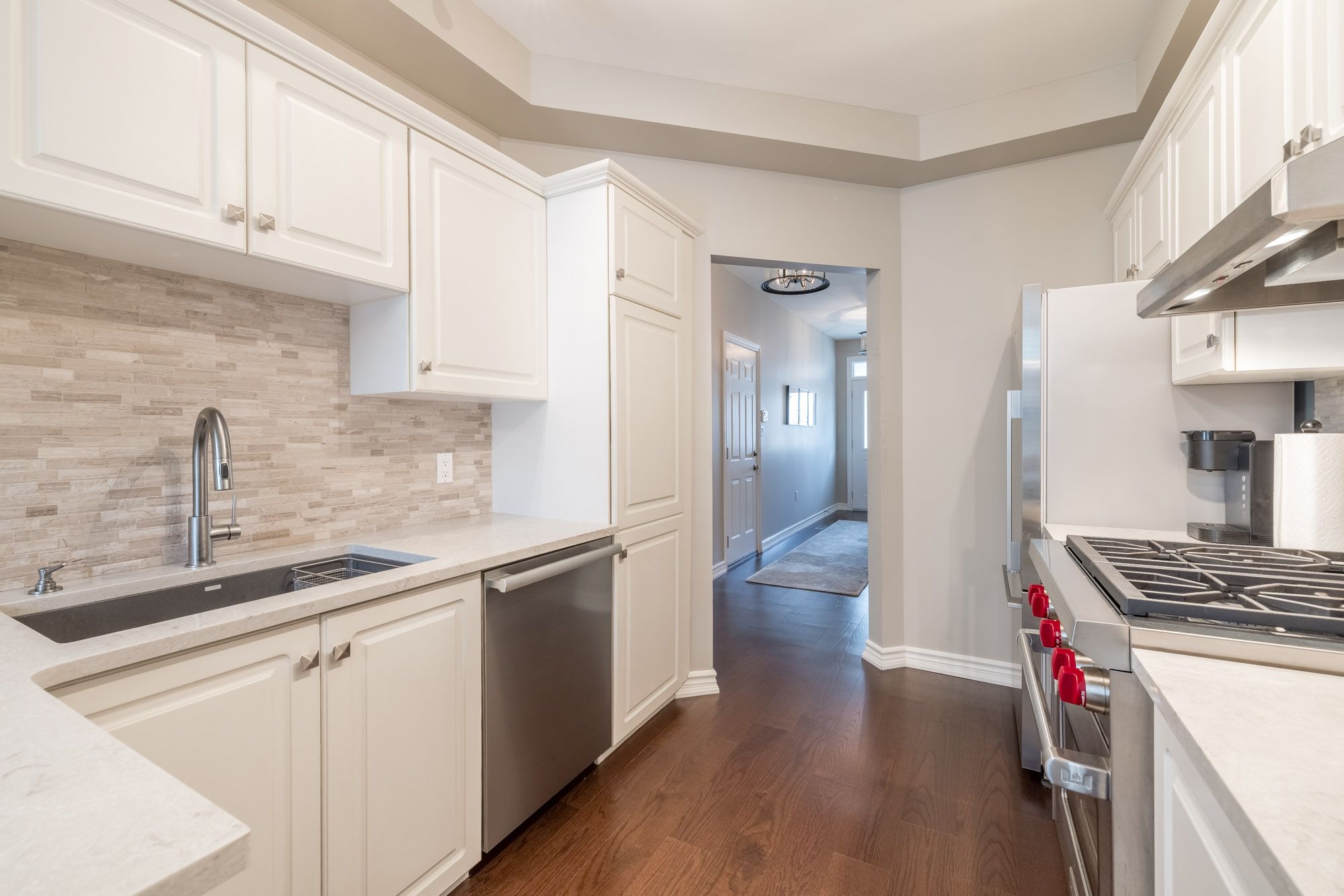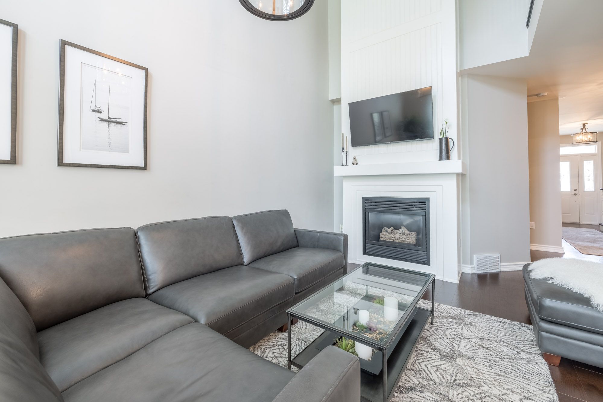 Spectacular renovated “On The Henley” townhome just steps from the beaches, parks, and restaurants of Port Dalhousie! Views of Martindale Pond from the guest bedroom and private back deck! Massive 18’ high ceiling in the family room and two-storey high windows! Chef’s kitchen with top-of-the-line appliances including a Wolf gas oven. Huge master retreat with double closets including a walk-through to the updated bathroom with large glass shower, heated tile floors, and private balcony. Wide plank flooring, and California shutters throughout. Finished basement with rough-in for bathroom.Interior Features: