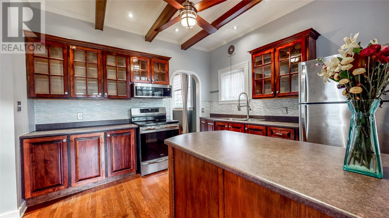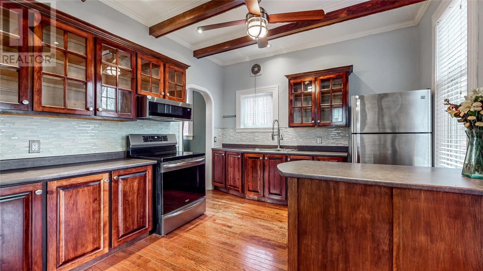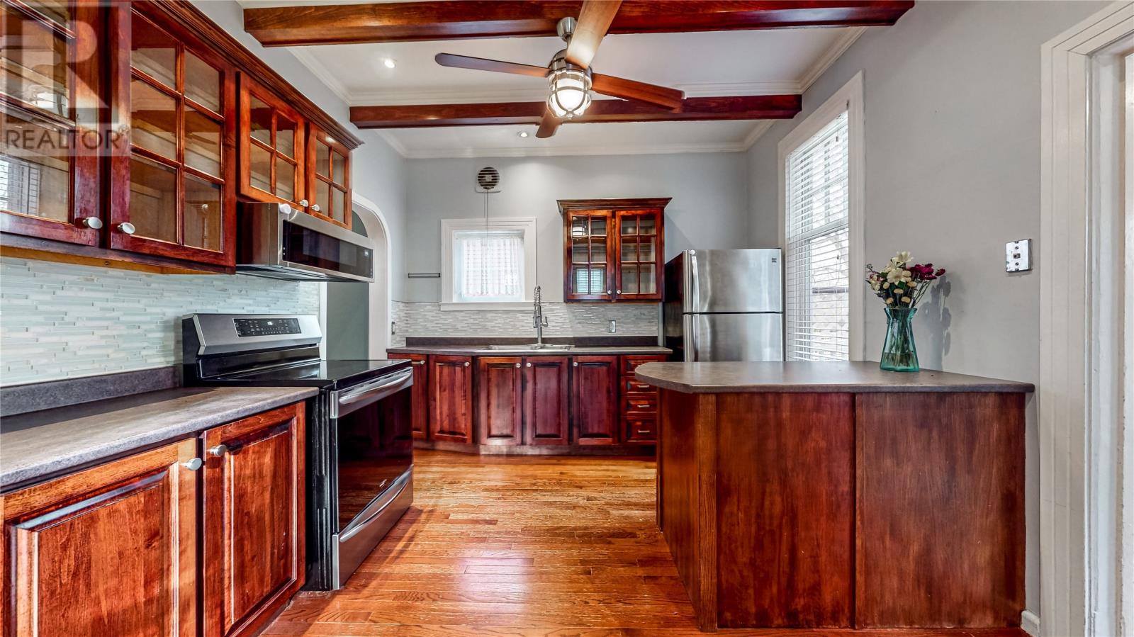This stunning 4 bedroom, 2 storey home located in the west end of St. John’s is a must see! Situated on an oversized lot with mature trees and a huge fenced yard, with plenty of space for a detached garage with drive-in access. This home has plenty of character and heritage features, including hardwood floors, ornate staircase, original mouldings, beautiful fireplaces, and 10 ft ceilings. There are also several modern upgrades: a mini split heat pump with 3 heads, Google Nest smoke alarms, Mysa smart thermostats, 1 year old high efficiency oil furnace, custom IKEA storage, and new hot water and propane tanks. The main floor has a spacious living room, formal dining room, kitchen with new induction stove and Bosch dishwasher, and cozy family room with a propane fireplace. There is also a 3-piece bathroom with standup shower. Upstairs, you will find 4 large bedrooms, 2 of which have walk-in closets, as well as the main bathroom with a clawfoot soaker tub. Major upgrades in recent years include new shingles, electrical, and plumbing converted to PEX. This beautiful home is centrally located near all major amenities and just minutes from downtown! (id:22211)