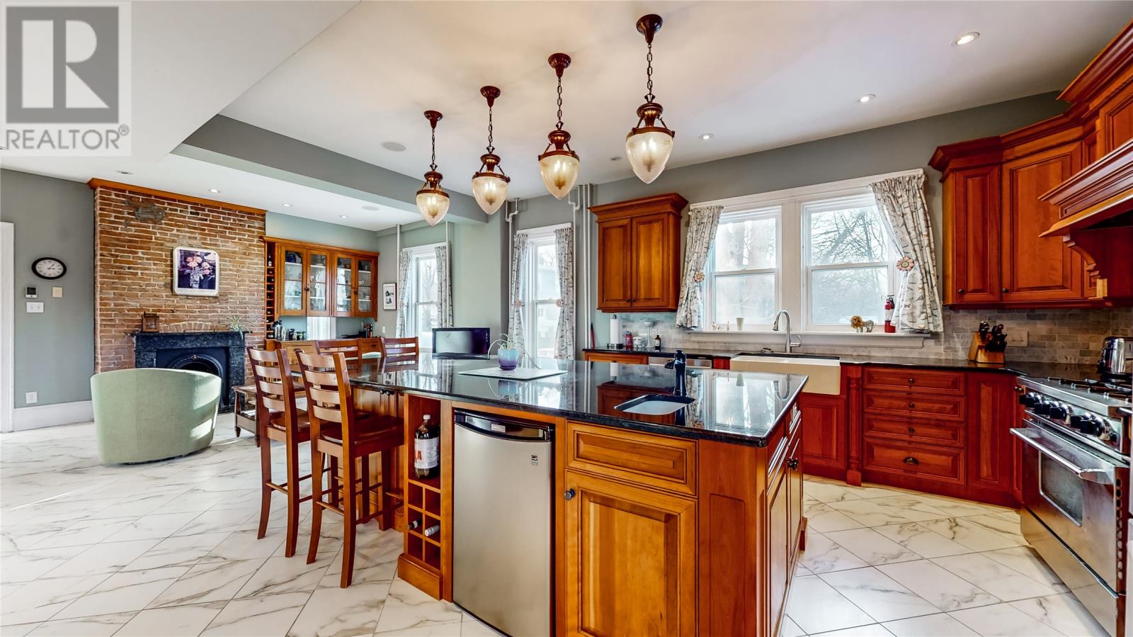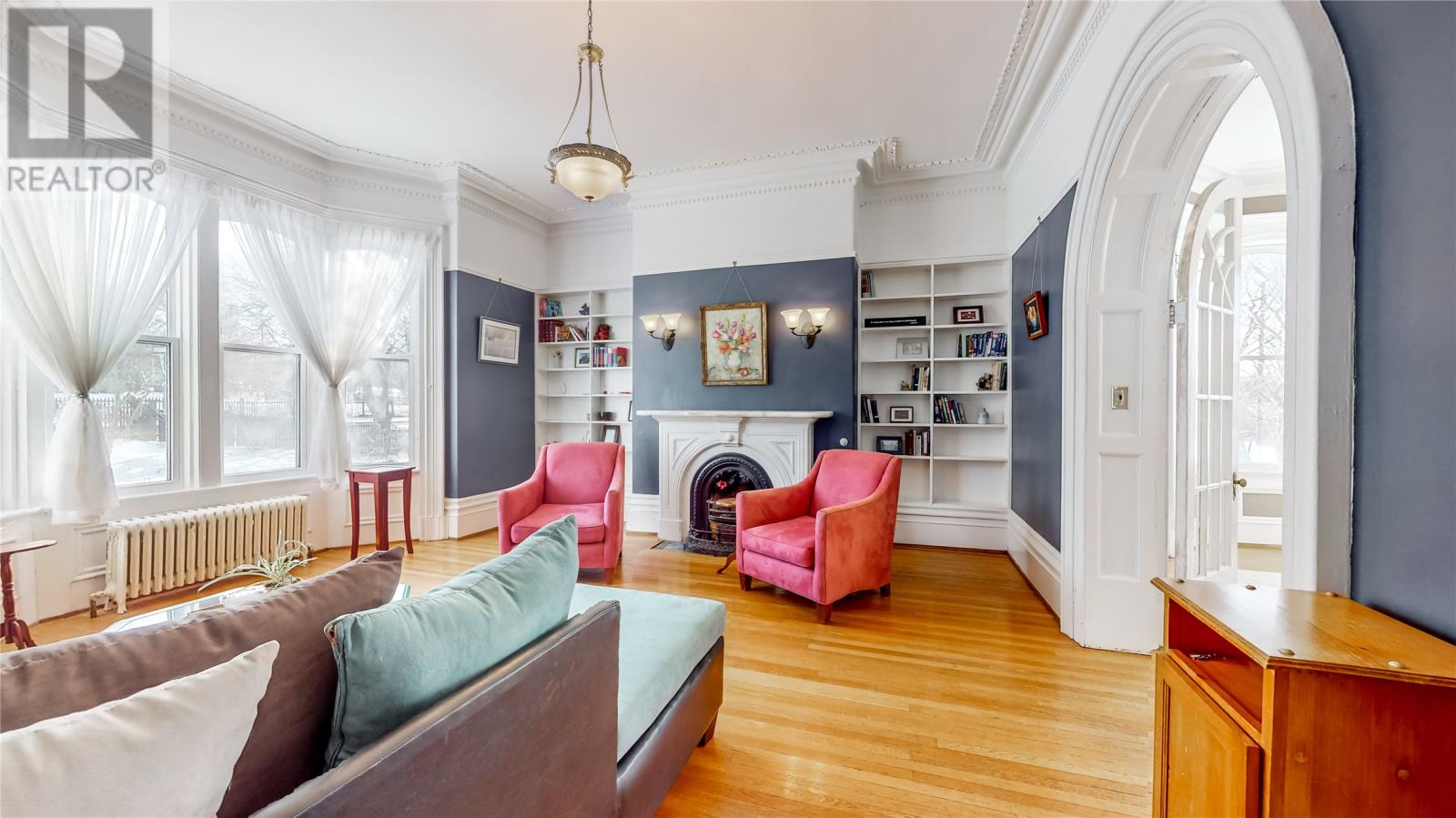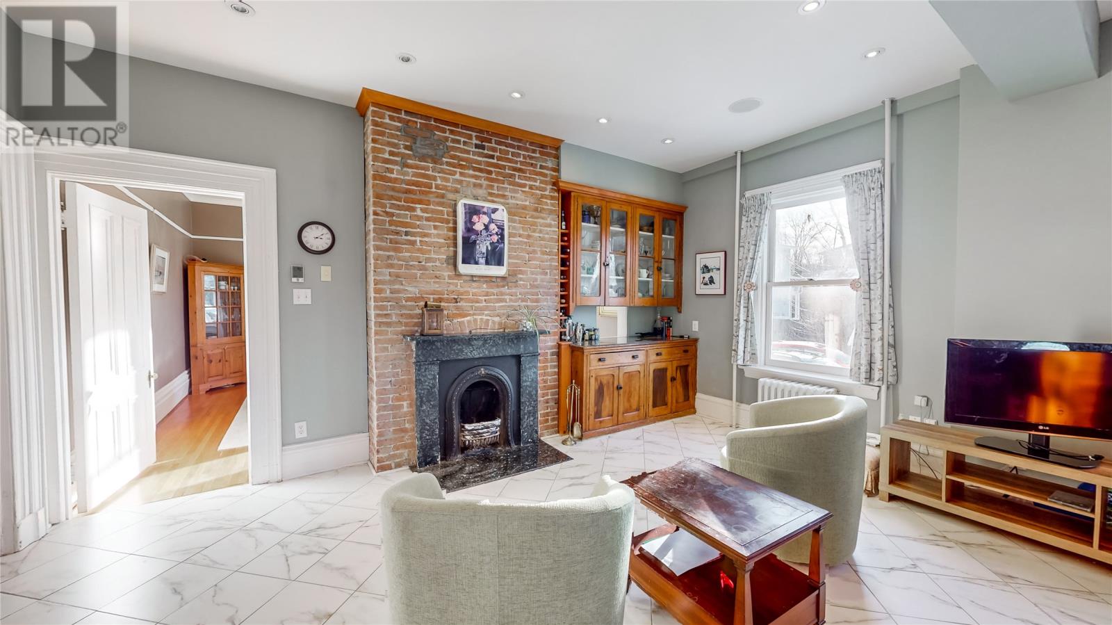 Step back in time with this stunning Southcott home, built in 1880, where classic charm meets modern comforts. Boasting original architectural details, including ornate plaster ceilings and cornice moldings, hardwood floors, intricate woodwork, soaring 9-foot ceilings, and period fixtures. This home has been thoughtfully updated to preserve its historic character while offering the convenience of contemporary living. The main floor features a huge modern eat-in kitchen with a massive island, plenty of cupboards, a den, a formal living room, a separate formal dining room, and a two-piece bathroom. It is in a sought-after neighbourhood with spacious rooms and elegant living areas. There are seven bedrooms, three full bathrooms, two 1/2 baths, and a dumb waiter. The charming second floor features four bedrooms and two full baths, including a four-piece ensuite and walk-in closet for the primary bedroom. The third floor would make a great studio, office, in-law, or nanny suite and features three bedrooms, a full bathroom, and a kitchenette. Plus, it has a separate back entrance. A rare opportunity to own a piece of history, this home is perfect for those who appreciate craftsmanship, character, and timeless beauty. Additional features include heated kitchen floors; all three full baths have heated floors, as does the main floor half bath, four working coal fireplaces, and the roof was re-shingled in 2024. A modern sound system is wired throughout the house, with individual volume controls in each room. There are two driveways off Fraser’s Lane, which can accommodate up to six vehicles. The basement has a two-piece bath with plenty of storage and potential for future development. This home shows well, with over 6000 square feet of living space and plenty of parking. You can walk to downtown stores, restaurants, and parks within minutes of your front door. (id:22211)