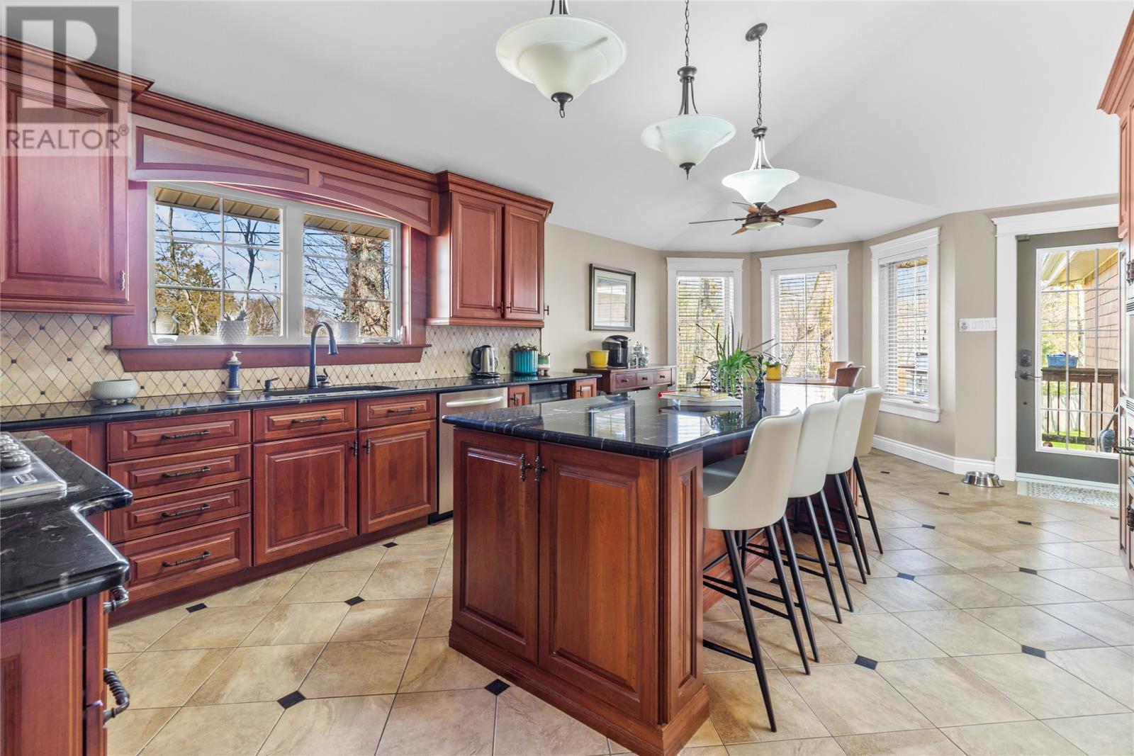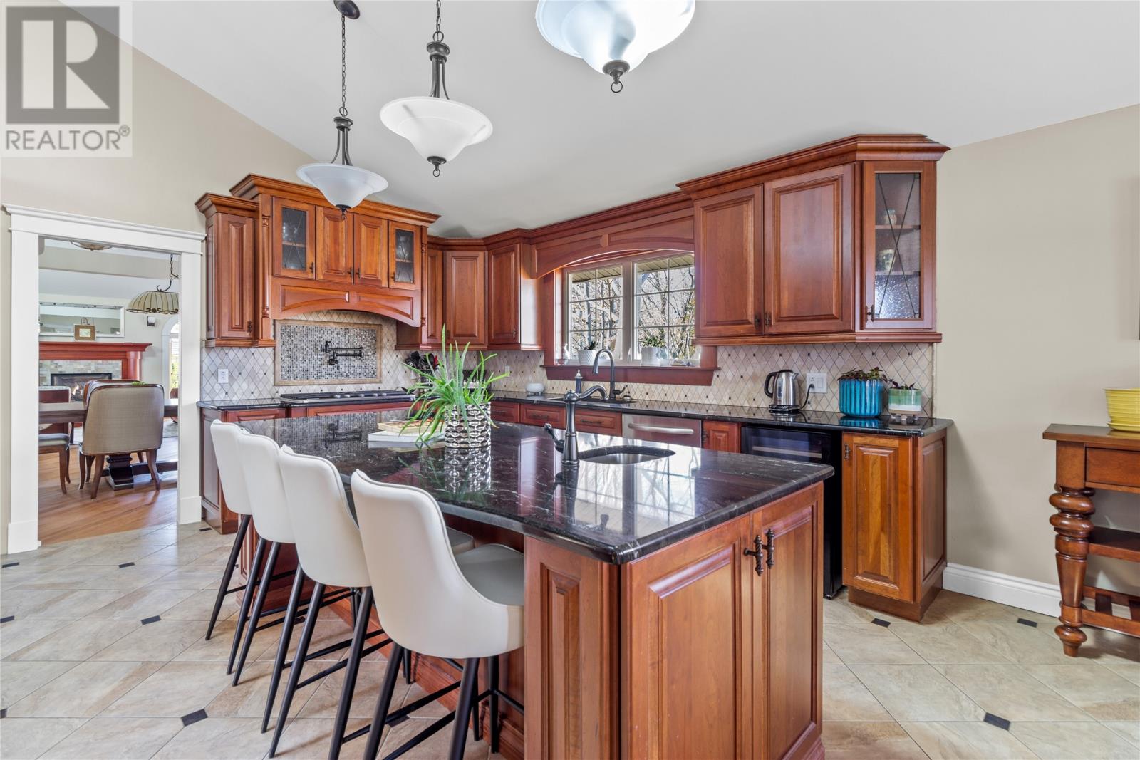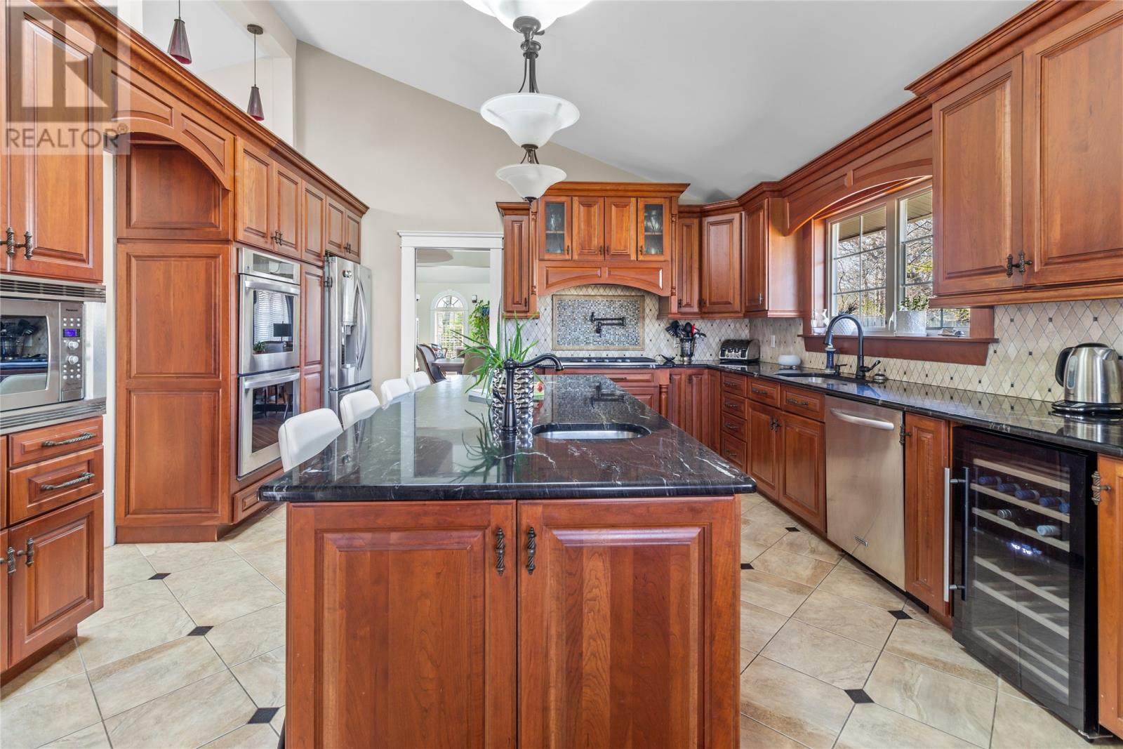 Executive living right in the heart of the city situated on a private cul de sac on an oversized lot with just a few minutes walking distance from Bowering park and major shopping centers. This ranch style bungalow with in-law apartment has all the bells and whistles with no expense spared. This 4 bedroom 7 bathroom home is nothing but luxury through and through. As you walk through the luxurious entry way you will walk into the bright and spacious front living room which is prefect for that after dinner beverage of choice sitting around the cozy propane fireplace. Also as you walk into this room from the entrance way you will find a winding staircase that leads to a perch overlooking the living room that is currently being utilized as an office space. From this room you walk into the large kitchen which boasts granite counter tops, built in appliances including a double oven, wine cooler, prep sink, a pot filler and propane cook top only to name a few. The large master bedroom has 2 walk in closets and a newly renovated ensuite bathroom with a jacuzzi tub, overhead shower and ceramic throughout. Also on this floor you will find 2 more large bedrooms both with ensuites, a large rec room that is perfect for watching the big game with your friends, and once the game is over you can move into the bar room for a drink, sit and chat or open the patio doors and step out onto the deck and into the 12 person hot tub. Downstairs there is a fully self sufficient 1 bedroom in-law suite with a separate meter for your aging family members, children or for extra income. In the past 10 years there have been many upgrades including but not limited to a brand new garage built on at 916 sq/ft. New roof, new windows, 2 mini split units with 4 separate heads, all ceramic floors with in-floor heat only to name a few. Also you will also see as you enter the property how well cared for the outside is with mature trees and well manicured lawns. (id:22211)